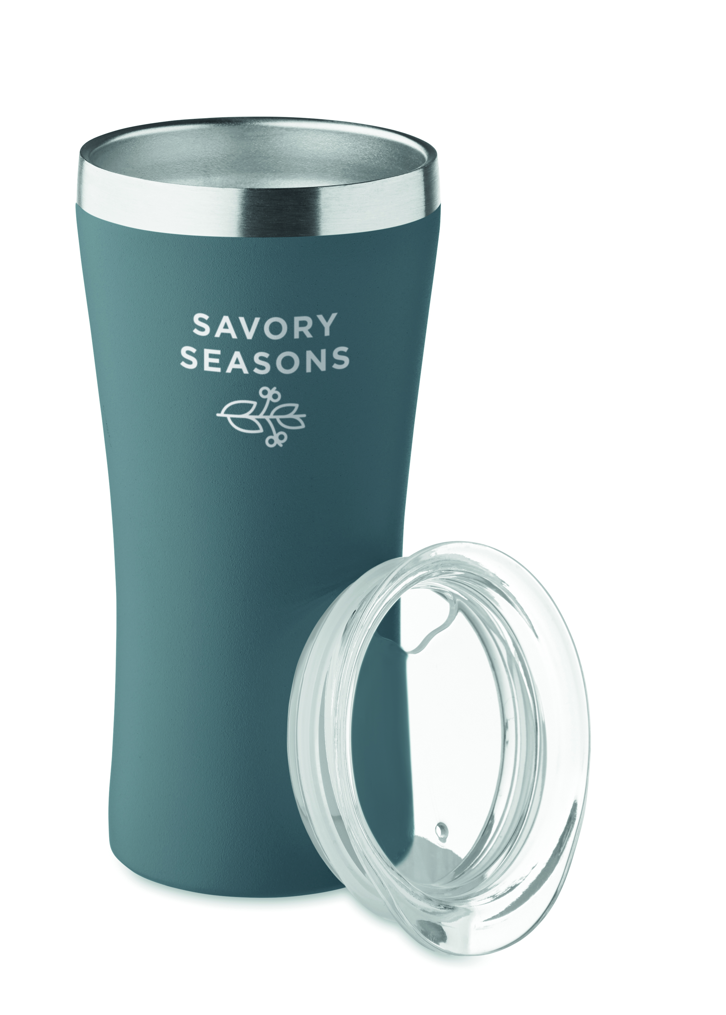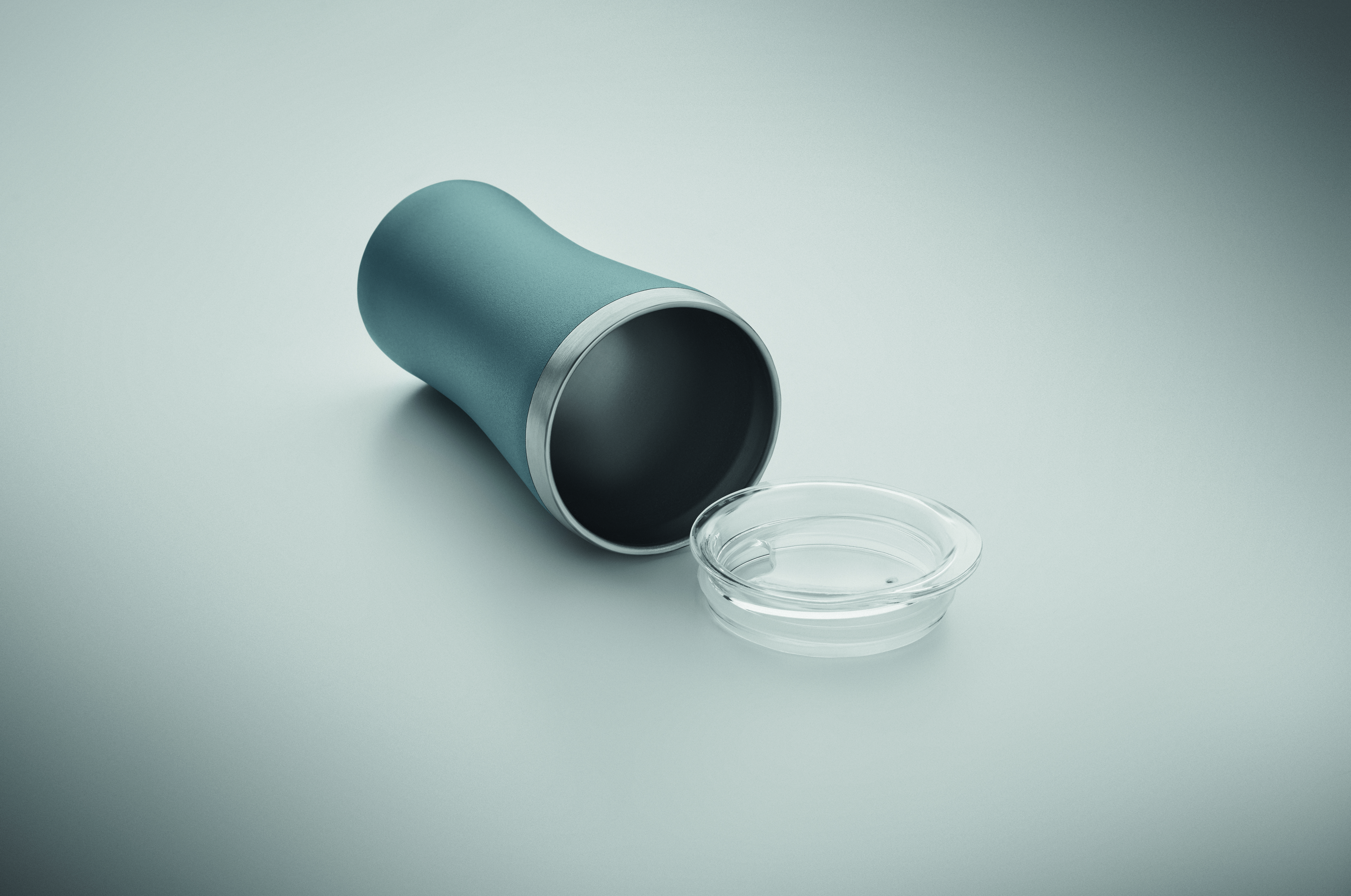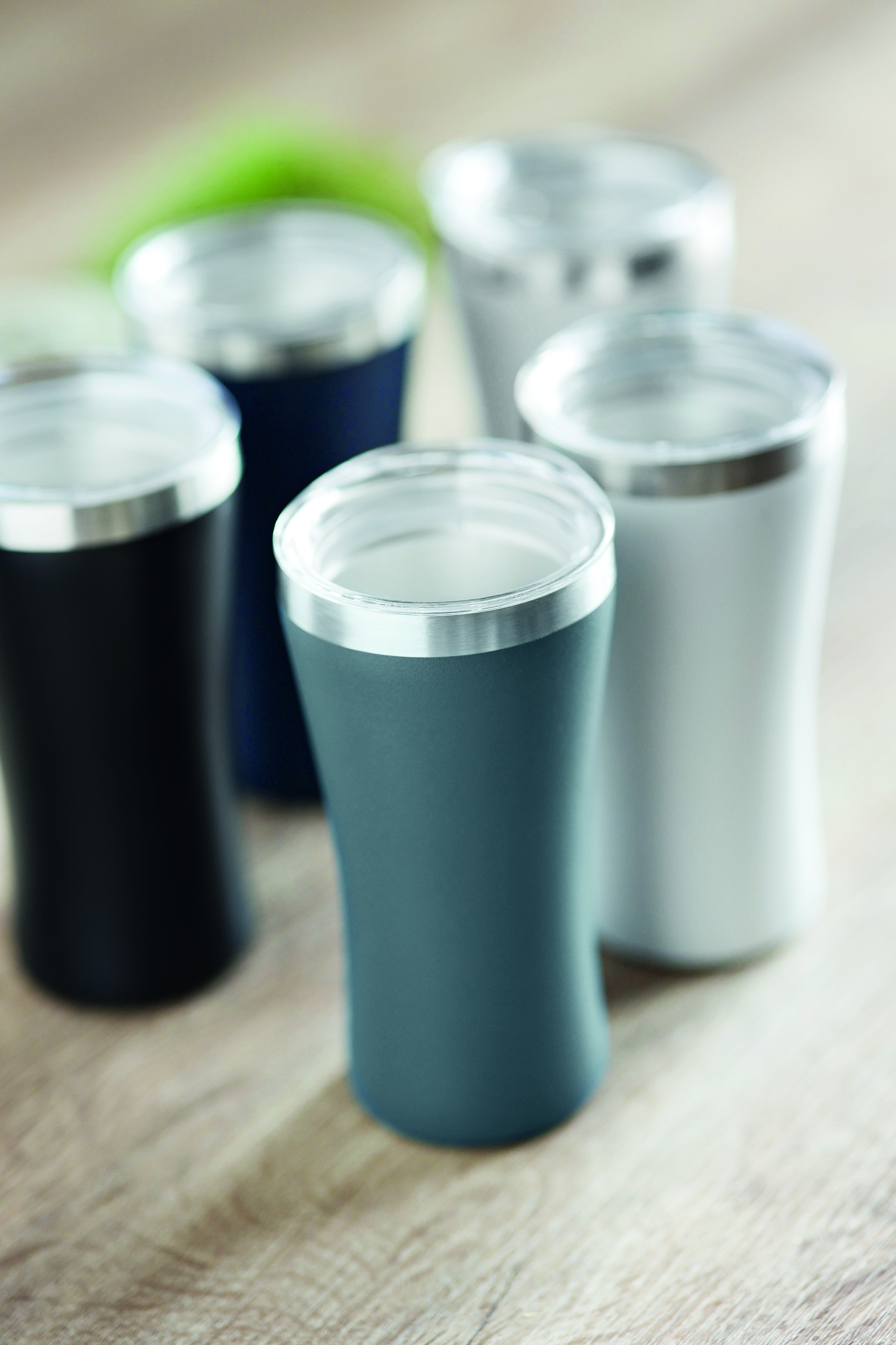 Mały kubek o podwójnych ściankach izolowanych próżniowo, wykonany ze stali nierdzewnej z recyklingu (90% stali nierdzewnej z recyklingu i 10% stali nierdzewnej), z zakrętką z otworem do picia z przezroczystego PP. Pojemność: 160 ml.