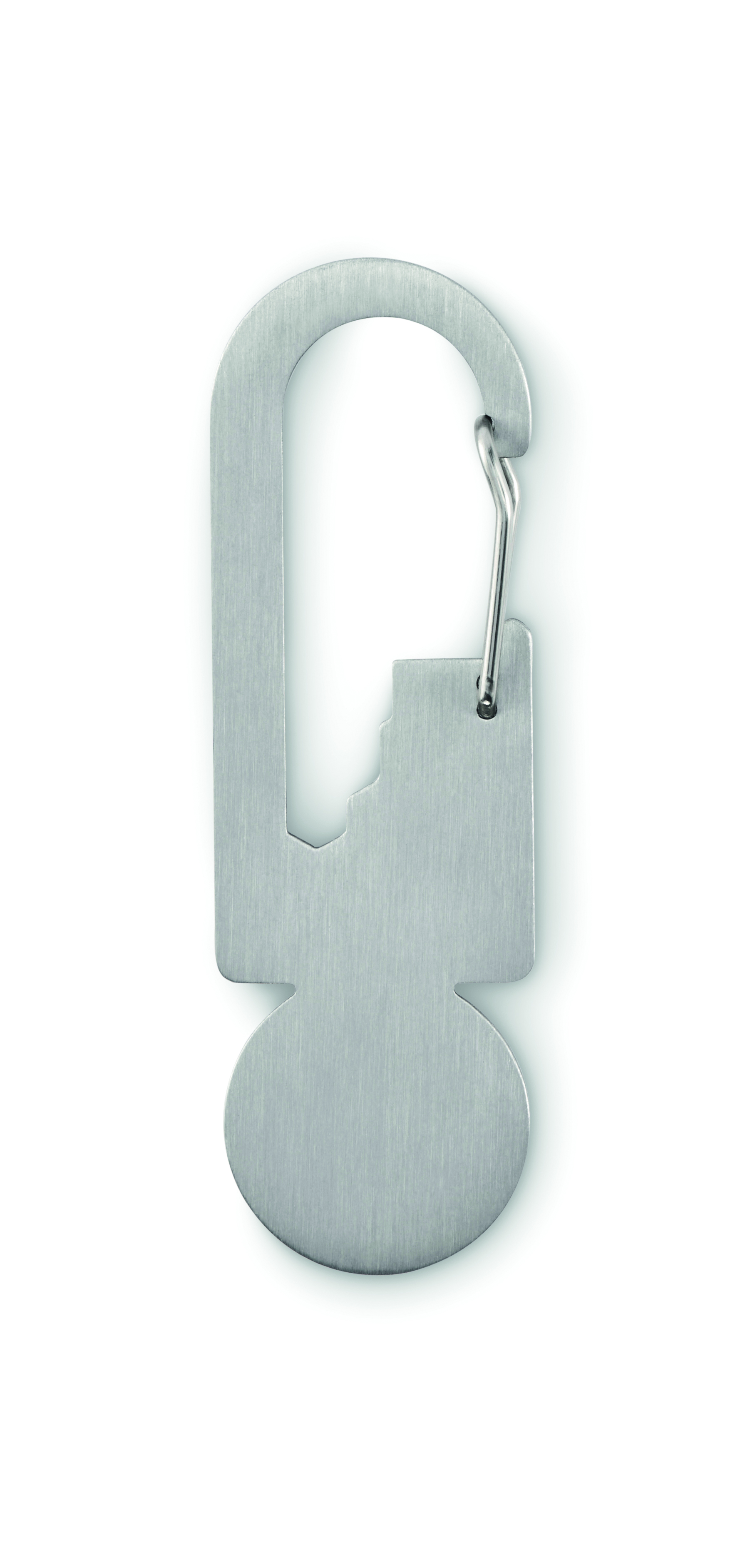 Żeton do wózka z brelokiem ze stali nierdzewnej z recyklingu (90% stali nierdzewnej z recyklingu i 10% stali nierdzewnej) z wielofunkcyjnym narzędziem zawierającym otwieracz do butelek, linijkę i klucz sześciokątny 5,5mm, 7mm, 8mm.