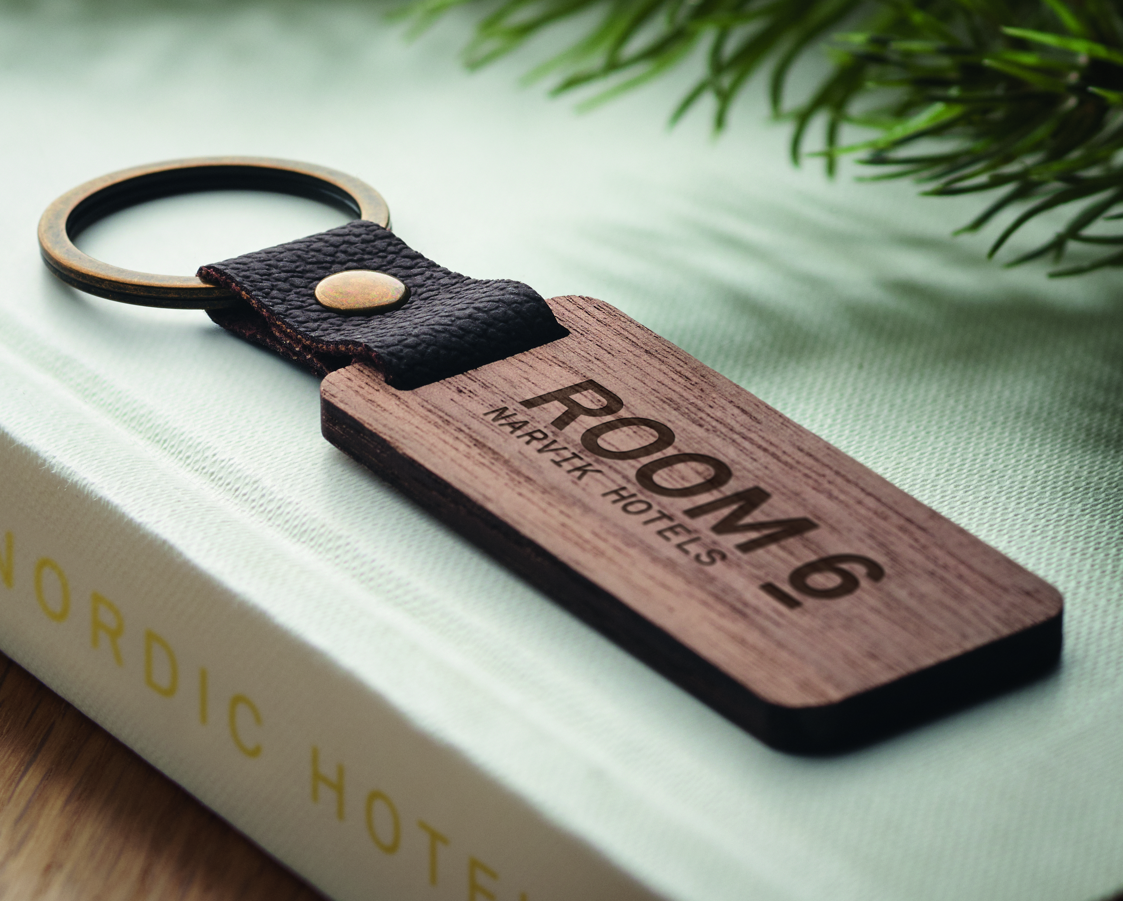 Brelok do kluczy z orzecha włoskiego i poliuretanu.