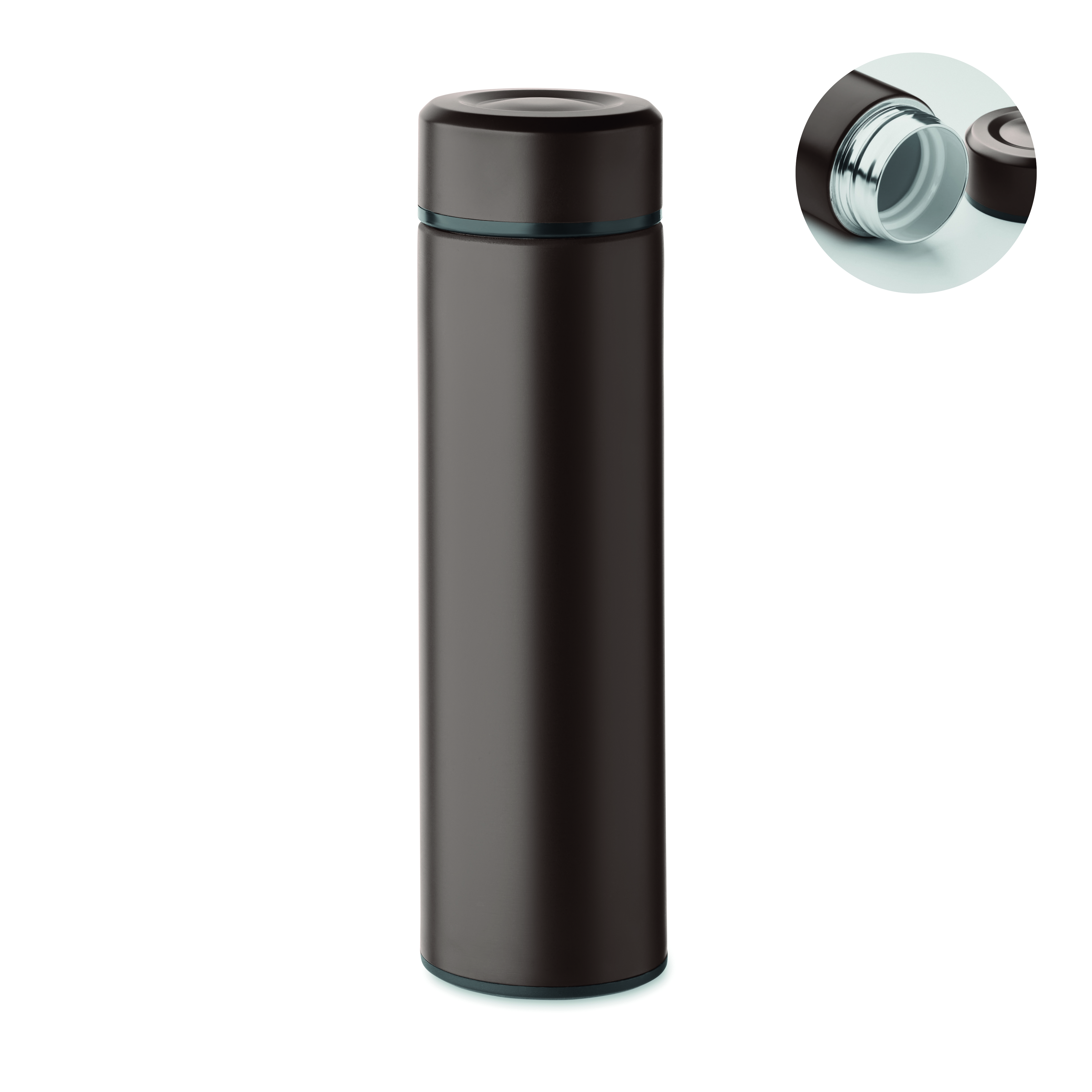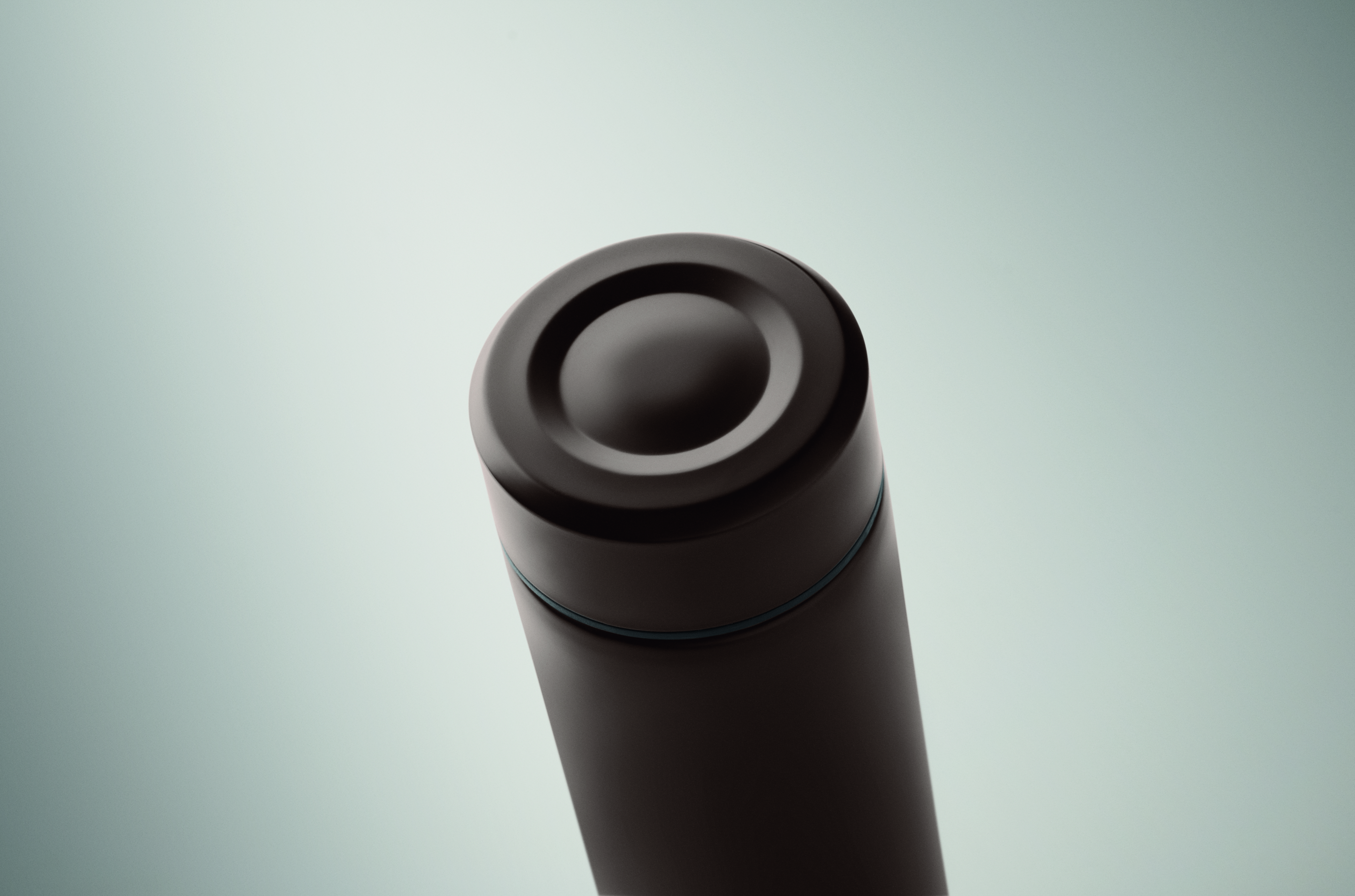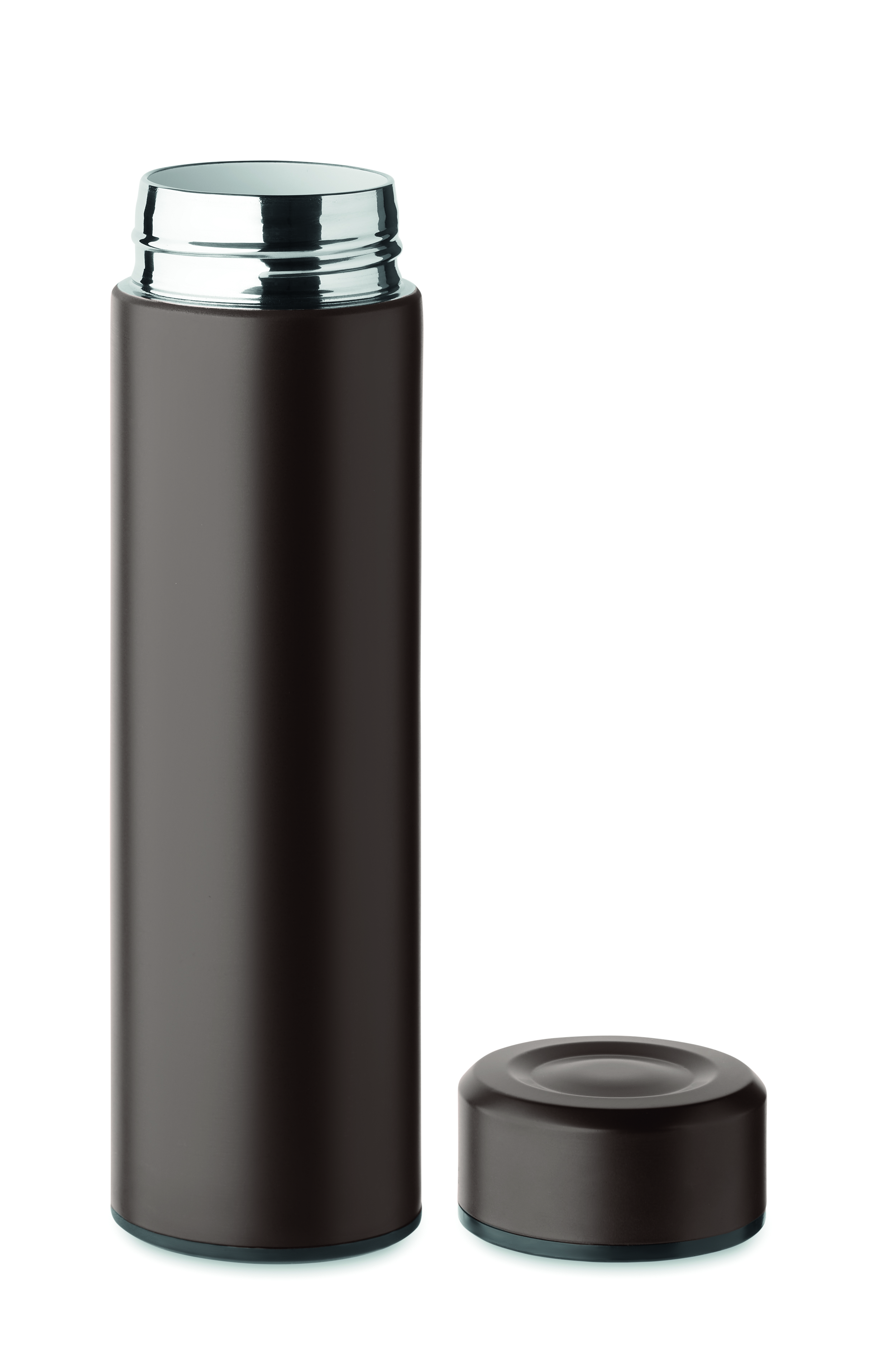 Dwuścienna butelka z izolacją próżniową z recyklingowanej stali nierdzewnej (90% z recyklingowanej stali nierdzewnej i 10% ze stali nierdzewnej) z ceramiczną warstwą wewnętrzną. Pojemność: 420 ml.