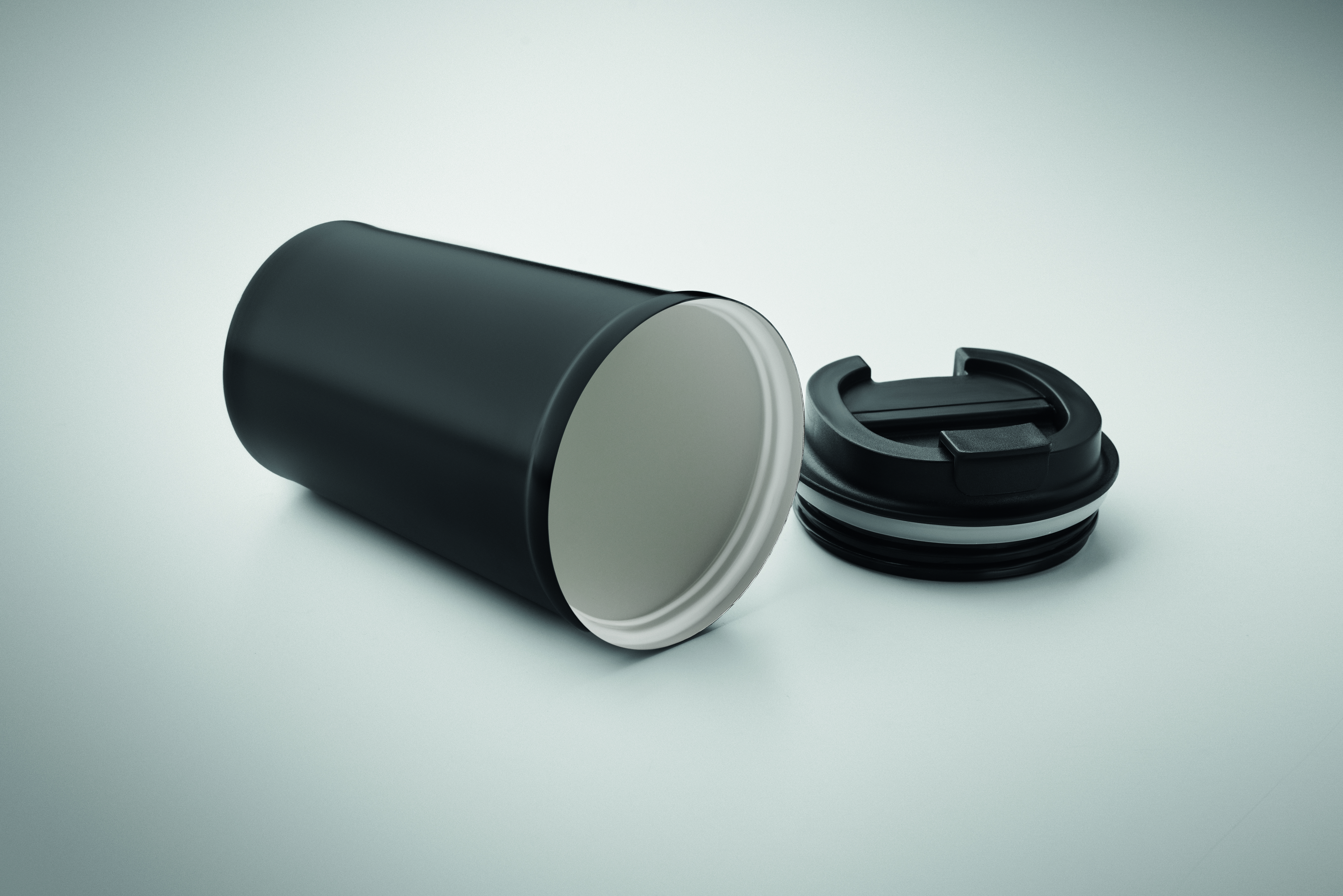 Dwuścienny kubek z izolacją próżniową wykonany ze stali nierdzewnej pochodzącej z recyklingu (90% stali nierdzewnej pochodzącej z recyklingu i 10% stali nierdzewnej) z ceramiczną warstwą wewnętrzną. Pojemność: 450 ml.