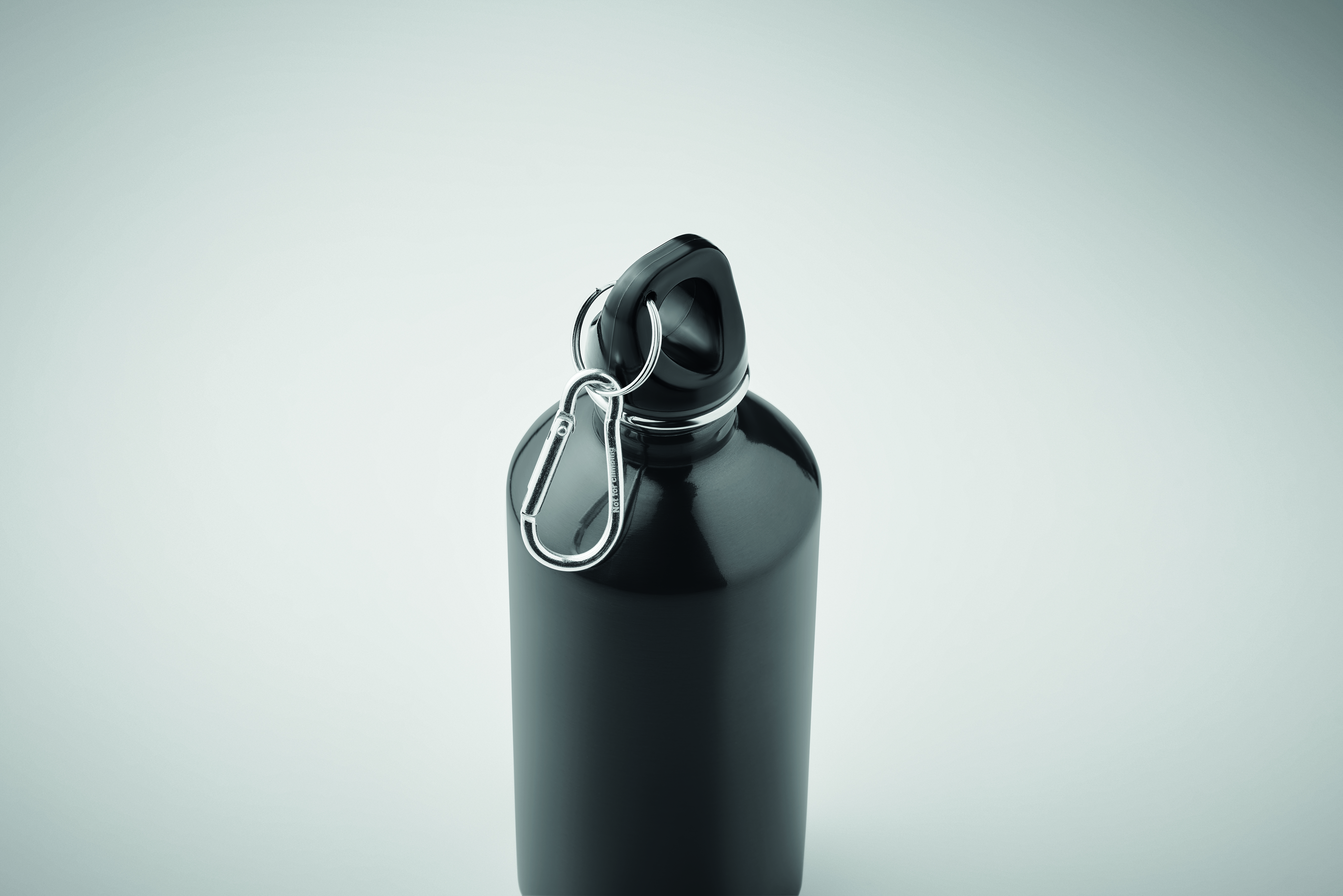 Butelka z pojedynczą ścianką z recyklingowanej stali nierdzewnej (90% stali nierdzewnej z recyklingu i 10% stali nierdzewnej) z karabińczykiem. 500 ml. Nadruk sublimacyjny dostępny tylko w kolorze białym. Szczelna. Ponieważ jest to kubek z pojedynczą ścianką, może dochodzić do wymiany ciepła.