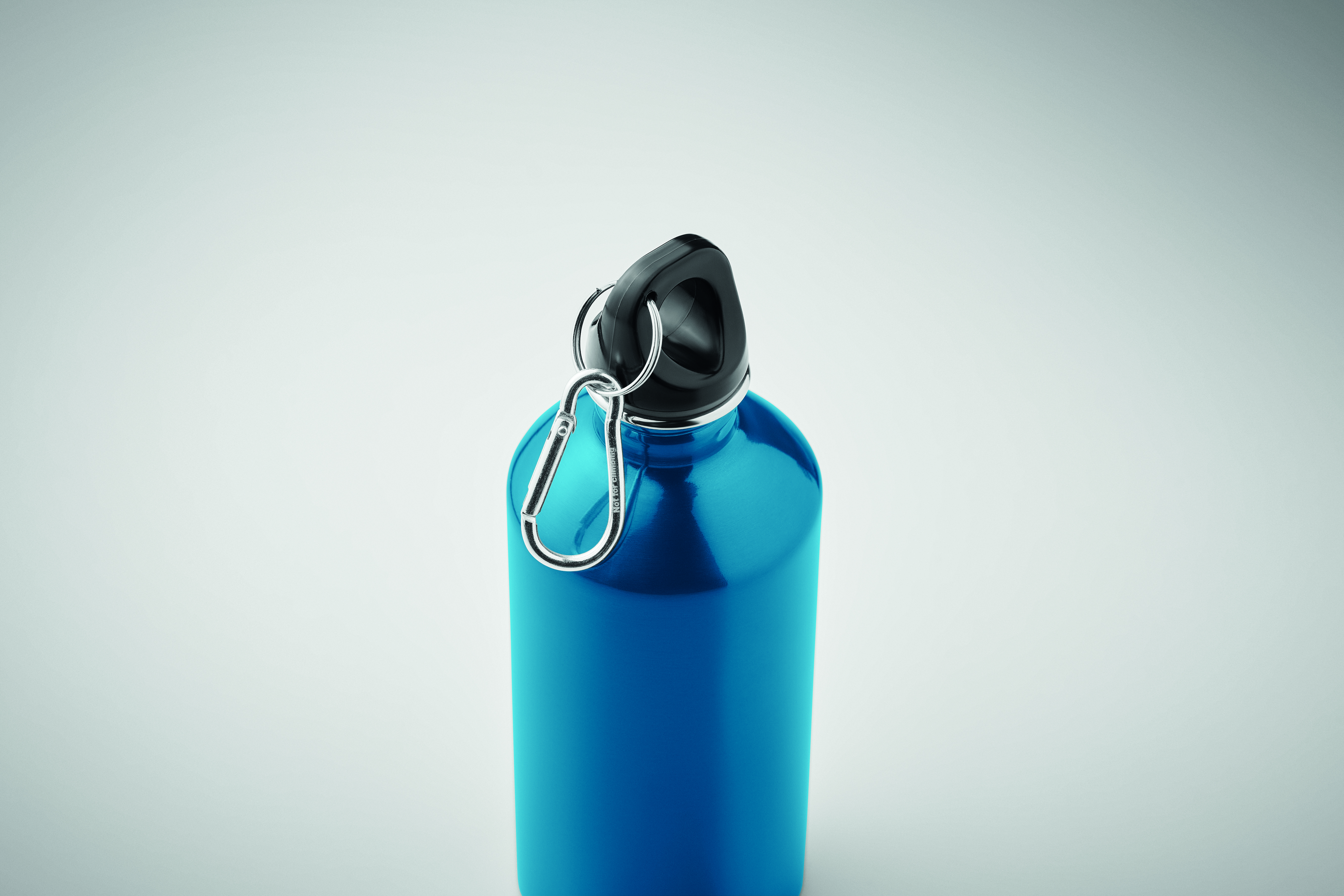 Butelka z pojedynczą ścianką z recyklingowanej stali nierdzewnej (90% stali nierdzewnej z recyklingu i 10% stali nierdzewnej) z karabińczykiem. 500 ml. Nadruk sublimacyjny dostępny tylko w kolorze białym. Szczelna. Ponieważ jest to kubek z pojedynczą ścianką, może dochodzić do wymiany ciepła.