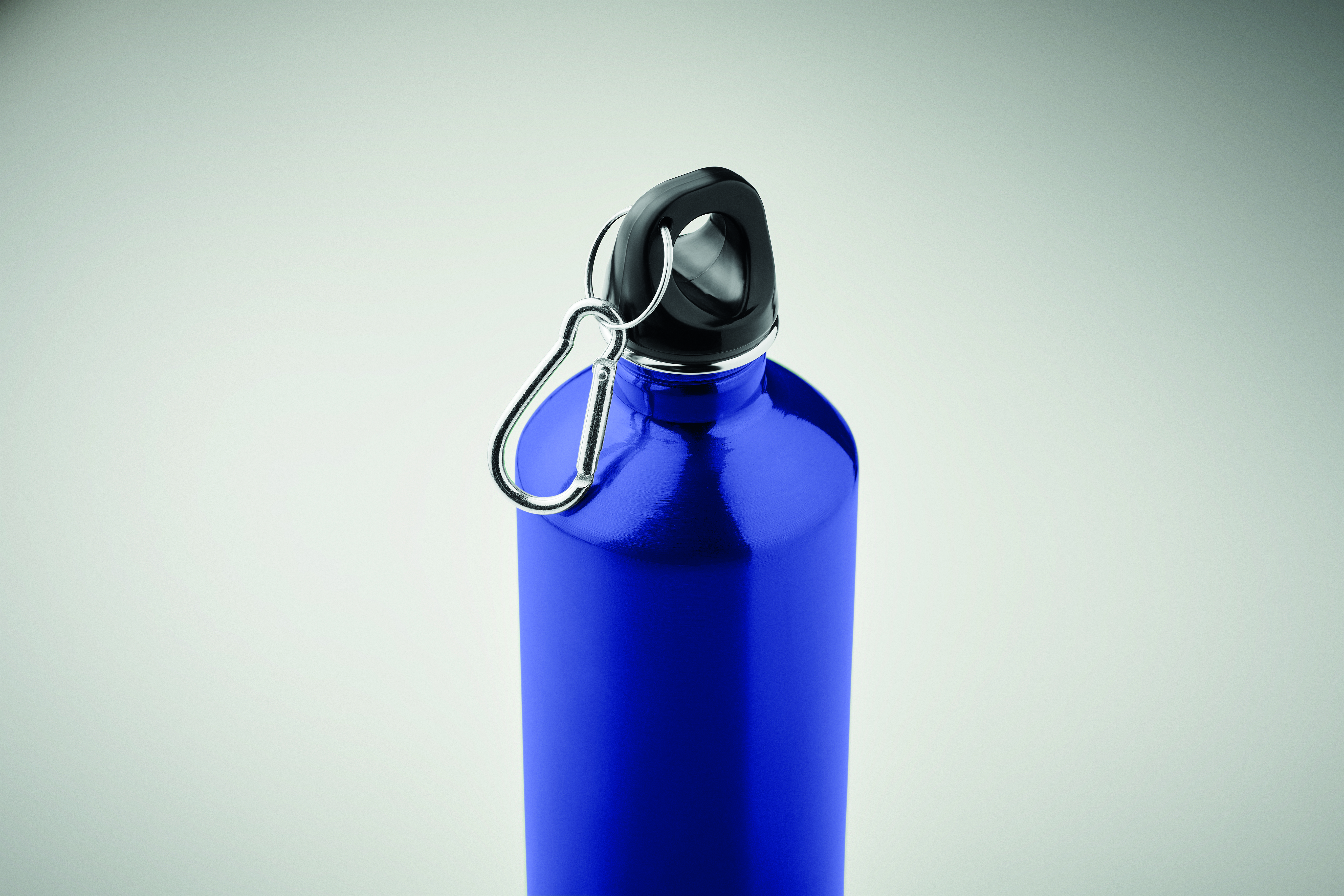 Jednościenna butelka z recyklingowanej stali nierdzewnej (90% stali nierdzewnej z recyklingu i 10% stali nierdzewnej) z karabińczykiem. Pojemność: 750 ml. Karabińczyk nie jest przeznaczony do wspinaczki (nie służy do użytku profesjonalnego). Nadruk sublimacyjny dostępny tylko w kolorze białym. Szczelna. Ponieważ jest to butelka z pojedynczą ścianką, może dochodzić do wymiany ciepła.
