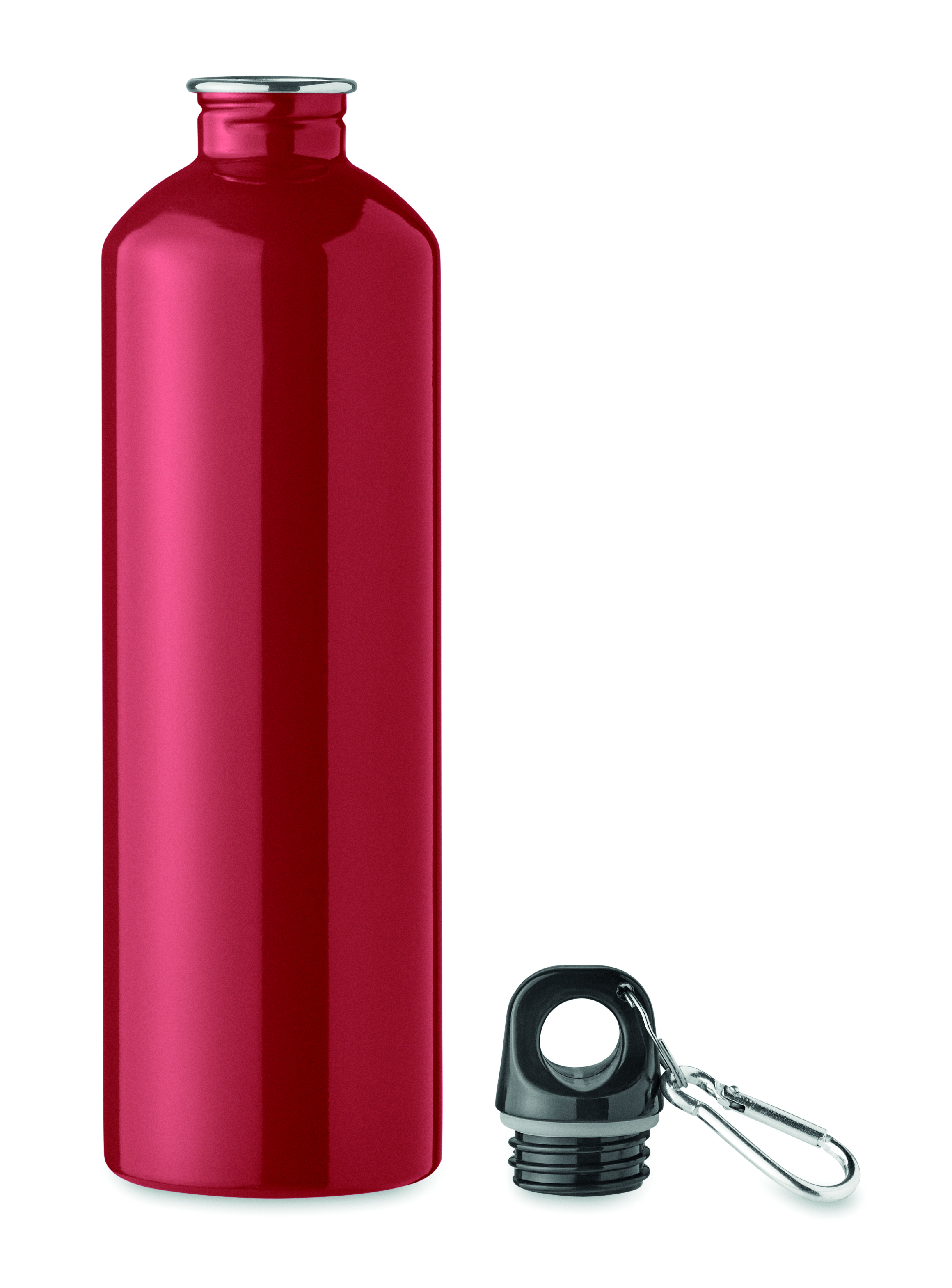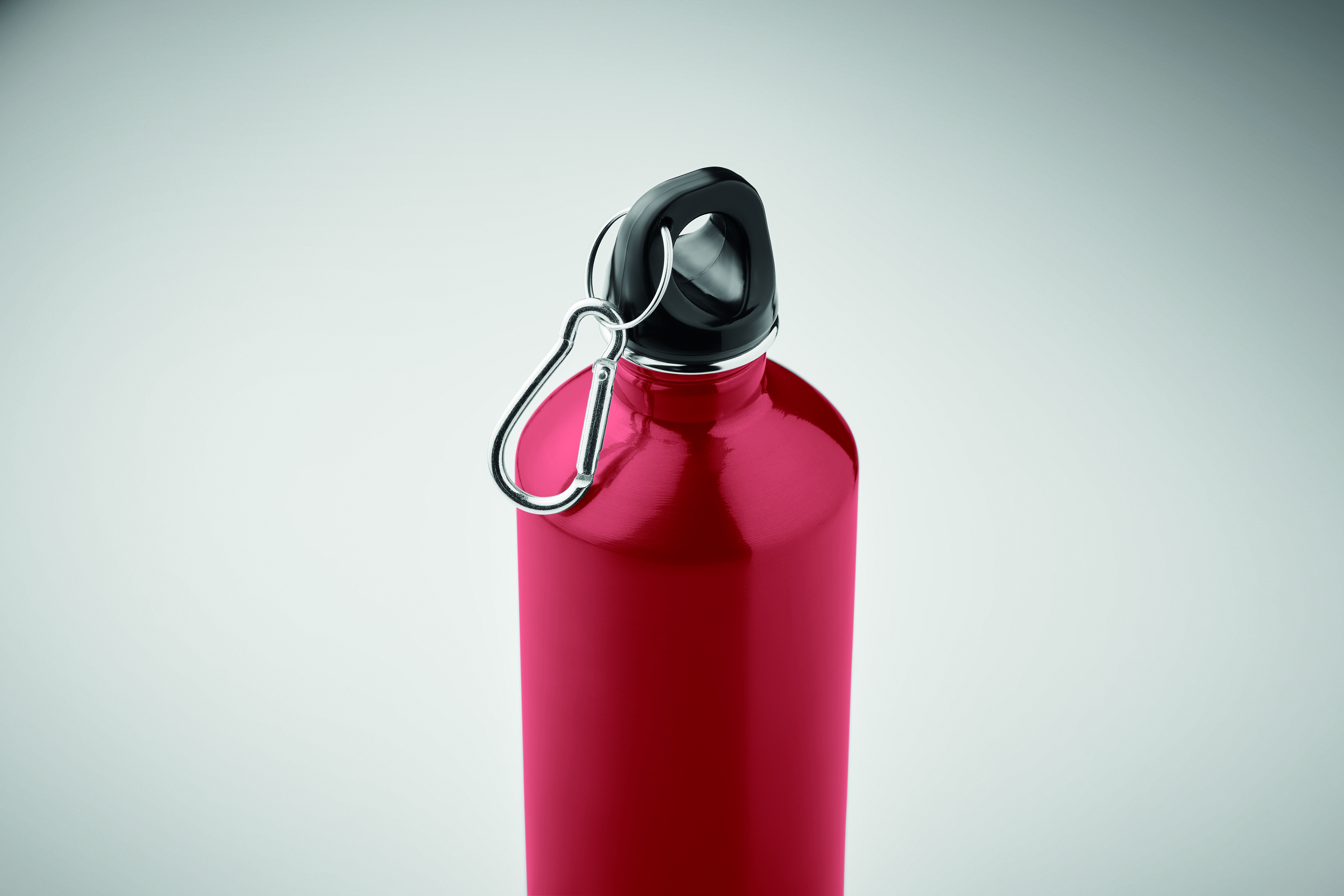 Jednościenna butelka z recyklingowanej stali nierdzewnej (90% stali nierdzewnej z recyklingu i 10% stali nierdzewnej) z karabińczykiem. Pojemność: 750 ml. Karabińczyk nie jest przeznaczony do wspinaczki (nie służy do użytku profesjonalnego). Nadruk sublimacyjny dostępny tylko w kolorze białym. Szczelna. Ponieważ jest to butelka z pojedynczą ścianką, może dochodzić do wymiany ciepła.