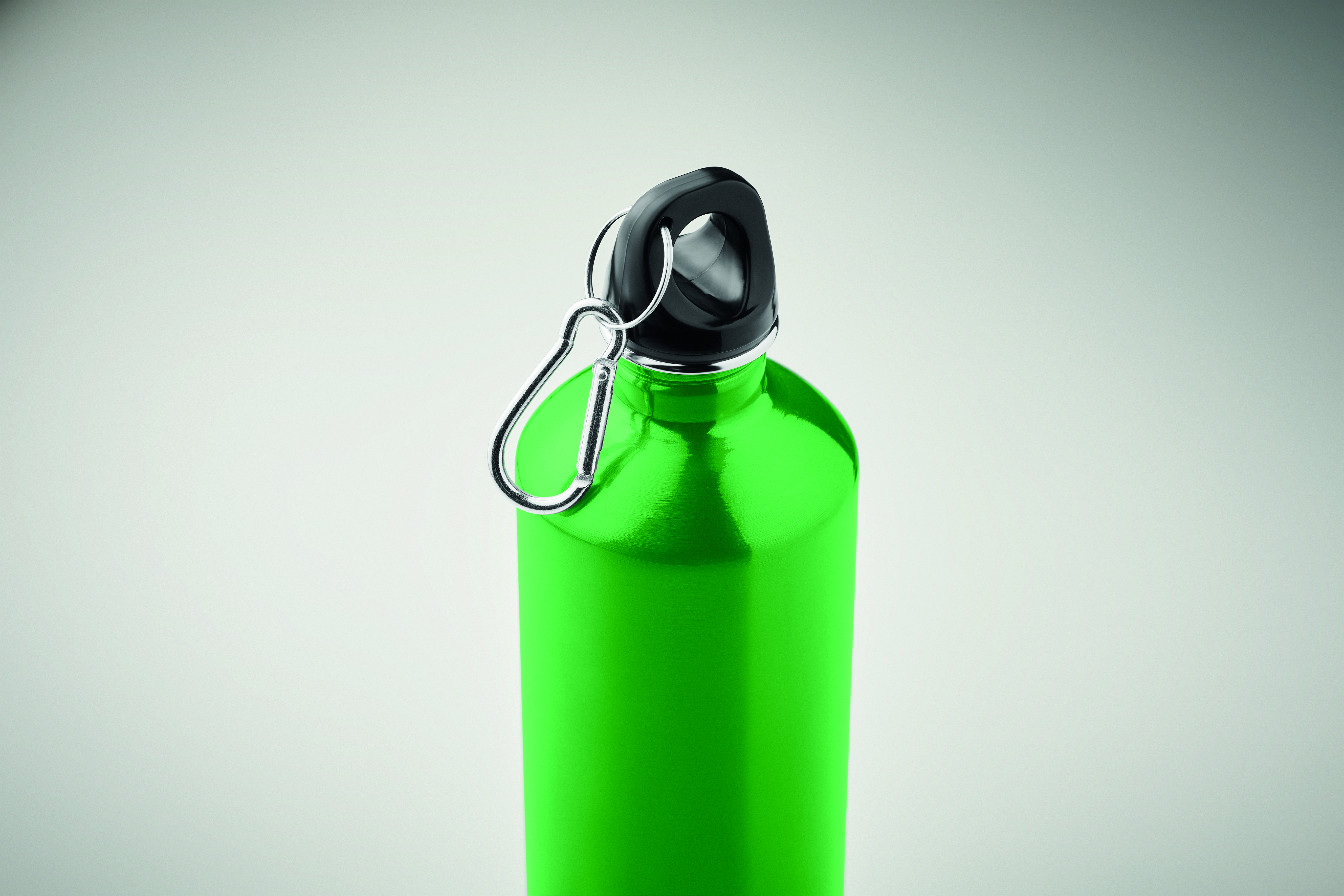 Jednościenna butelka z recyklingowanej stali nierdzewnej (90% stali nierdzewnej z recyklingu i 10% stali nierdzewnej) z karabińczykiem. Pojemność: 750 ml. Karabińczyk nie jest przeznaczony do wspinaczki (nie służy do użytku profesjonalnego). Nadruk sublimacyjny dostępny tylko w kolorze białym. Szczelna. Ponieważ jest to butelka z pojedynczą ścianką, może dochodzić do wymiany ciepła.