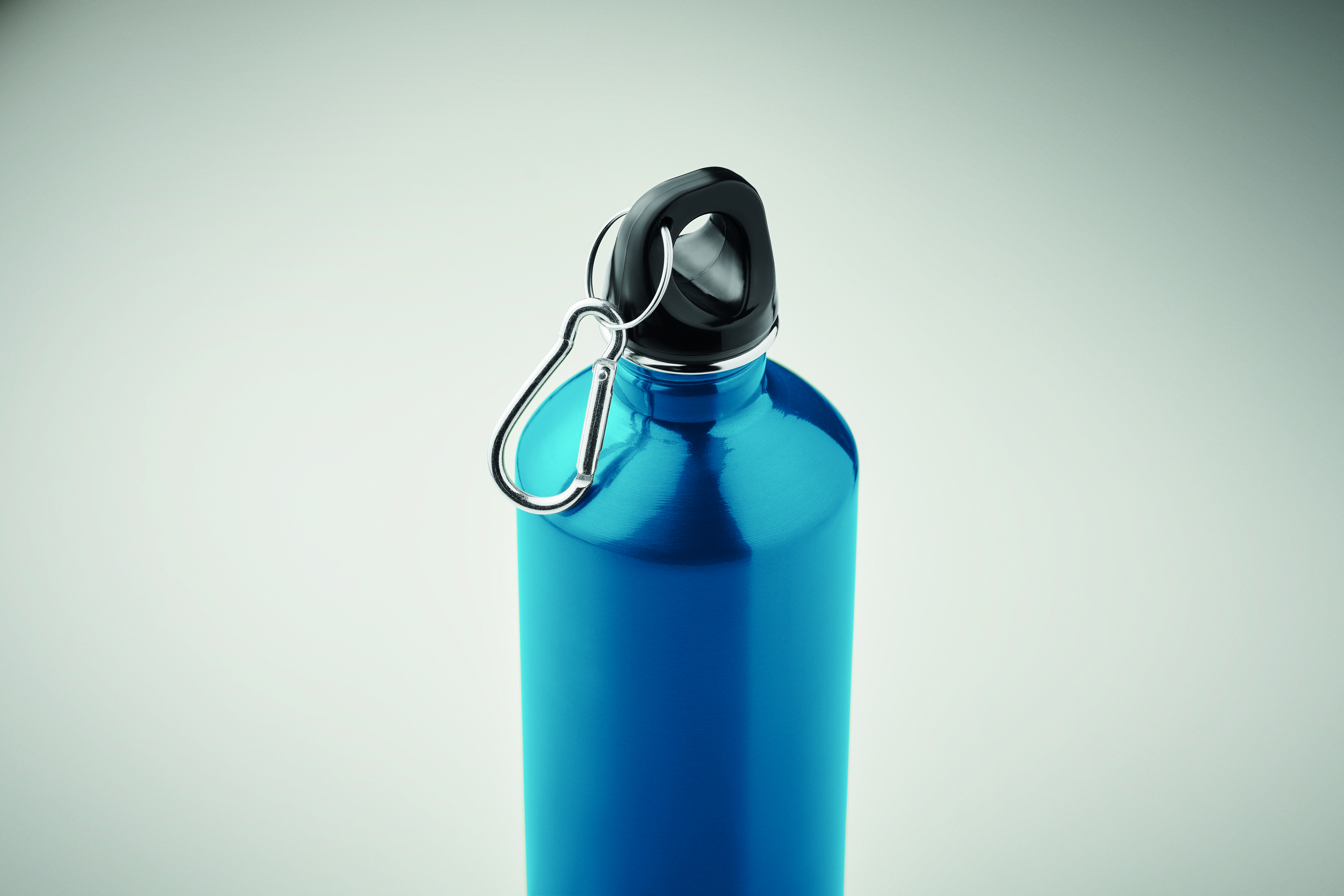 Jednościenna butelka z recyklingowanej stali nierdzewnej (90% stali nierdzewnej z recyklingu i 10% stali nierdzewnej) z karabińczykiem. Pojemność: 750 ml. Karabińczyk nie jest przeznaczony do wspinaczki (nie służy do użytku profesjonalnego). Nadruk sublimacyjny dostępny tylko w kolorze białym. Szczelna. Ponieważ jest to butelka z pojedynczą ścianką, może dochodzić do wymiany ciepła.