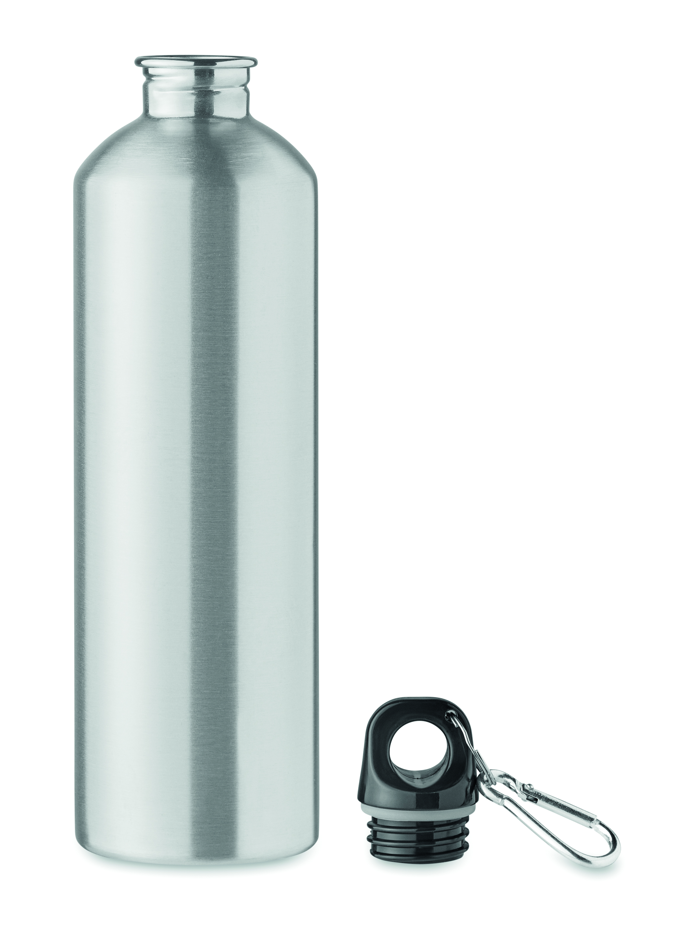Jednościenna butelka z recyklingowanej stali nierdzewnej (90% stali nierdzewnej z recyklingu i 10% stali nierdzewnej) z karabińczykiem. Pojemność: 750 ml. Karabińczyk nie jest przeznaczony do wspinaczki (nie służy do użytku profesjonalnego). Nadruk sublimacyjny dostępny tylko w kolorze białym. Szczelna. Ponieważ jest to butelka z pojedynczą ścianką, może dochodzić do wymiany ciepła.