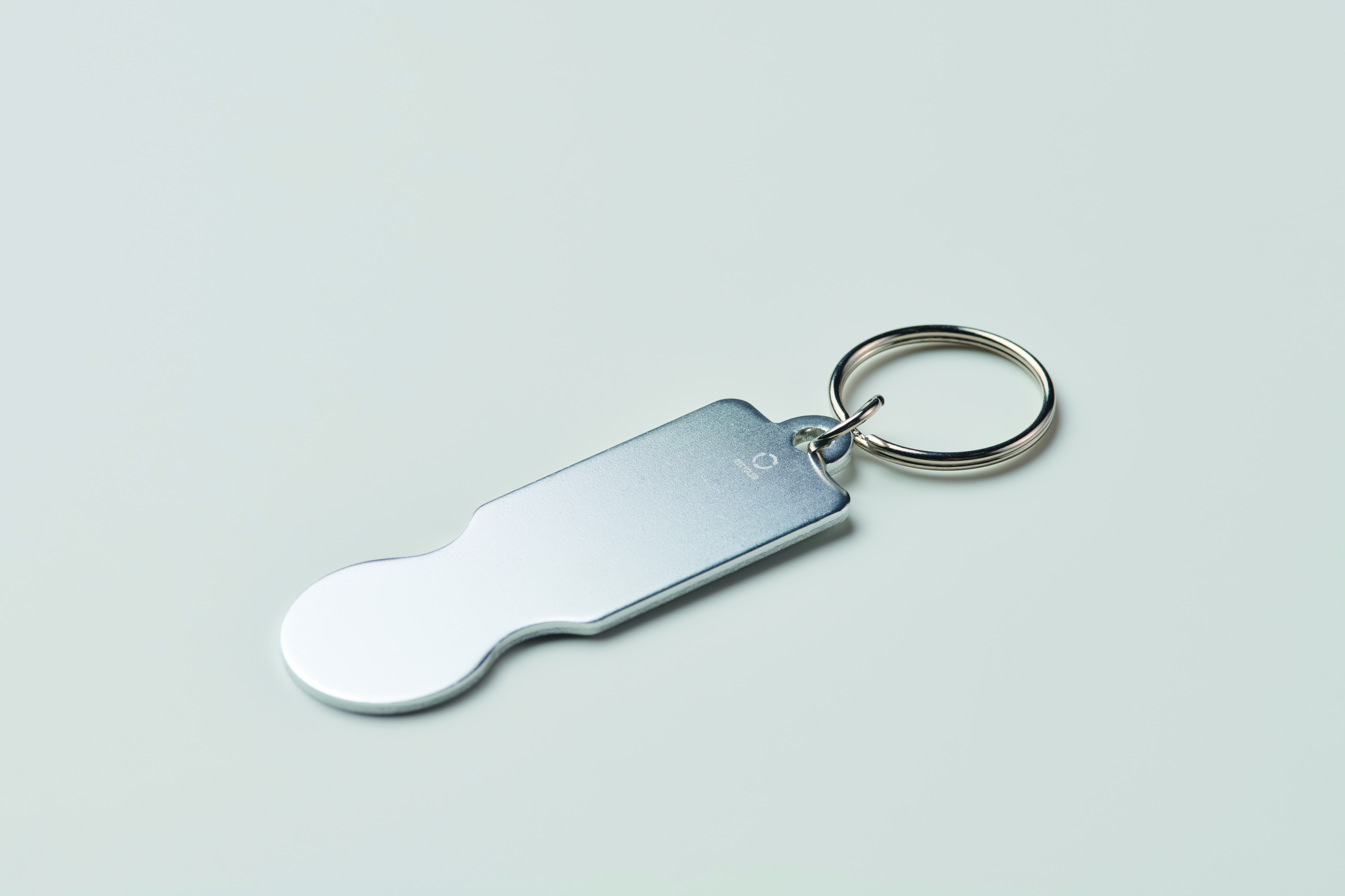 Brelok z żetonem do wózka z aluminium pochodzącego z recyklingu.