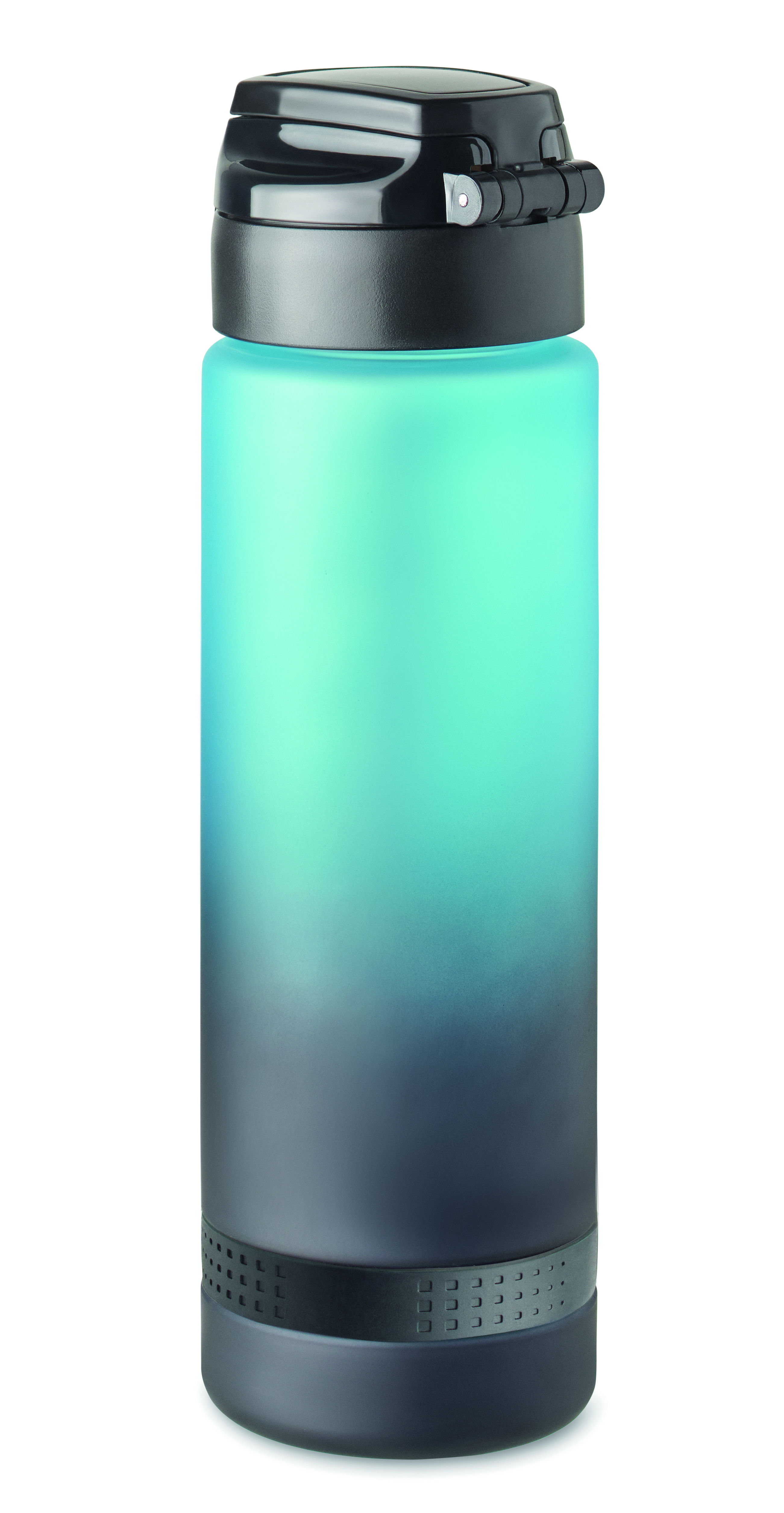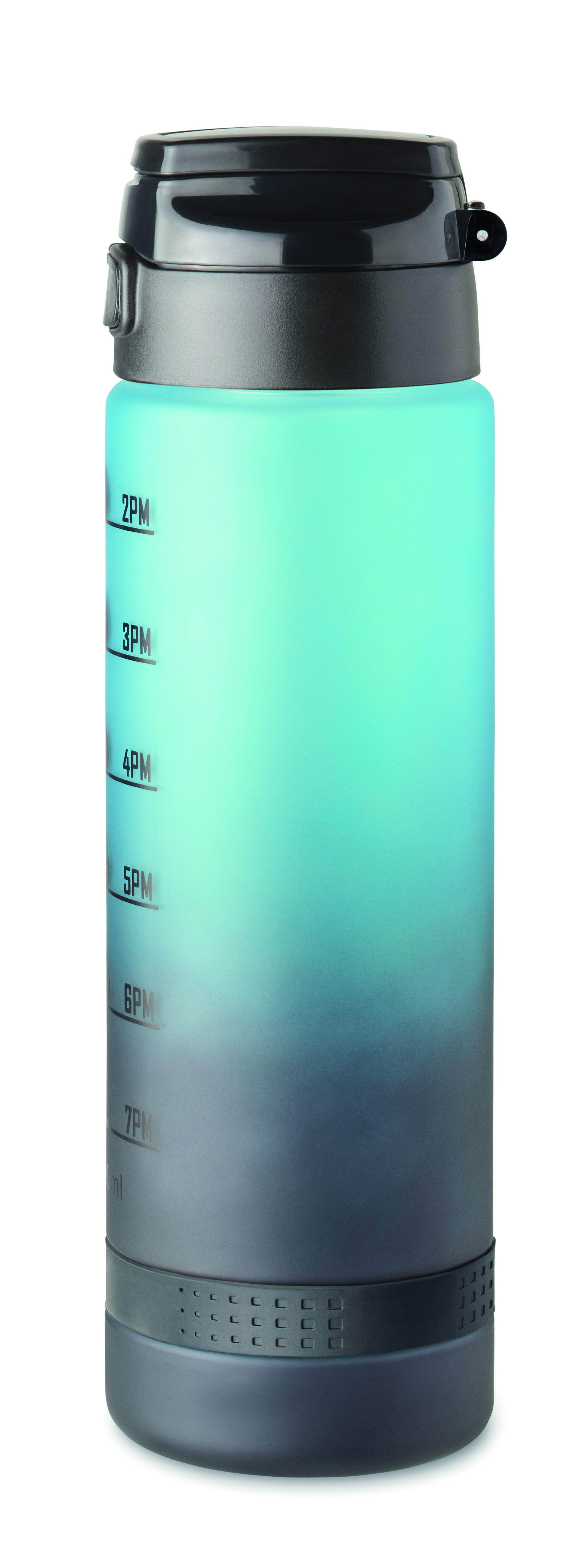 Sportowa butelka na wodę z RPET, motywacyjne oznaczenie czasu, otwierana jedną ręką klapka, blokada bezpieczeństwa i uchwyt do przenoszenia. Pojemność: 1 l. Szczelna.