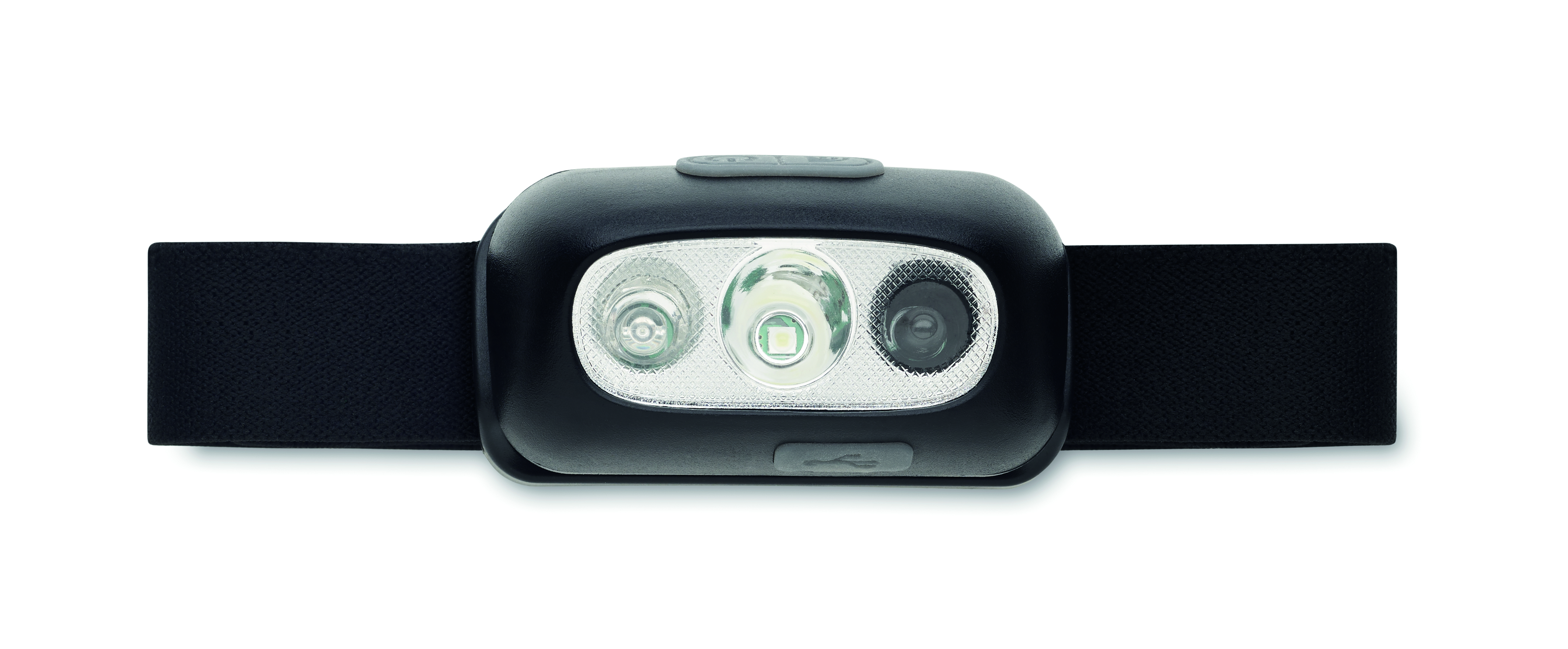 Ładowalna i regulowana latarka czołowa z 1 diodą LED (50 lumenów) i 3 trybami świecenia. Wbudowany akumulator 400 mAh. Dołączony kabel do ładowania.