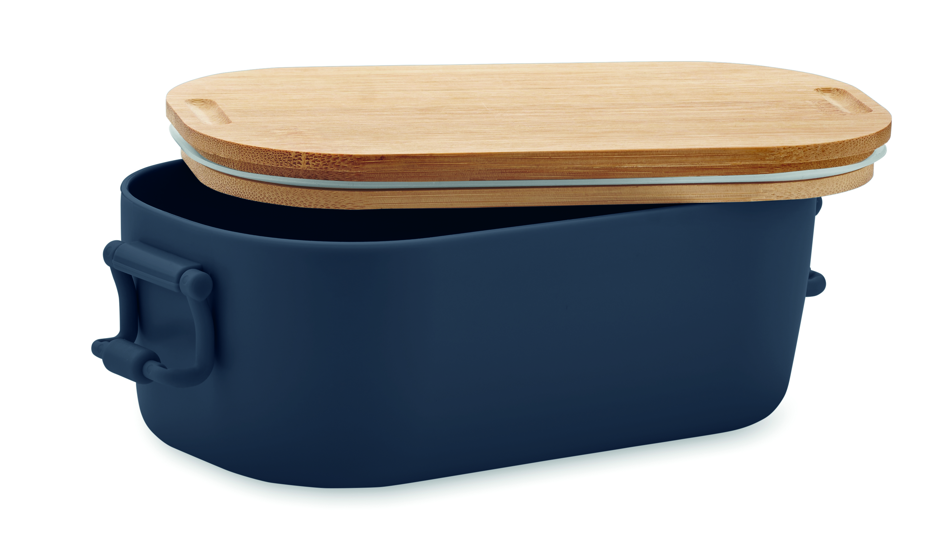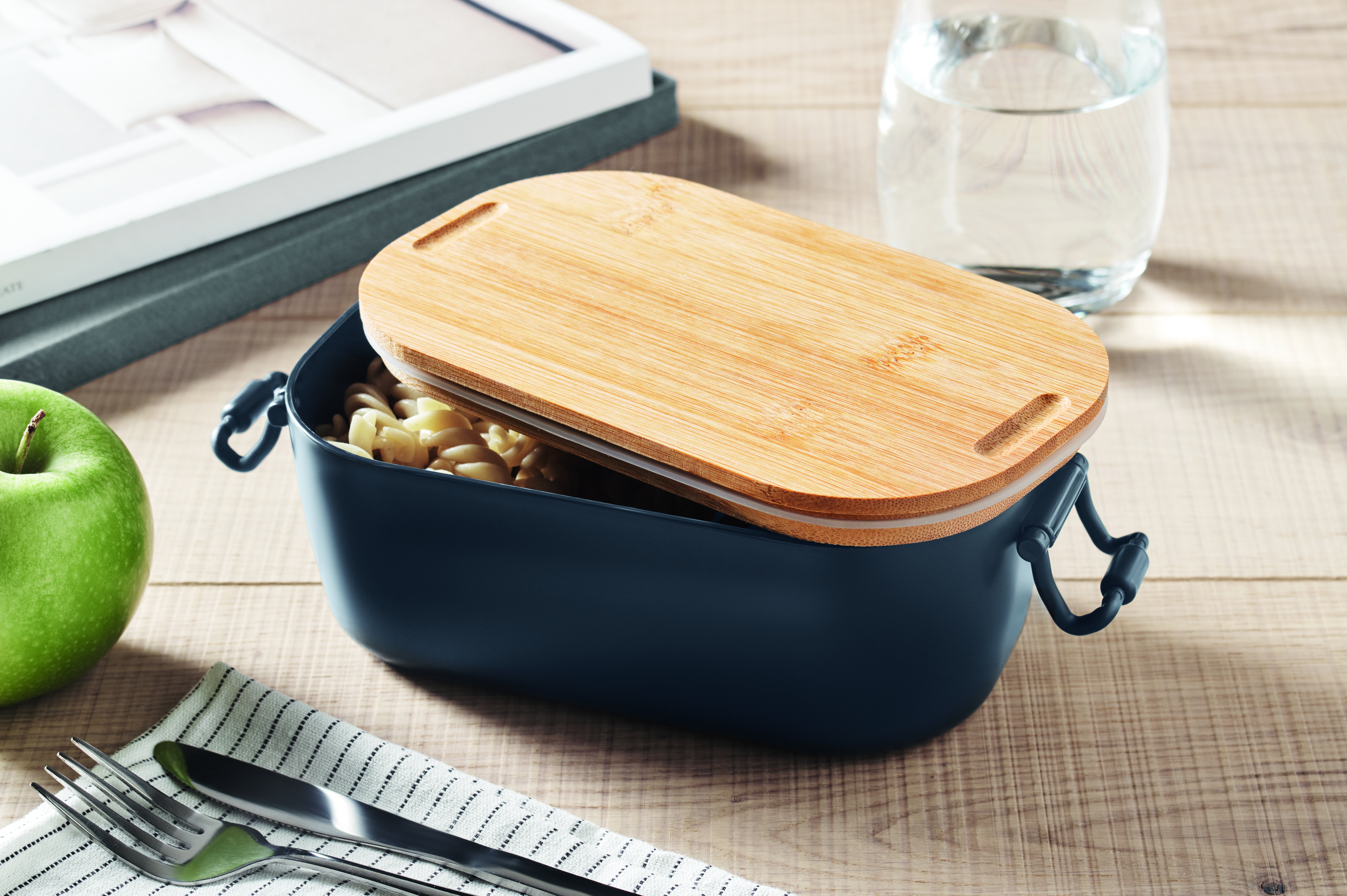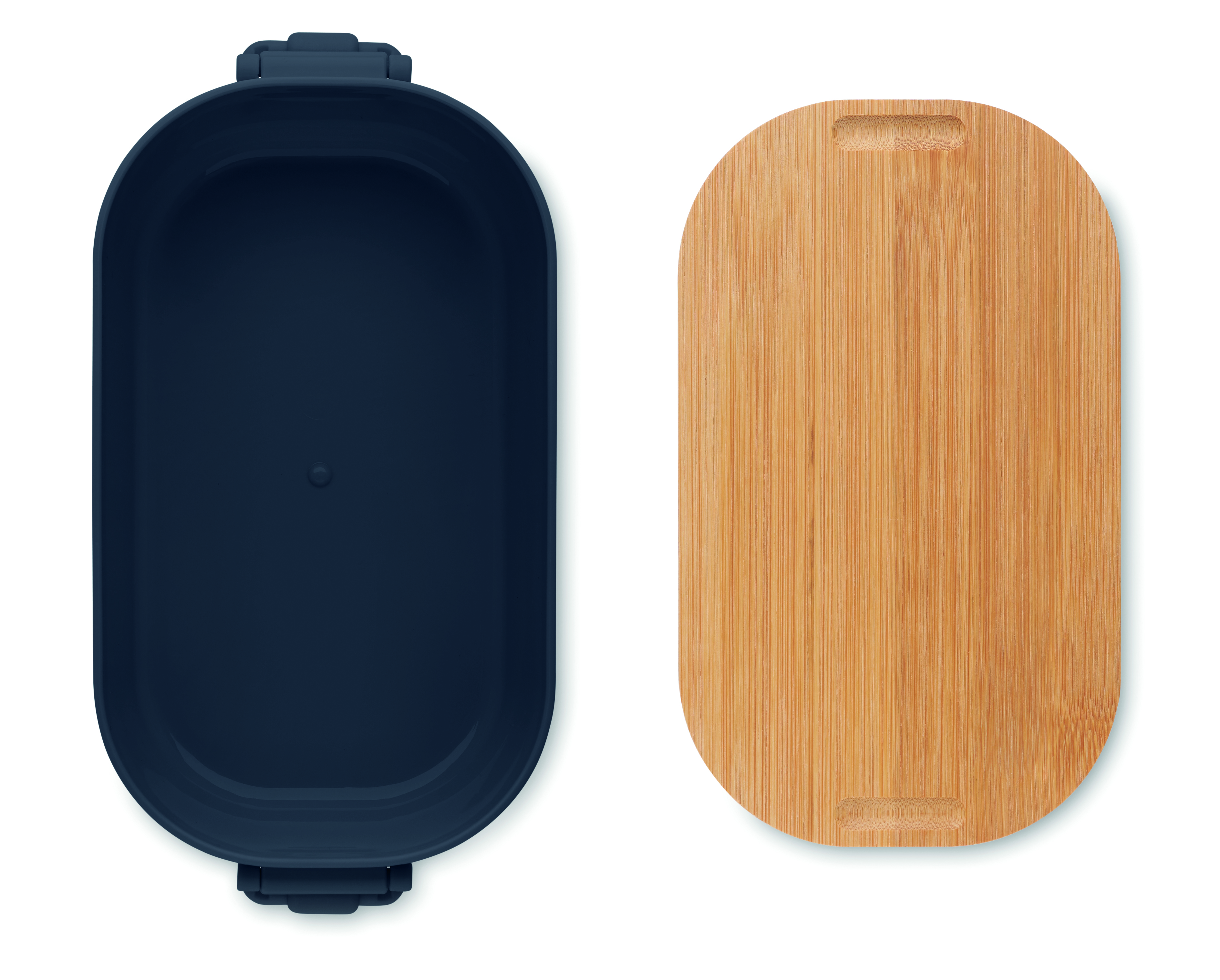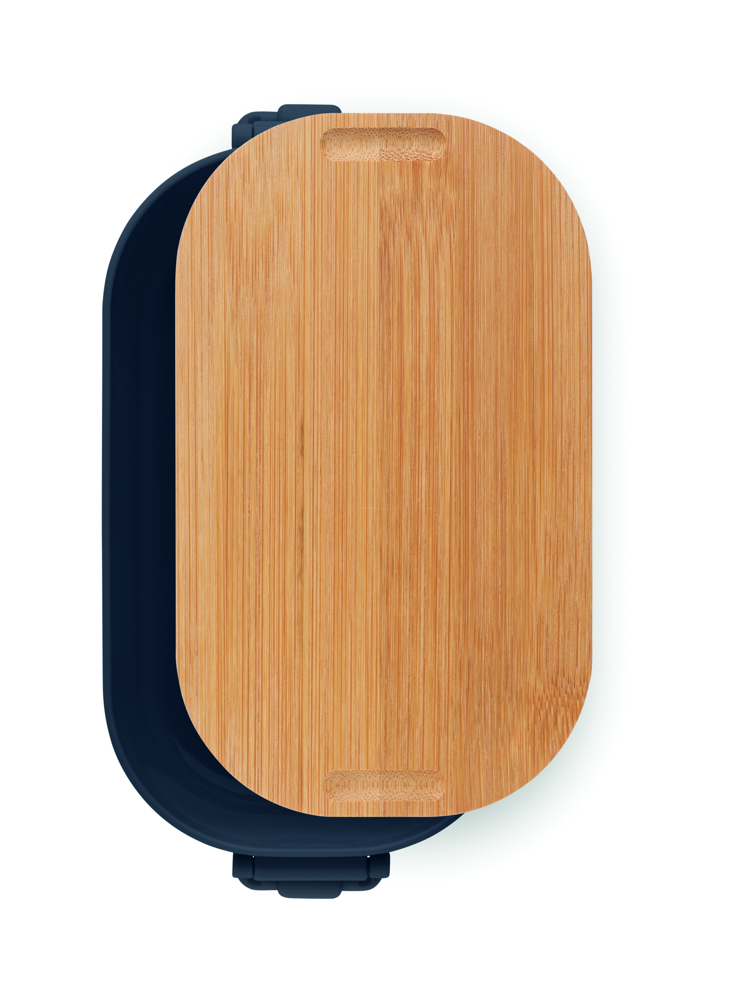 Pojemnik na lunch z PP z zapięciem z 2 stron i z bambusową pokrywką. Pojemność 700 ml.