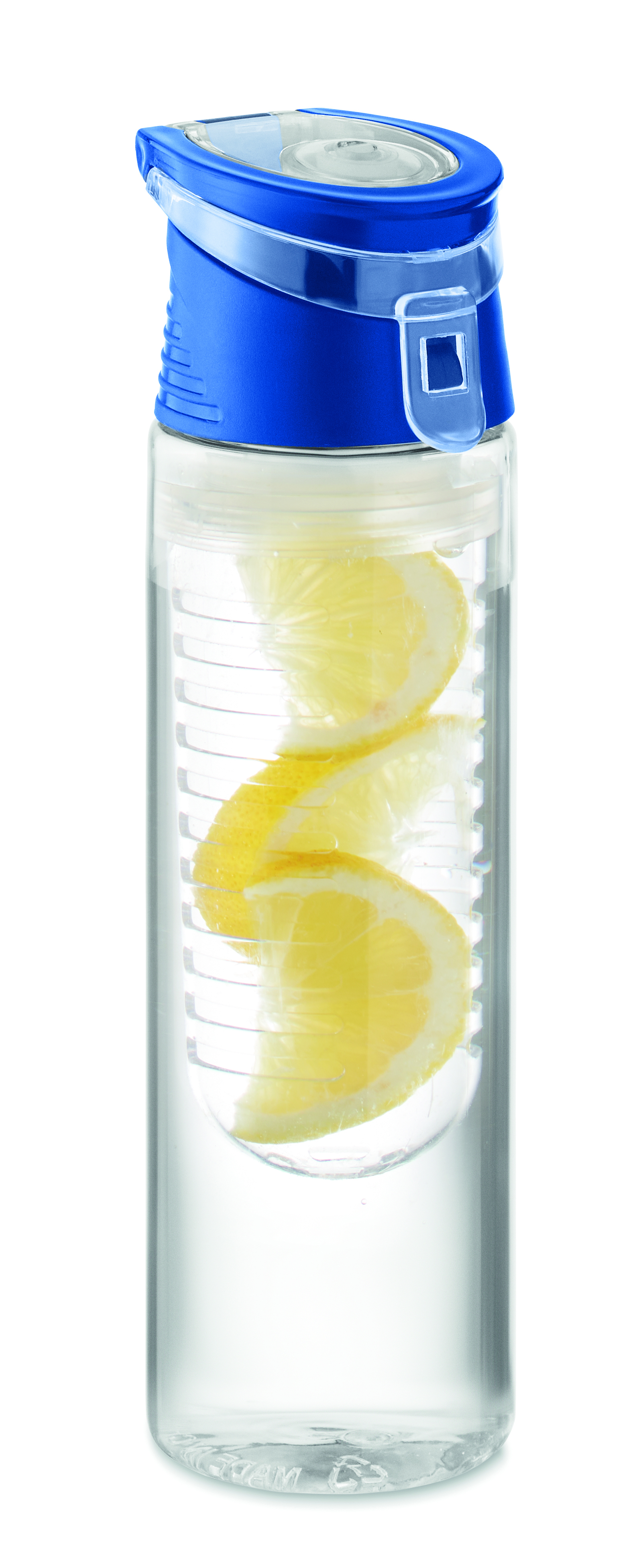 Butelka na wodę z RPET z wyjmowanym sitkiem do owoców, uchwytem do przenoszenia i szczelną zakrętką. Pojemność 500 ml.