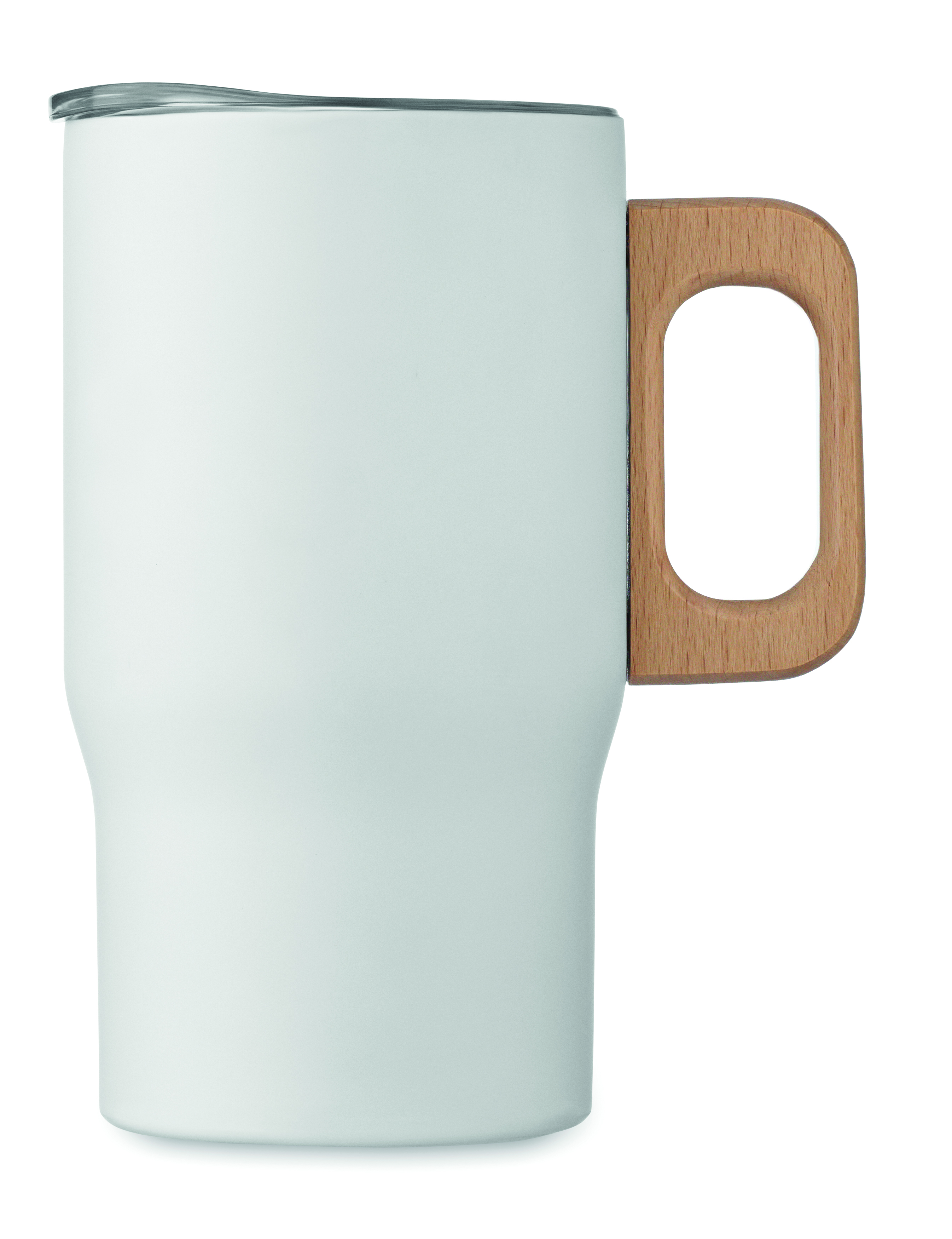 Kubek z podwójnymi ściankami z recyklingowanej stali nierdzewnej (90% stali nierdzewnej z recyklingu i 10% stali nierdzewnej) z drewnianym uchwytem. Pojemność: 350 ml.