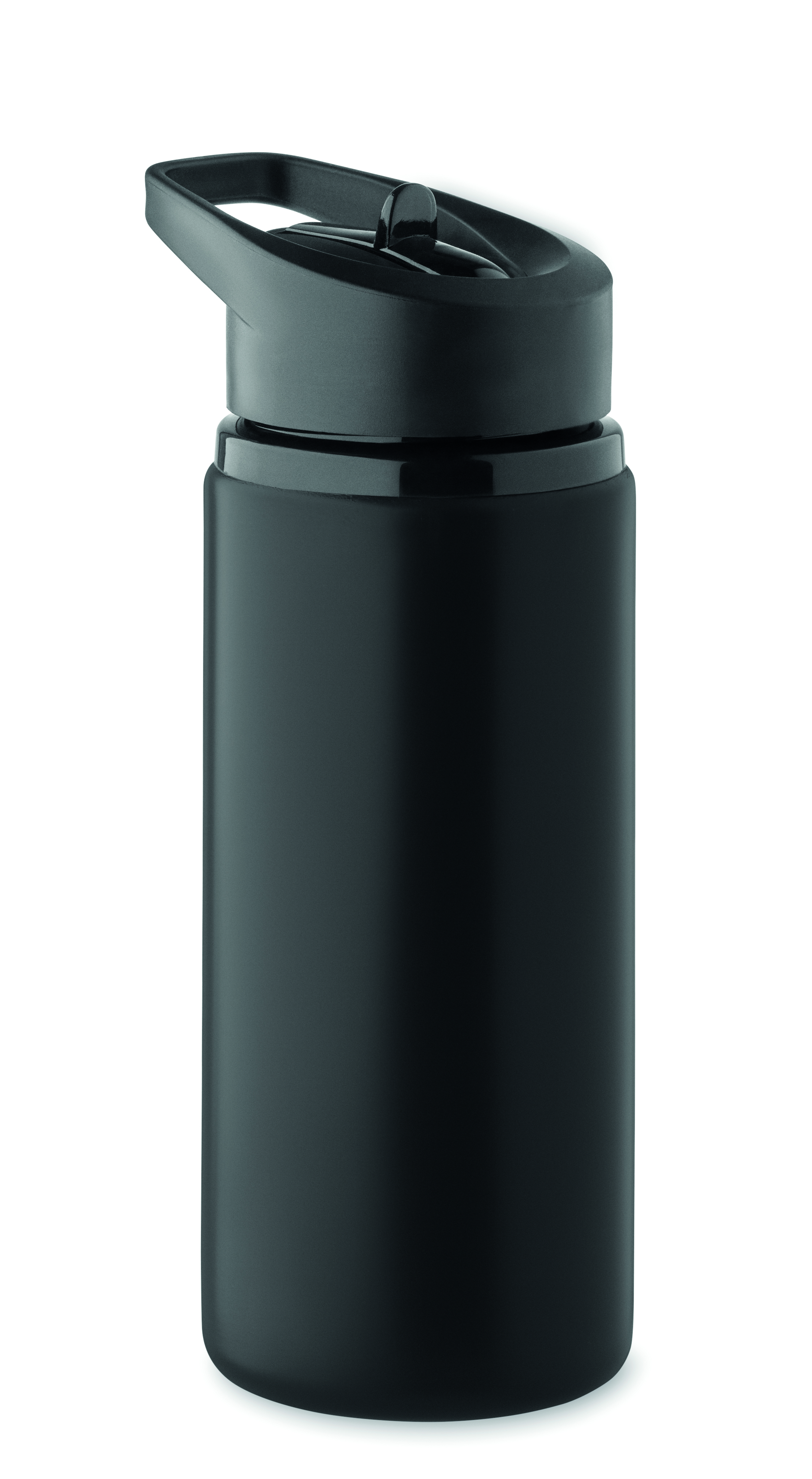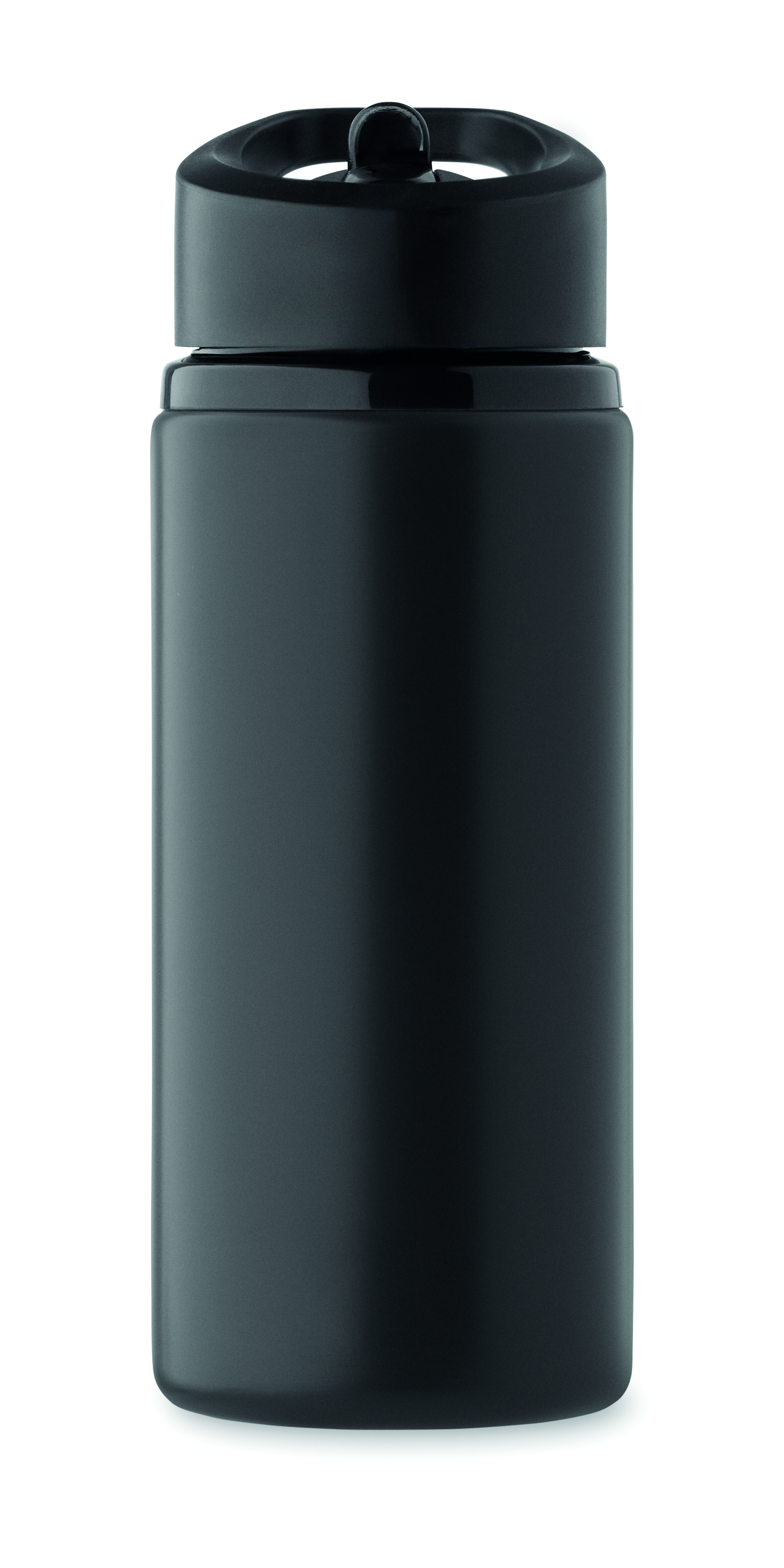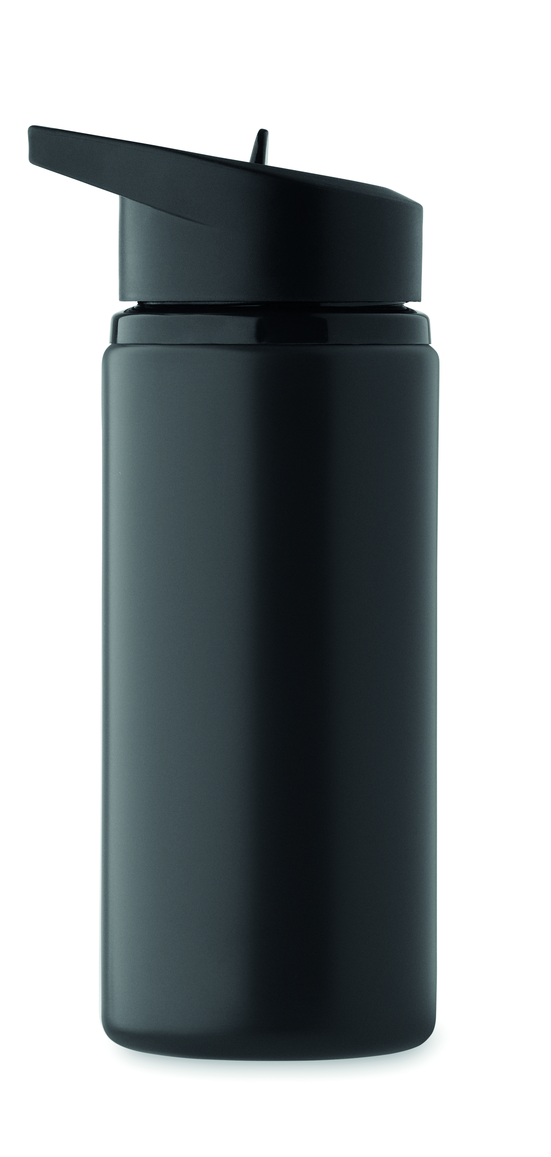 Jednościenna butelka z recyklingowanej stali nierdzewnej (90% stali nierdzewnej z recyklingu i 10% stali nierdzewnej) ze składanym ustnikiem, słomką i pokrywką z uchwytem do przenoszenia. Pojemność: 500 ml. Ponieważ jest to butelka z pojedynczą ścianką, może dochodzić do wymiany ciepła.