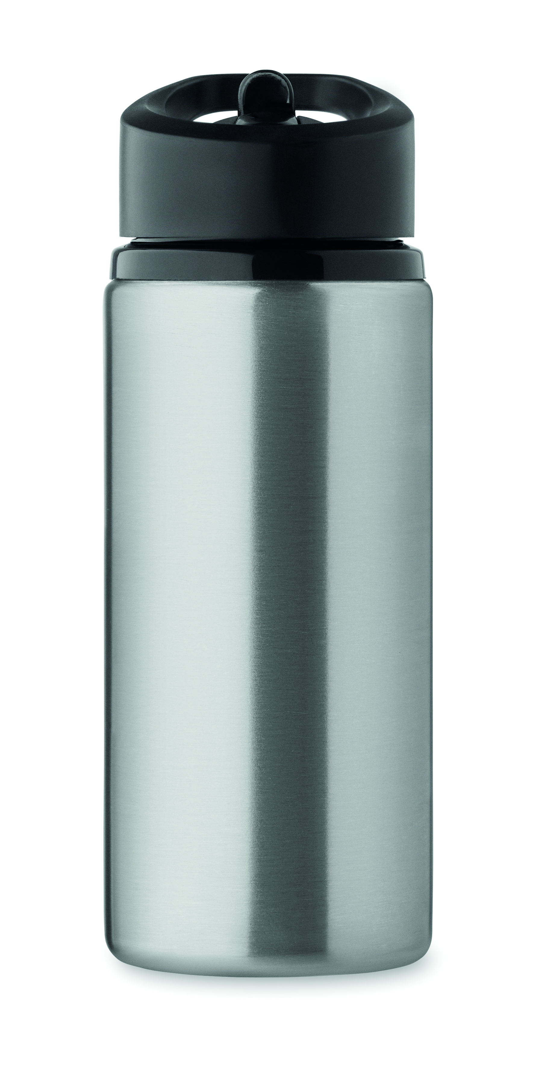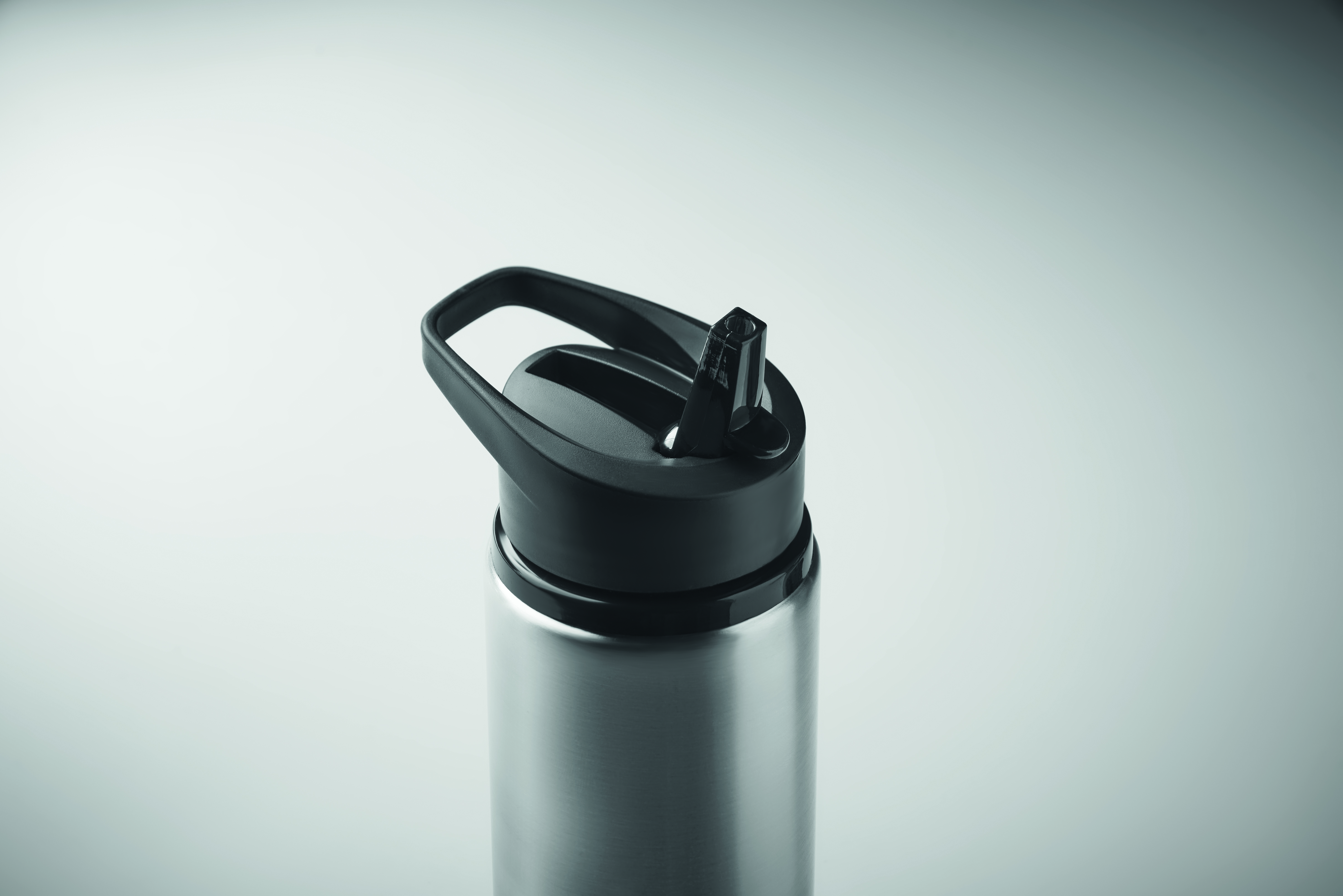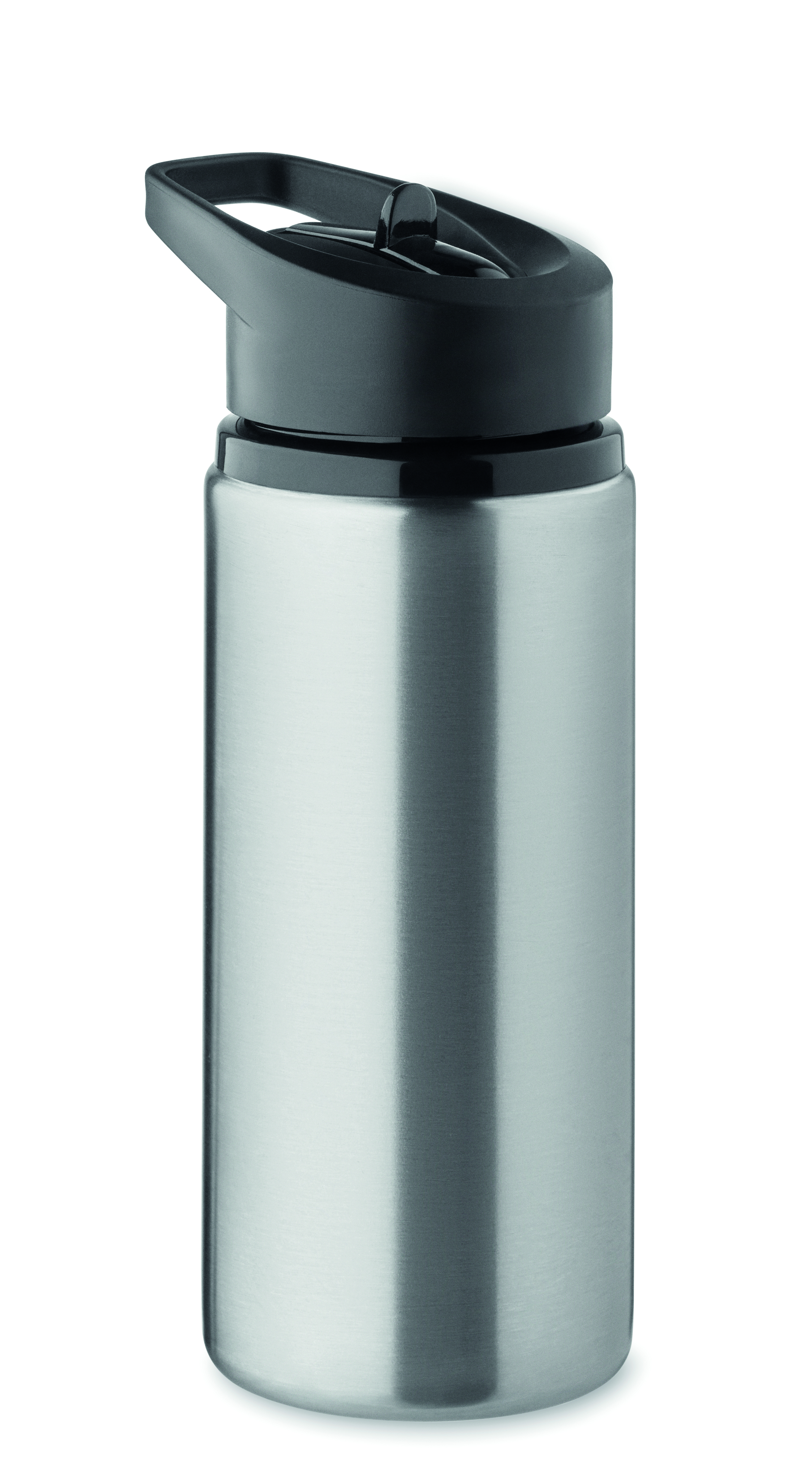 Jednościenna butelka z recyklingowanej stali nierdzewnej (90% stali nierdzewnej z recyklingu i 10% stali nierdzewnej) ze składanym ustnikiem, słomką i pokrywką z uchwytem do przenoszenia. Pojemność: 500 ml. Ponieważ jest to butelka z pojedynczą ścianką, może dochodzić do wymiany ciepła.