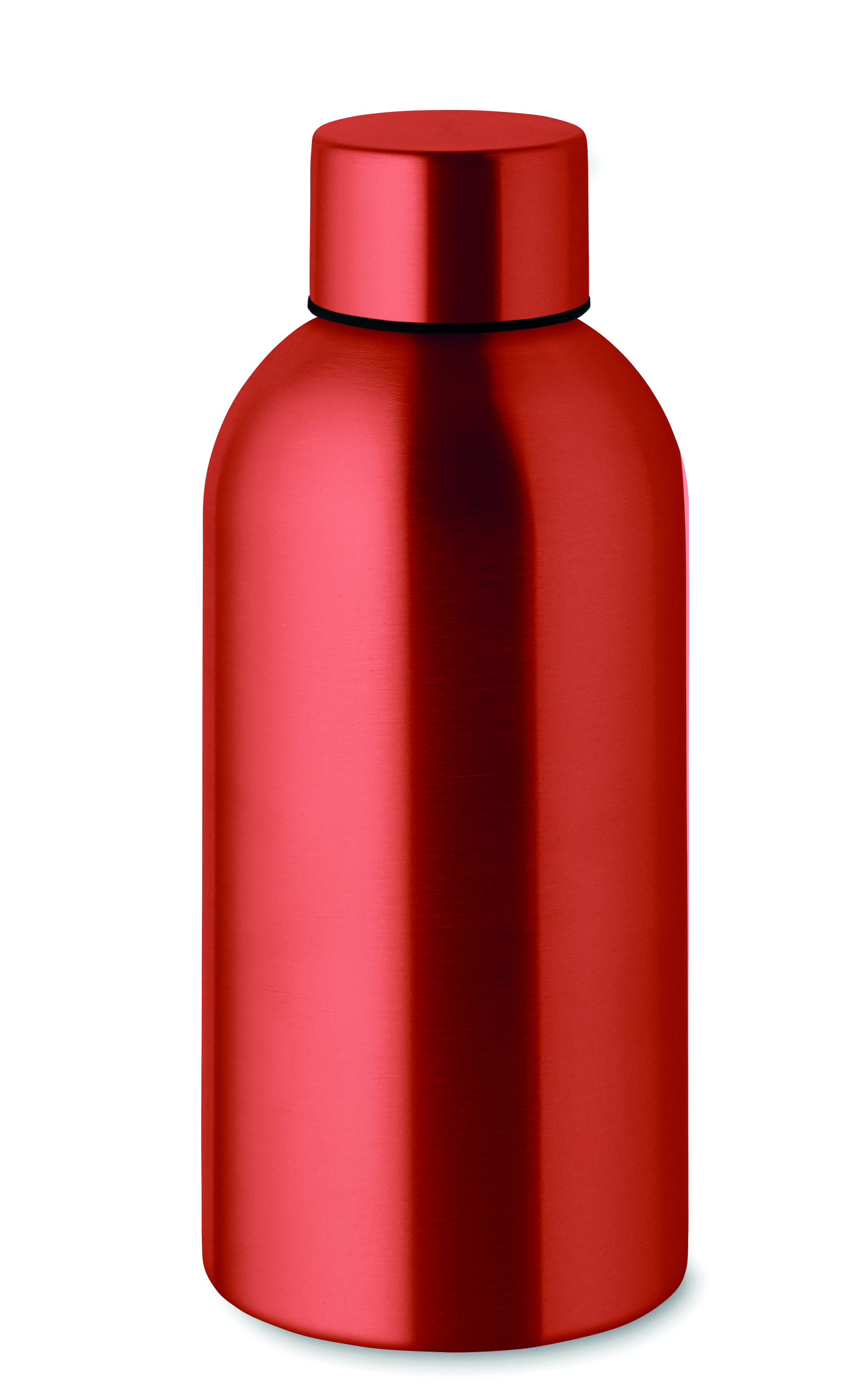 Jednościenna butelka wykonana ze stali nierdzewnej pochodzącej z recyklingu (90% stali nierdzewnej pochodzącej z recyklingu i 10% stali nierdzewnej). Nie przecieka. Pojemność 500 ml. Ponieważ jest to butelka z pojedynczą ścianką, może dochodzić do wymiany ciepła.