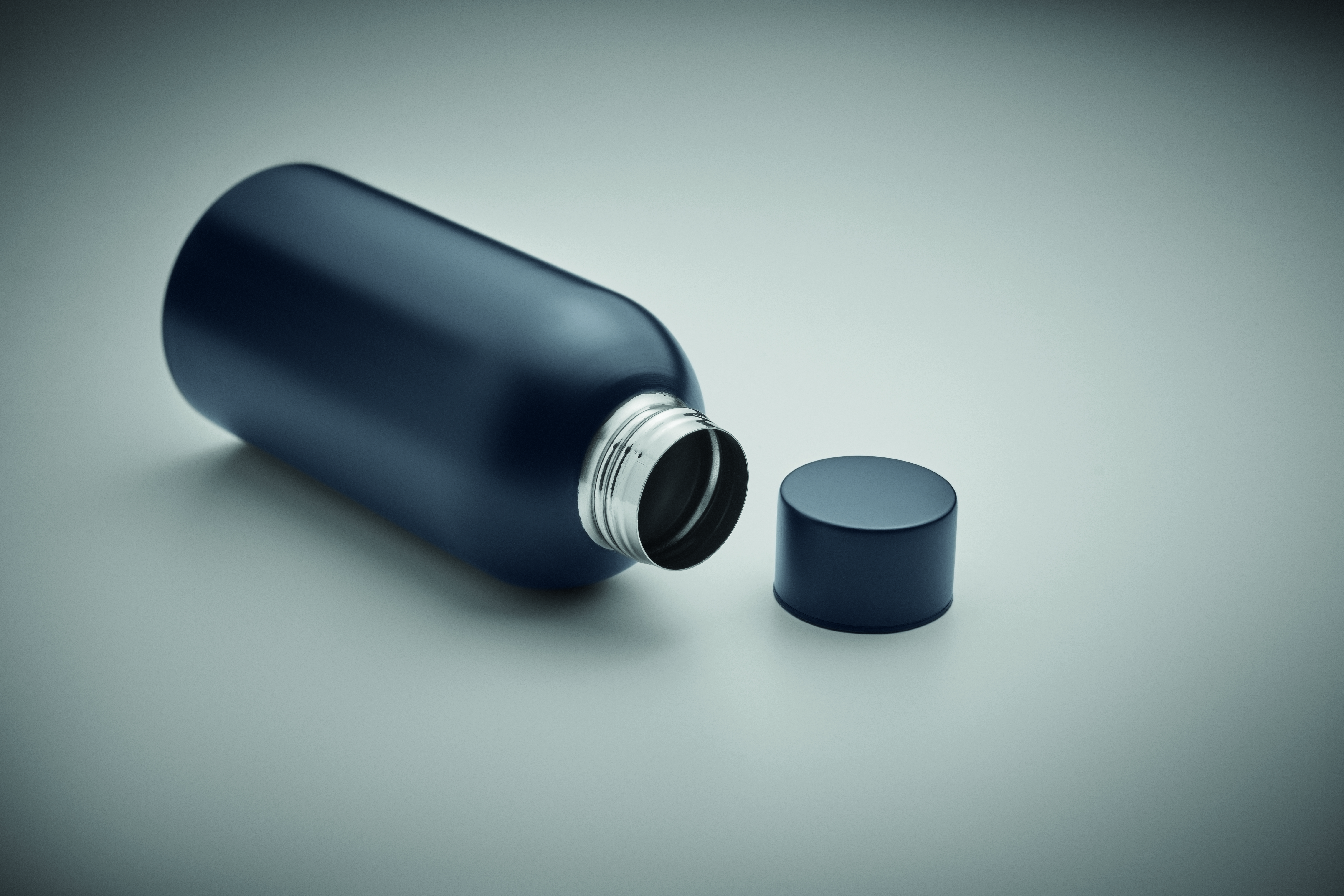 Jednościenna butelka wykonana ze stali nierdzewnej pochodzącej z recyklingu (90% stali nierdzewnej pochodzącej z recyklingu i 10% stali nierdzewnej). Nie przecieka. Pojemność 500 ml. Ponieważ jest to butelka z pojedynczą ścianką, może dochodzić do wymiany ciepła.