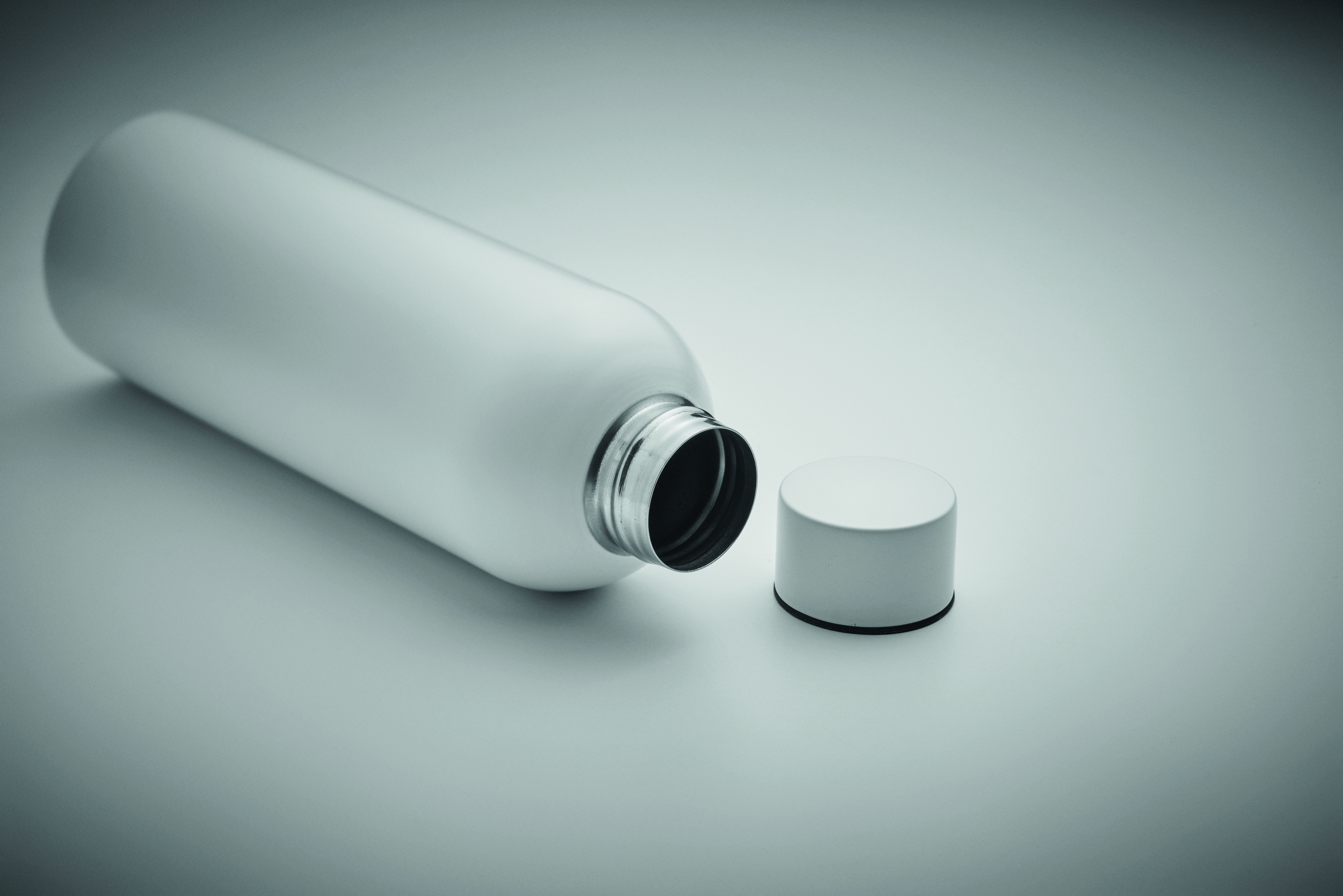 Jednościenna butelka wykonana ze stali nierdzewnej pochodzącej z recyklingu (90% stali nierdzewnej pochodzącej z recyklingu i 10% stali nierdzewnej). Nie przecieka. Pojemność 750 ml. Ponieważ jest to butelka z pojedynczą ścianką, może dochodzić do wymiany ciepła.