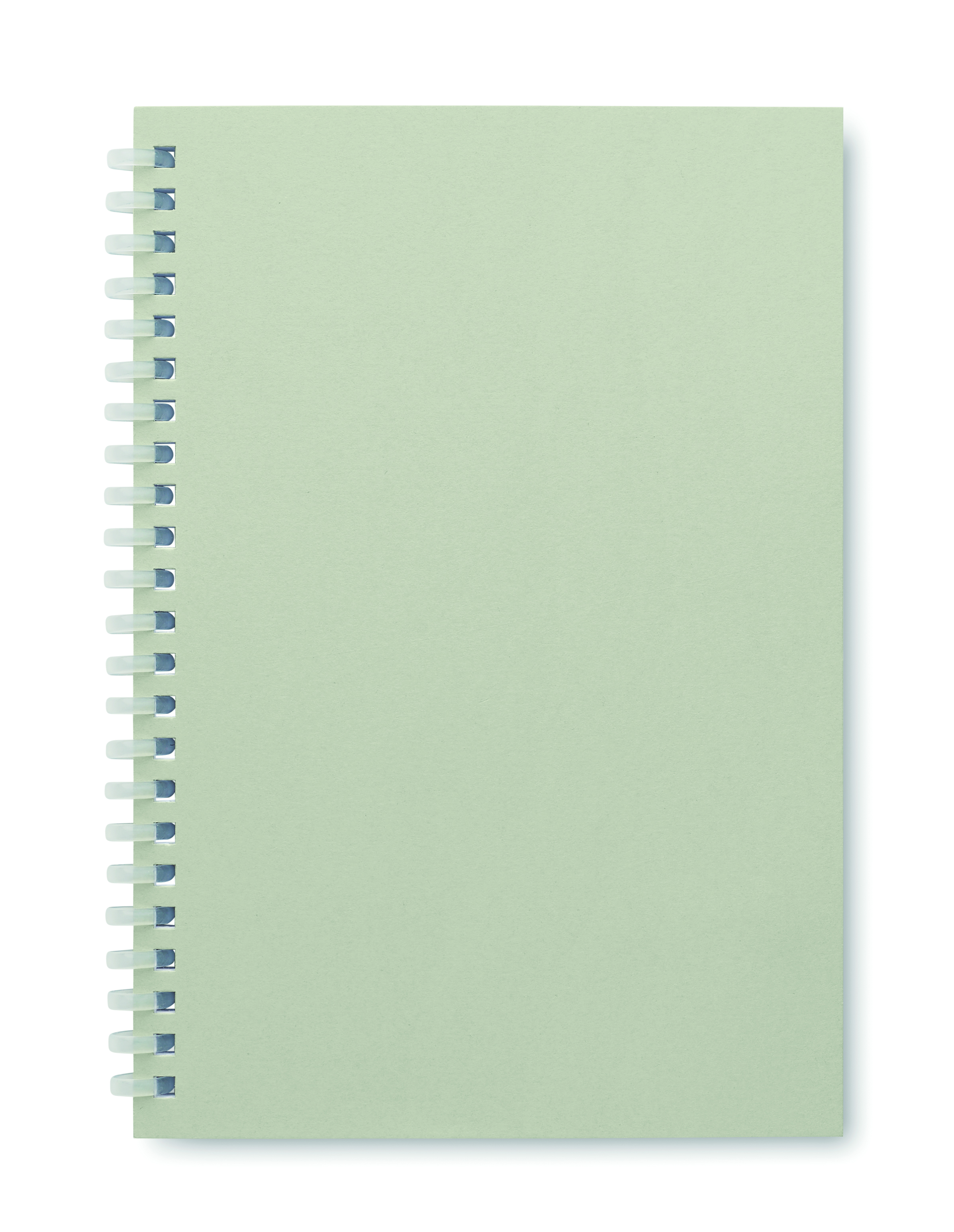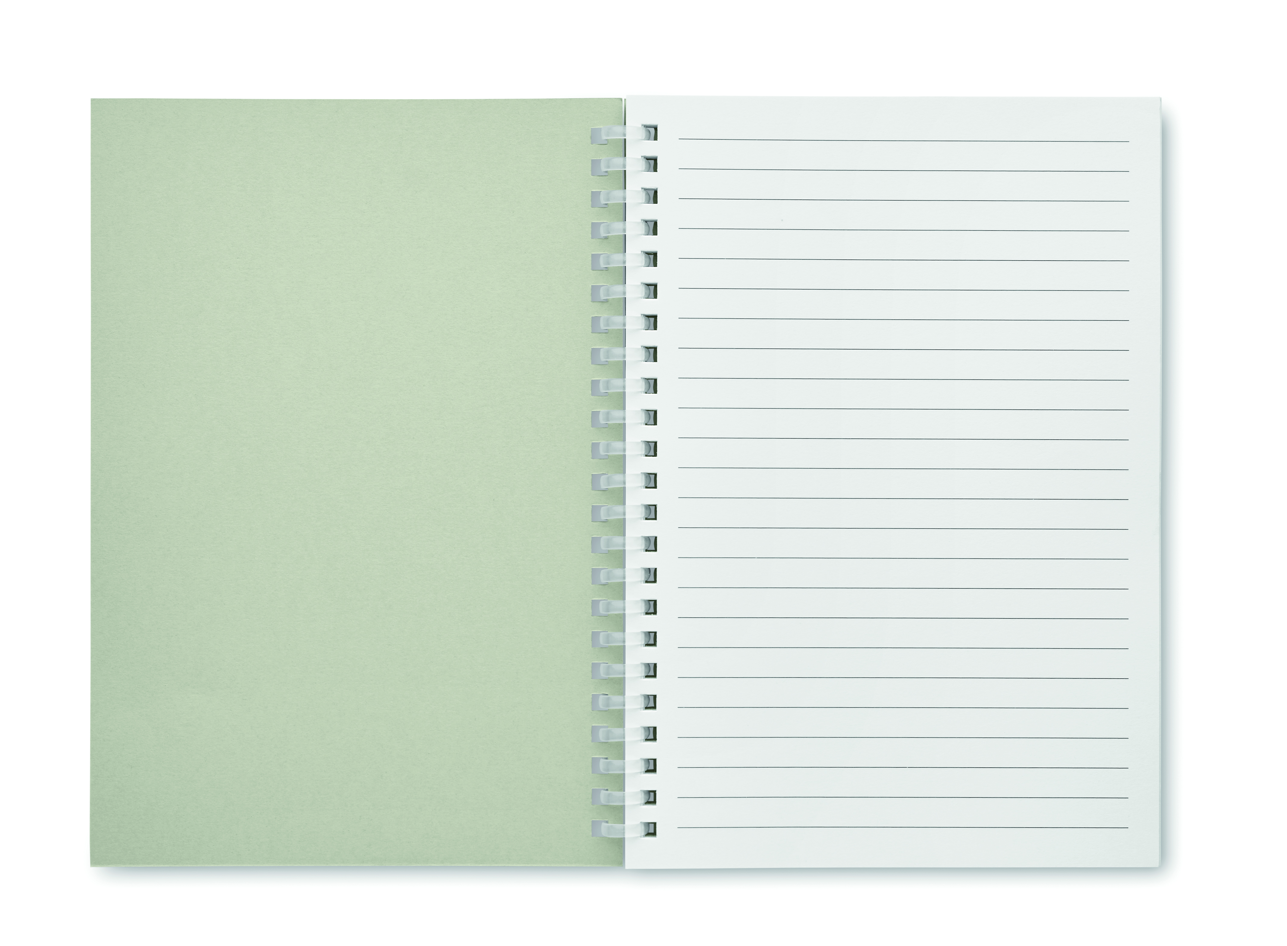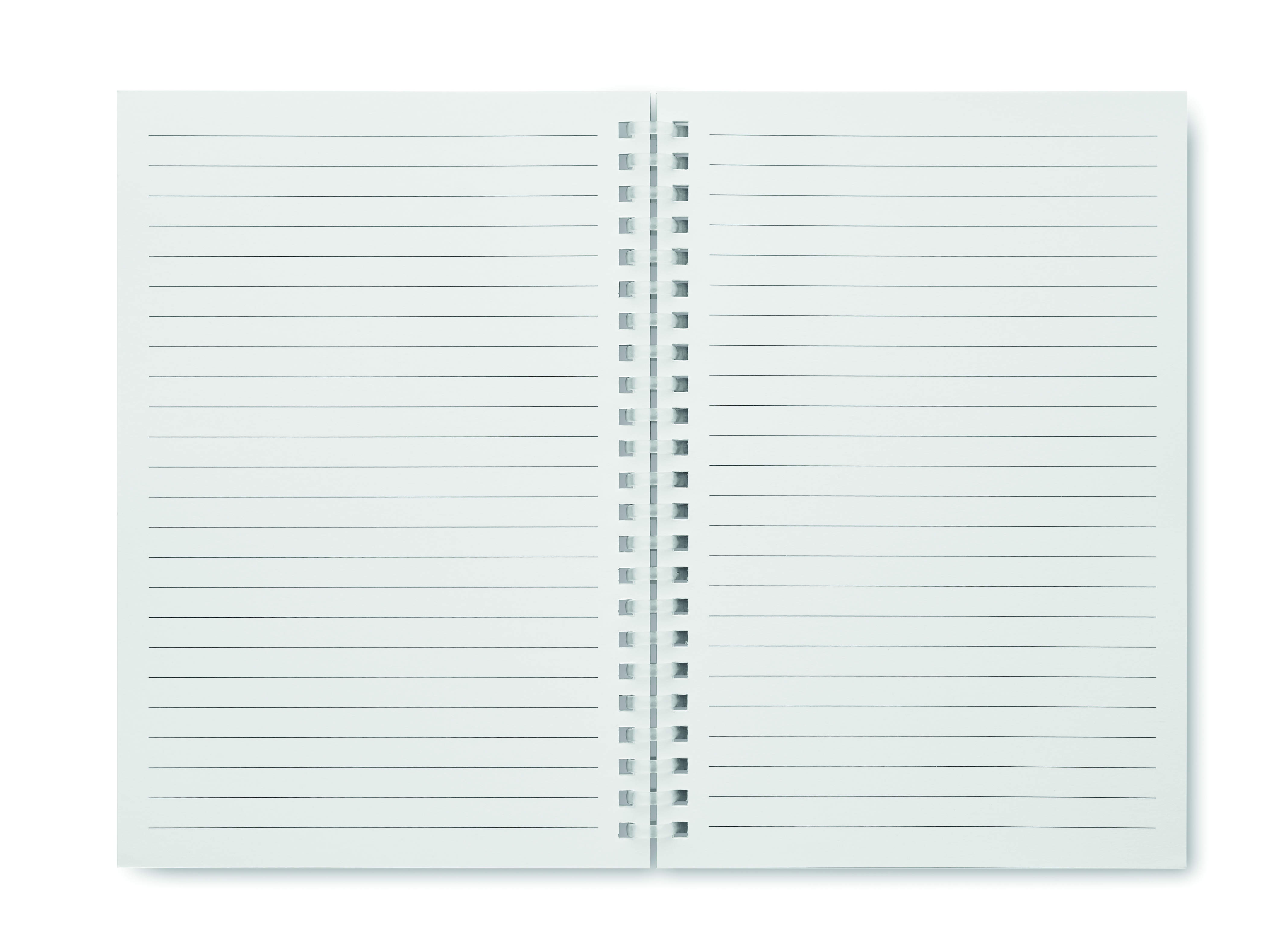 Notatnik A5 w miękkiej oprawie z kartonu pochodzącego z recyklingu na spirali. 160 stron w linie z papieru z recyklingu (80 arkuszy). FSC®-certified | FSC MIX CREDIT, P7.1, FSC-C213206