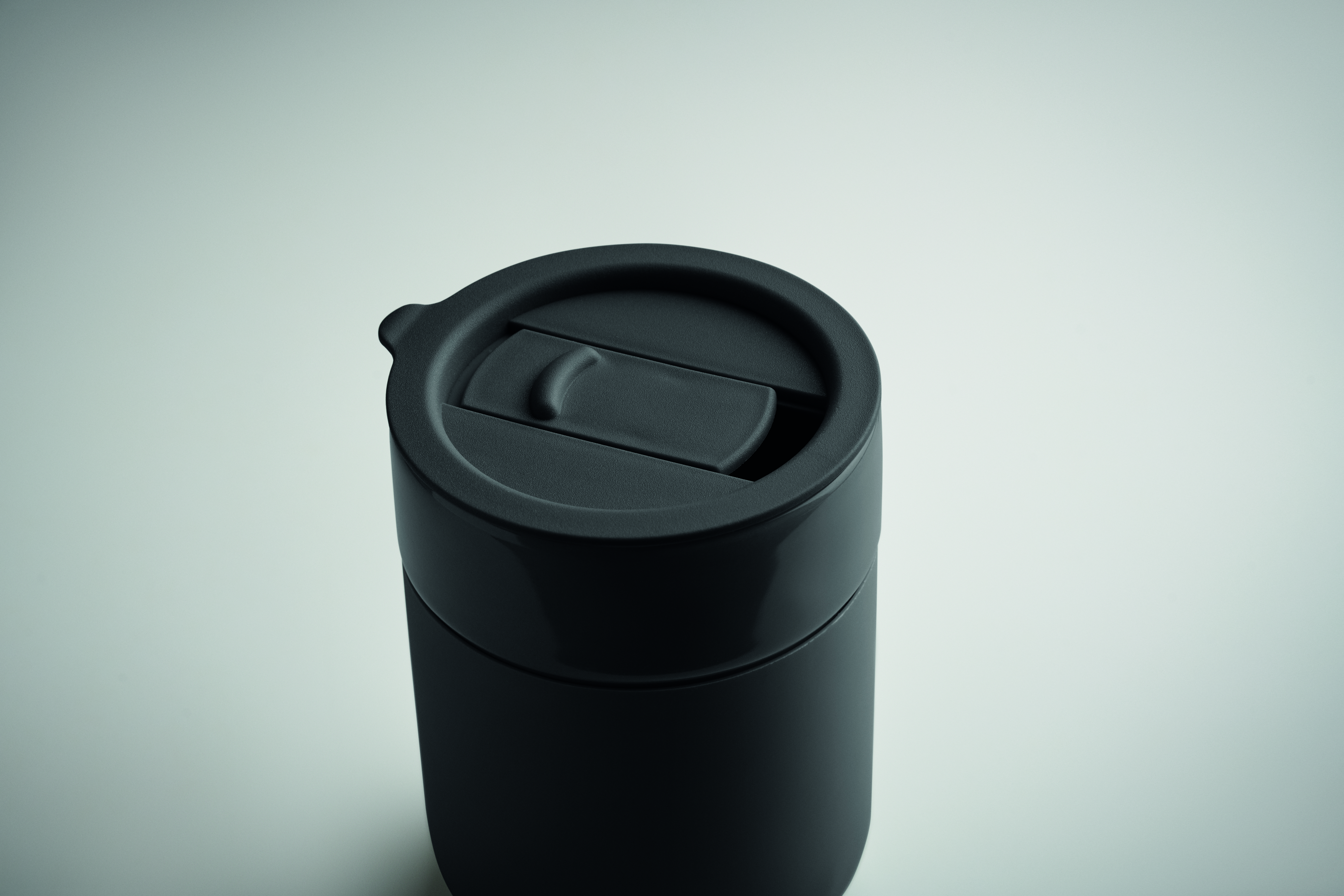 Ceramiczny kubek ze zdejmowalnym silikonowym rękawem i pokrywką z PP. Pojemność: 330 ml.