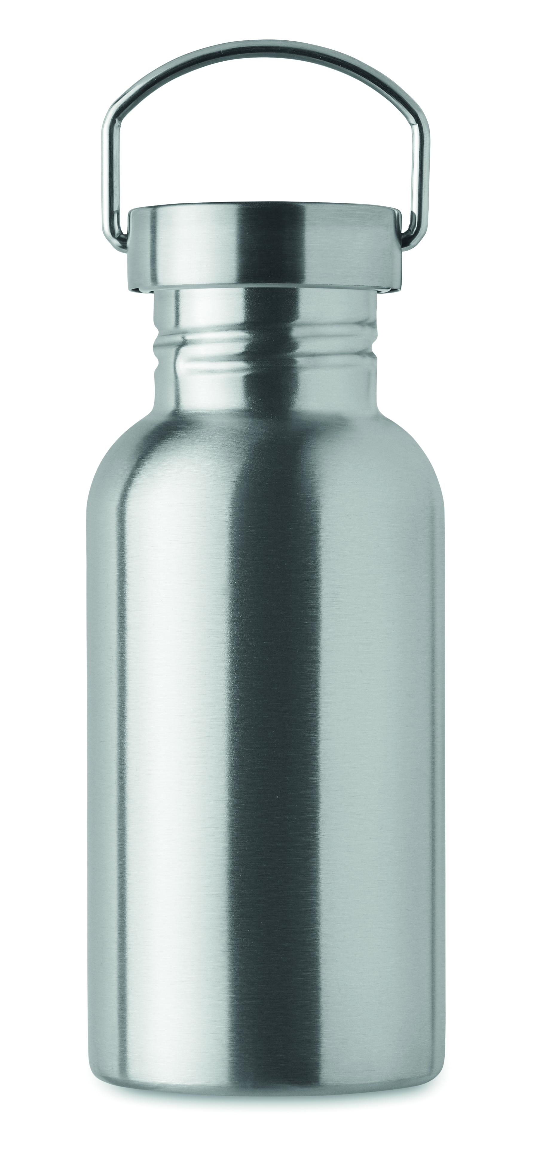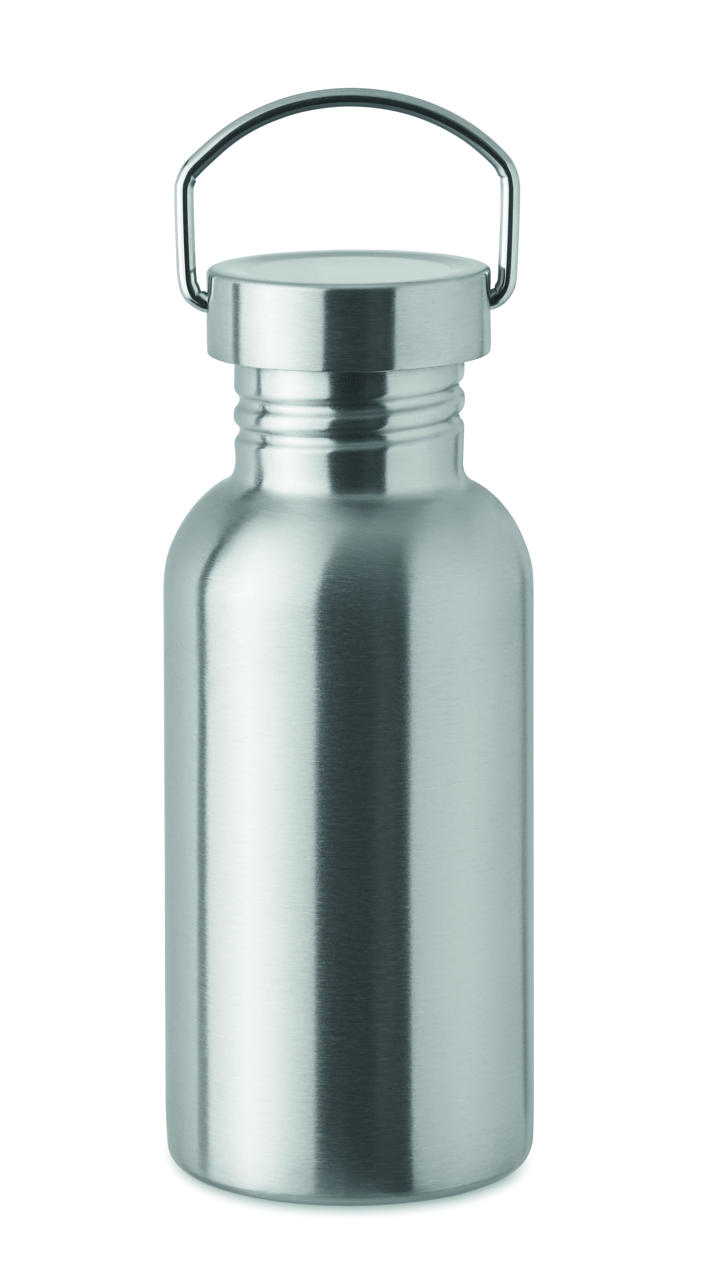 Jednościenna butelka z recyklingowanej stali nierdzewnej (90% stali nierdzewnej z recyklingu i 10% stali nierdzewnej) z pokrywką i uchwytem. Nie przecieka. Pojemność: 500 ml. Ponieważ jest to butelka z pojedynczą ścianką, może dochodzić do wymiany ciepła.