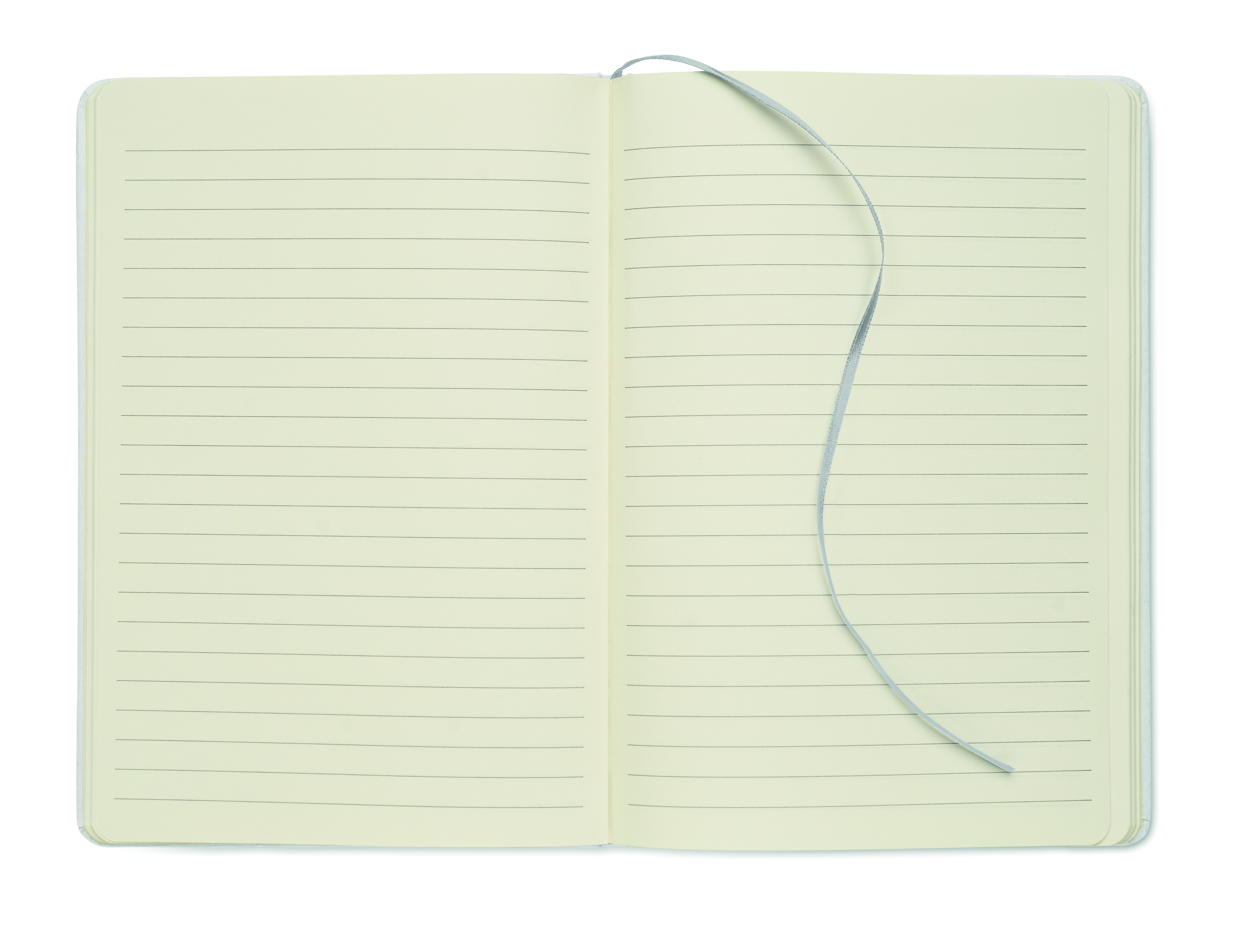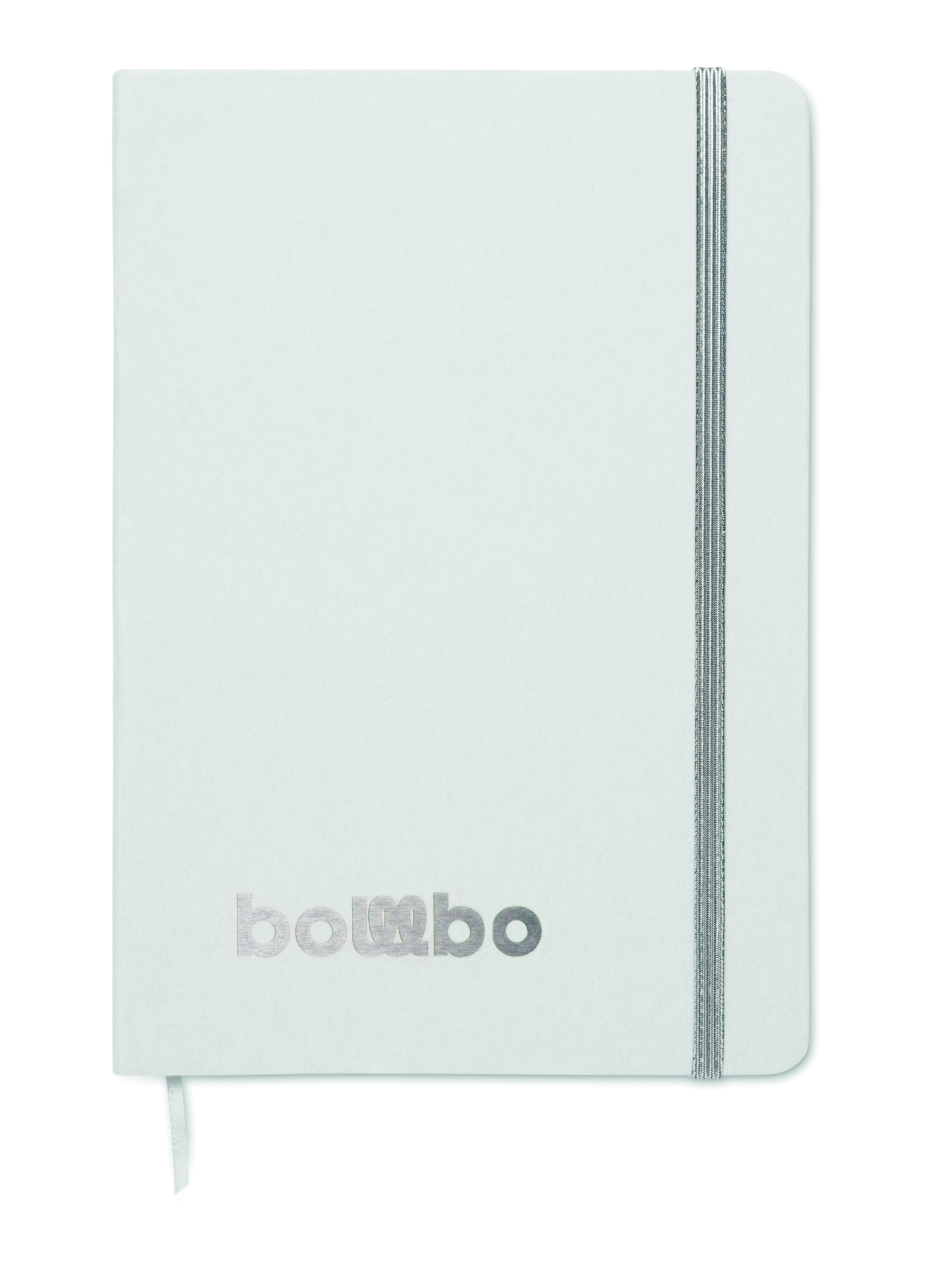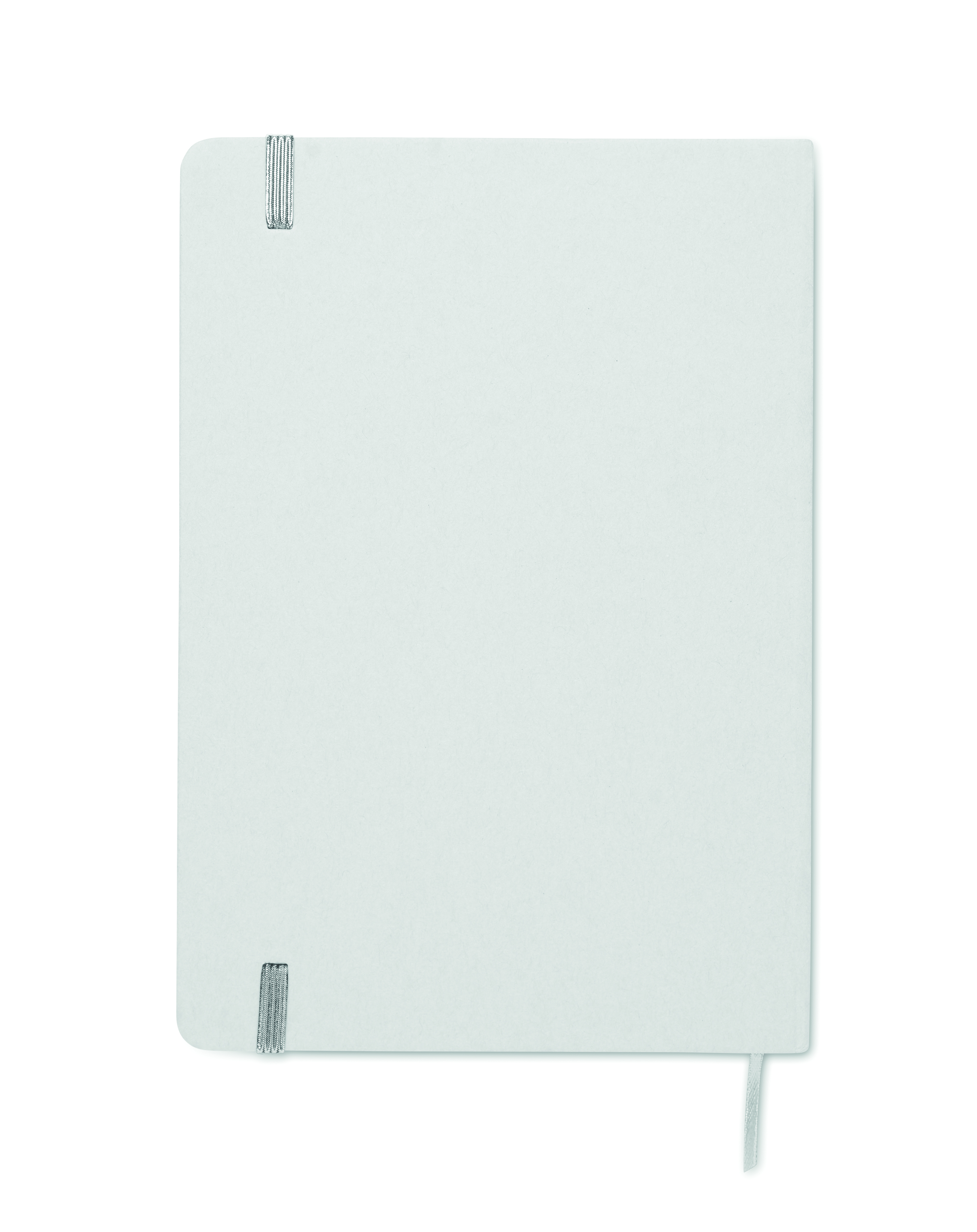 Notatnik A5 z twardą okładką wykonany w 70% z kartonu po mleku i w 30% z papieru z recyklingu. Białą okładka w kartonowej oprawie . 160 stron w linie (80 kartek). Gumka zamykająca, wstążkowa zakładka dopasowana do uwidocznionego koloru. Po grawerowaniu laserowym kolor jest widoczny.