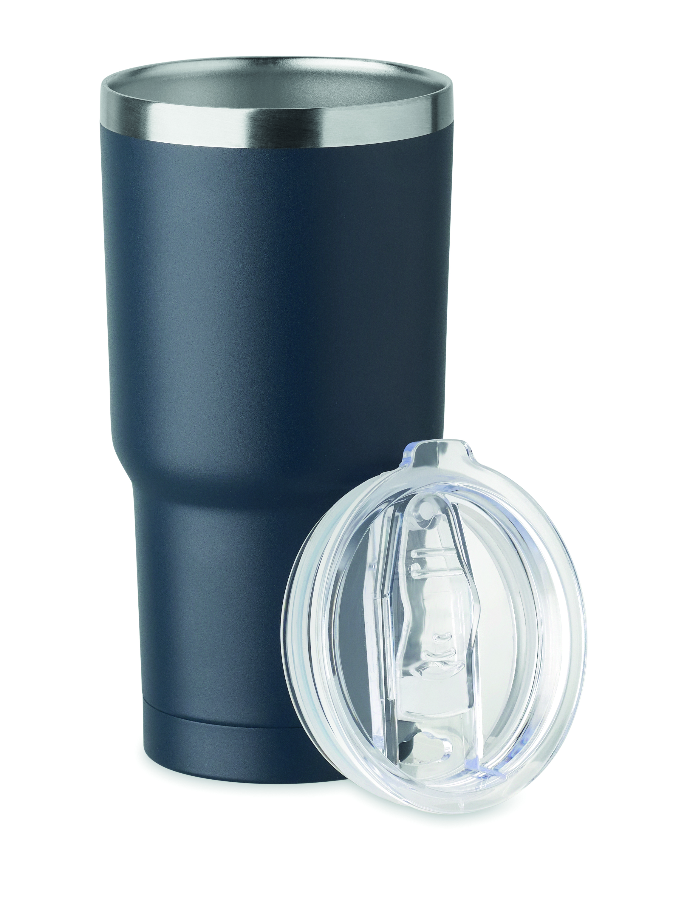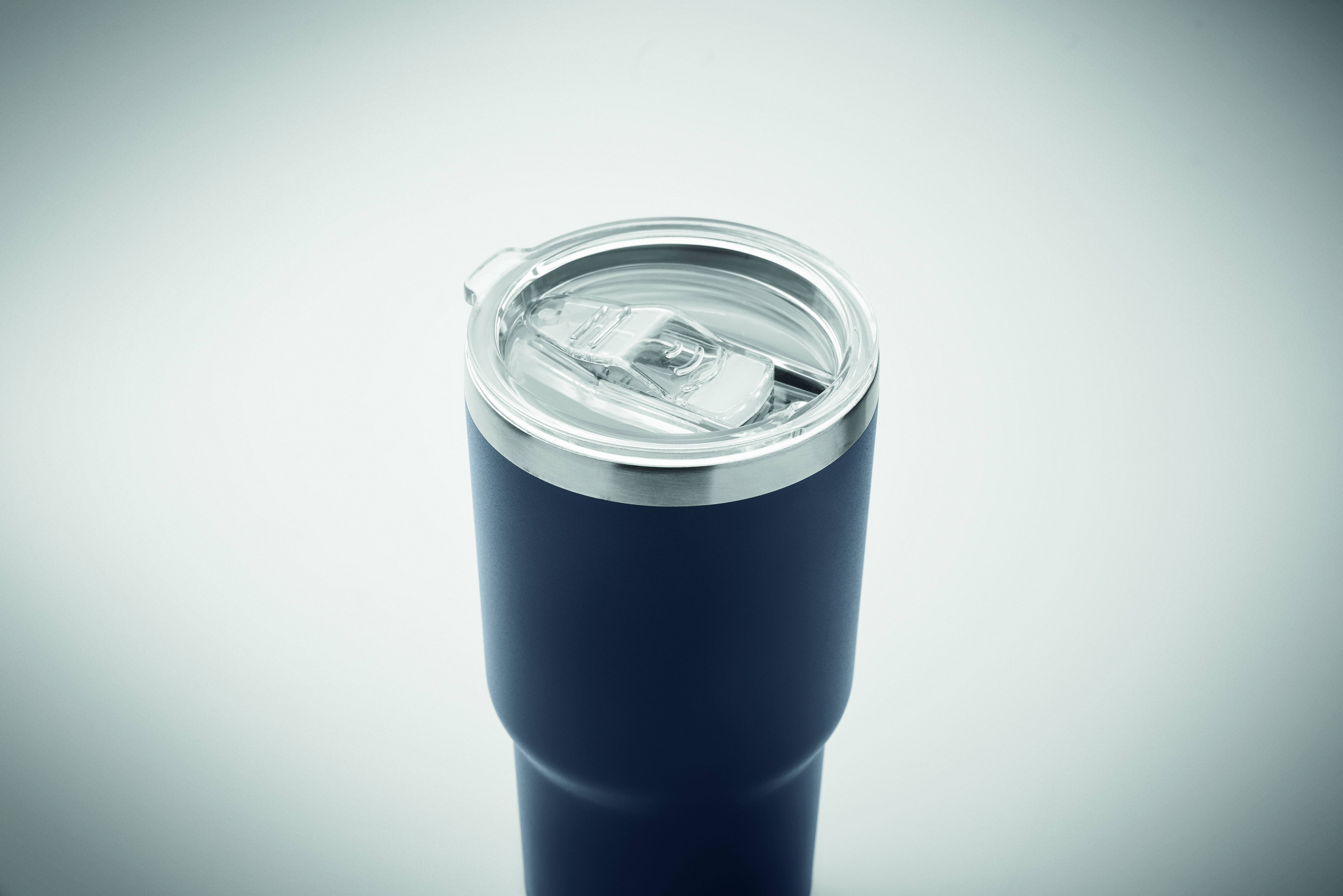 Kubek z podwójną ścianką ze stali nierdzewnej z recyklingu (90% stali nierdzewnej z recyklingu i 10% ze stali nierdzewnej). Pokrywka z przesuwanym otworem. Nie przecieka. Pojemność 500 ml.