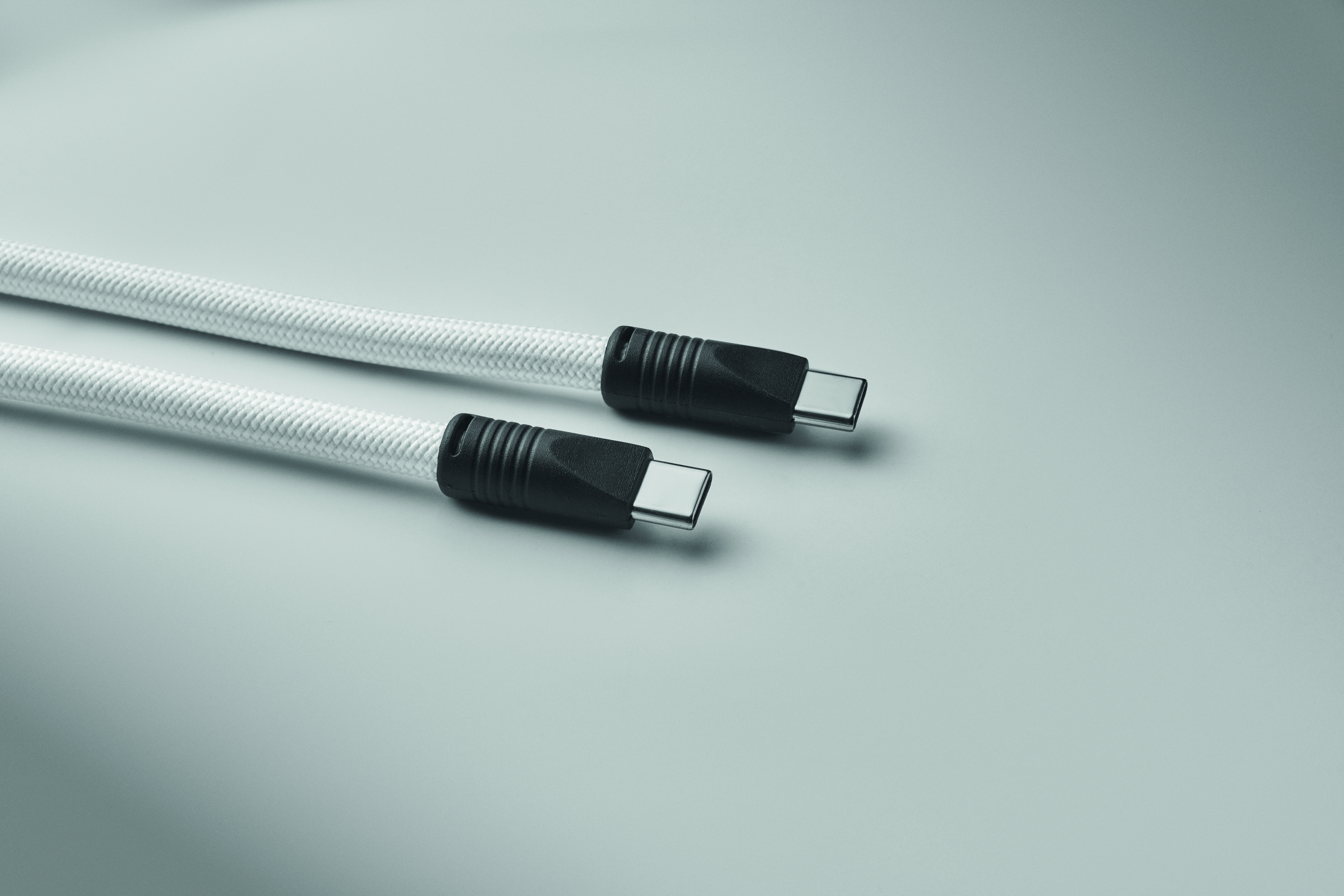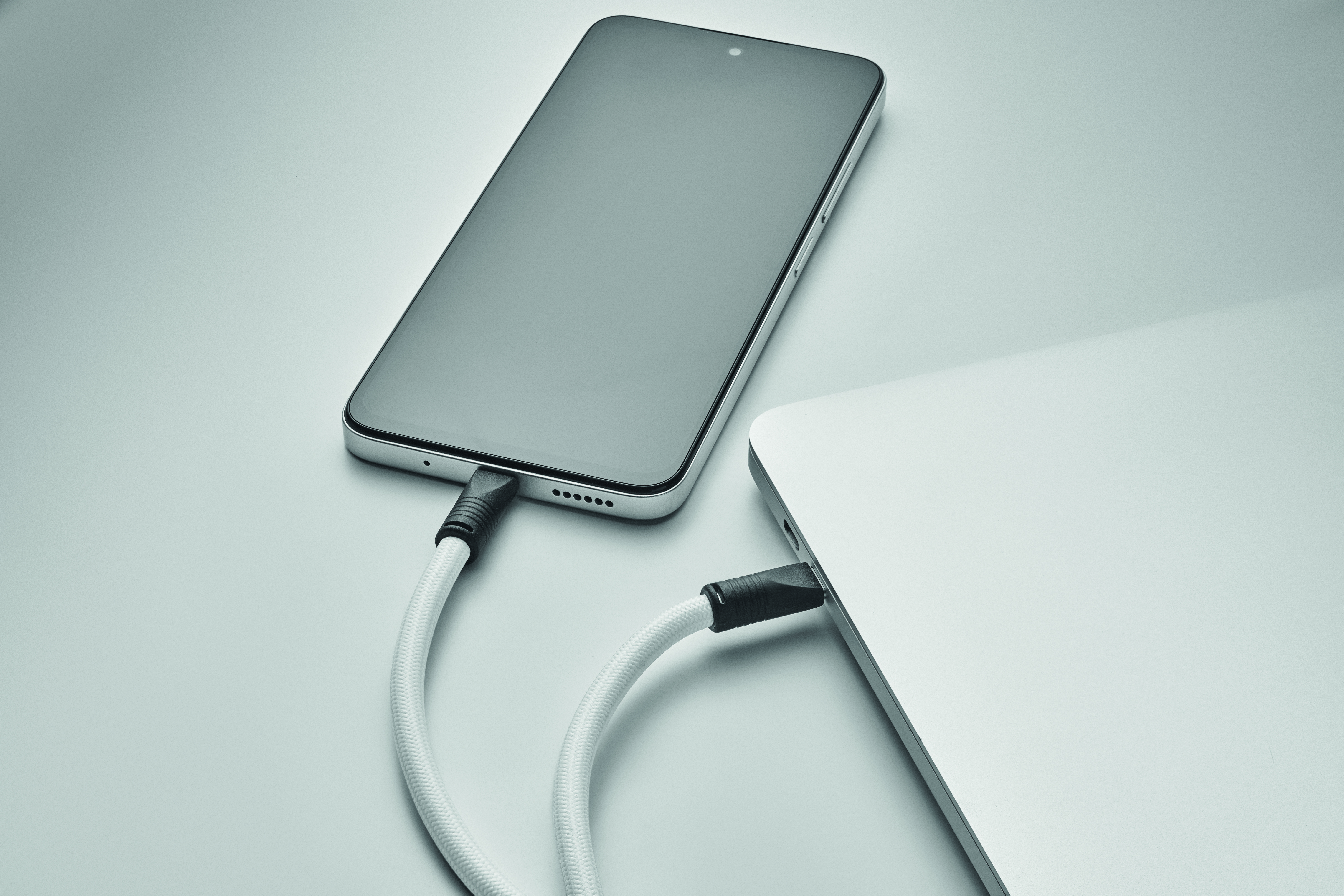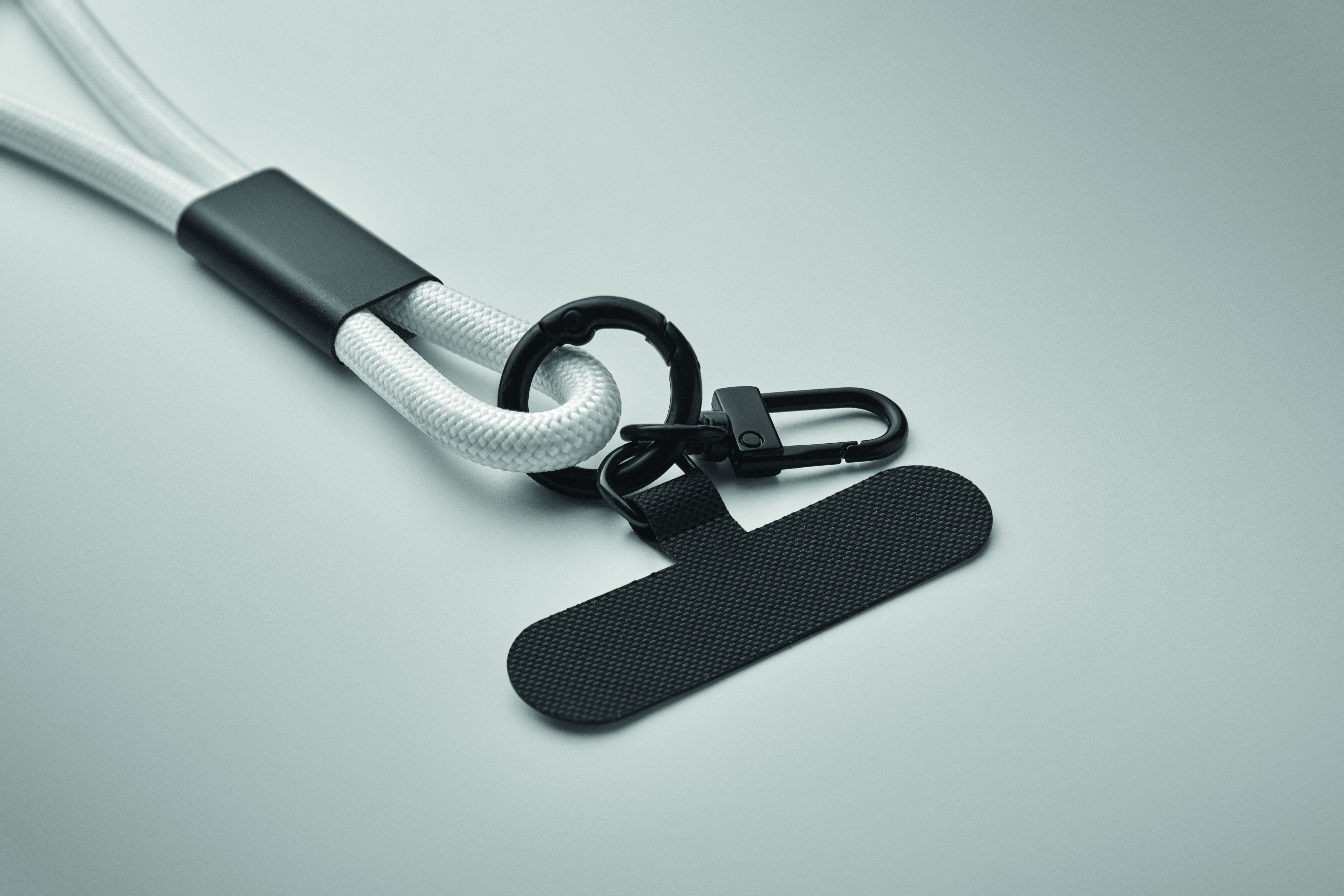 Smycz do telefonu z kablem 60W do ładowania i przesyłania danych typu C do typu C Z RPET z dodatkowym klipsem na klucze.