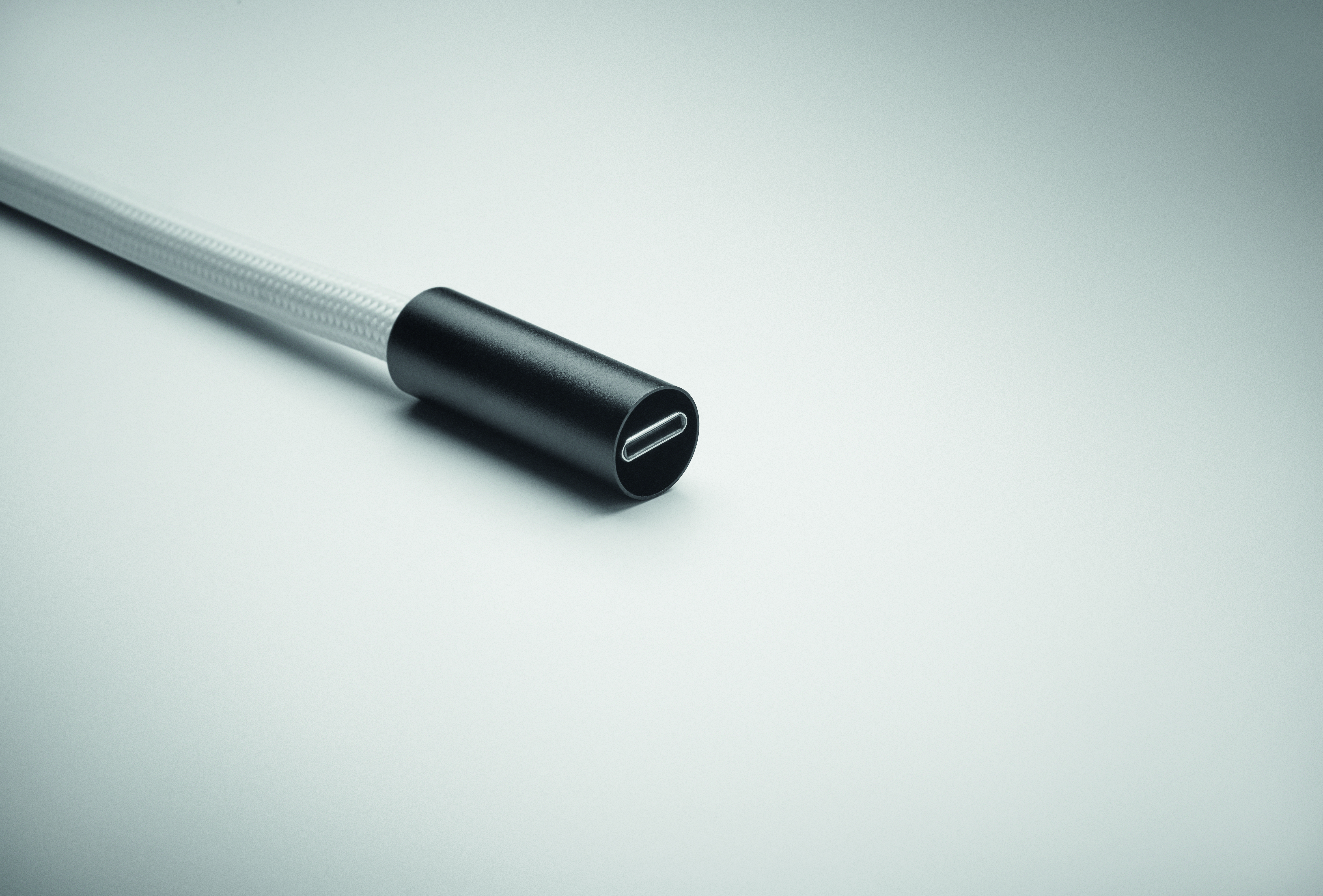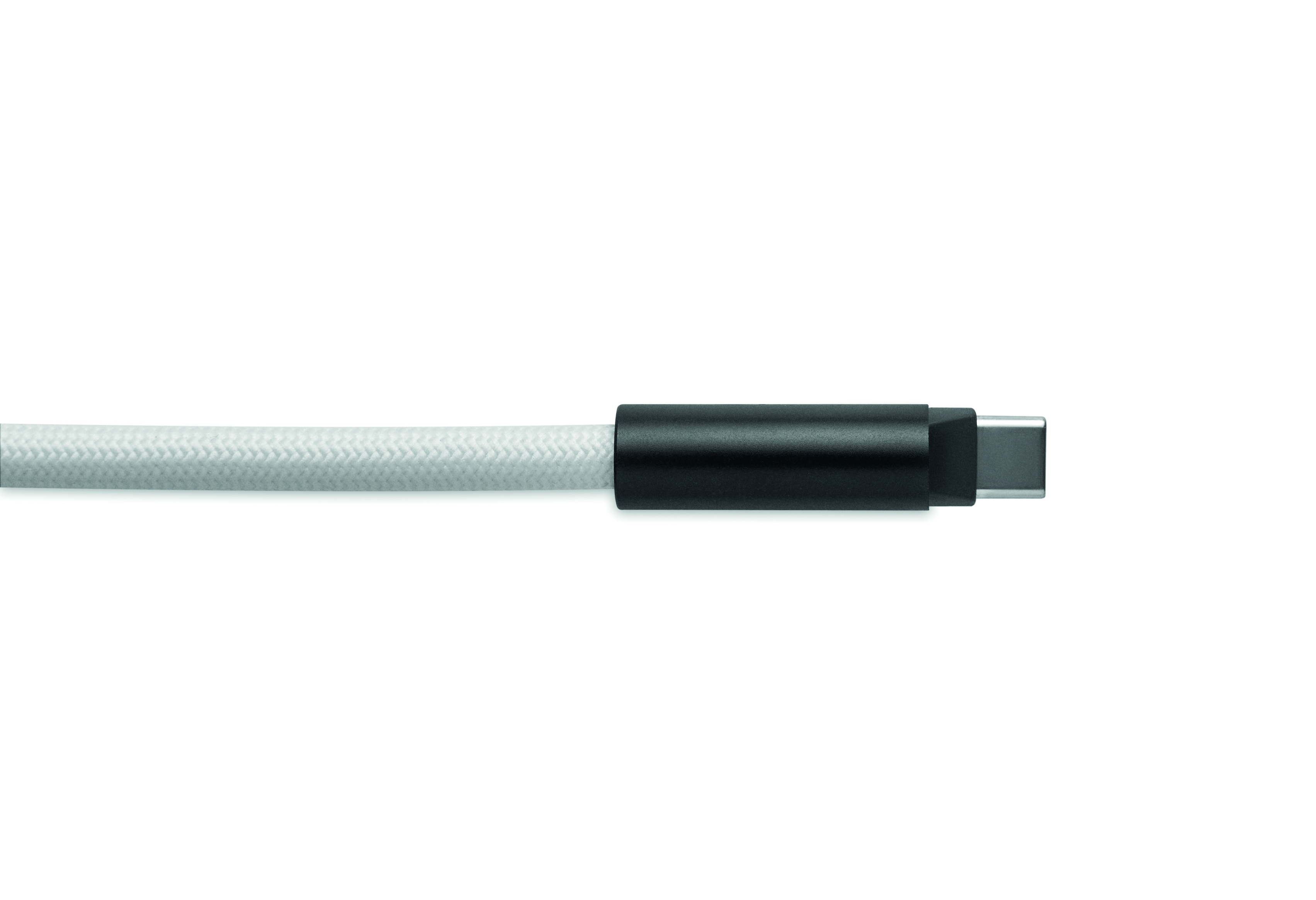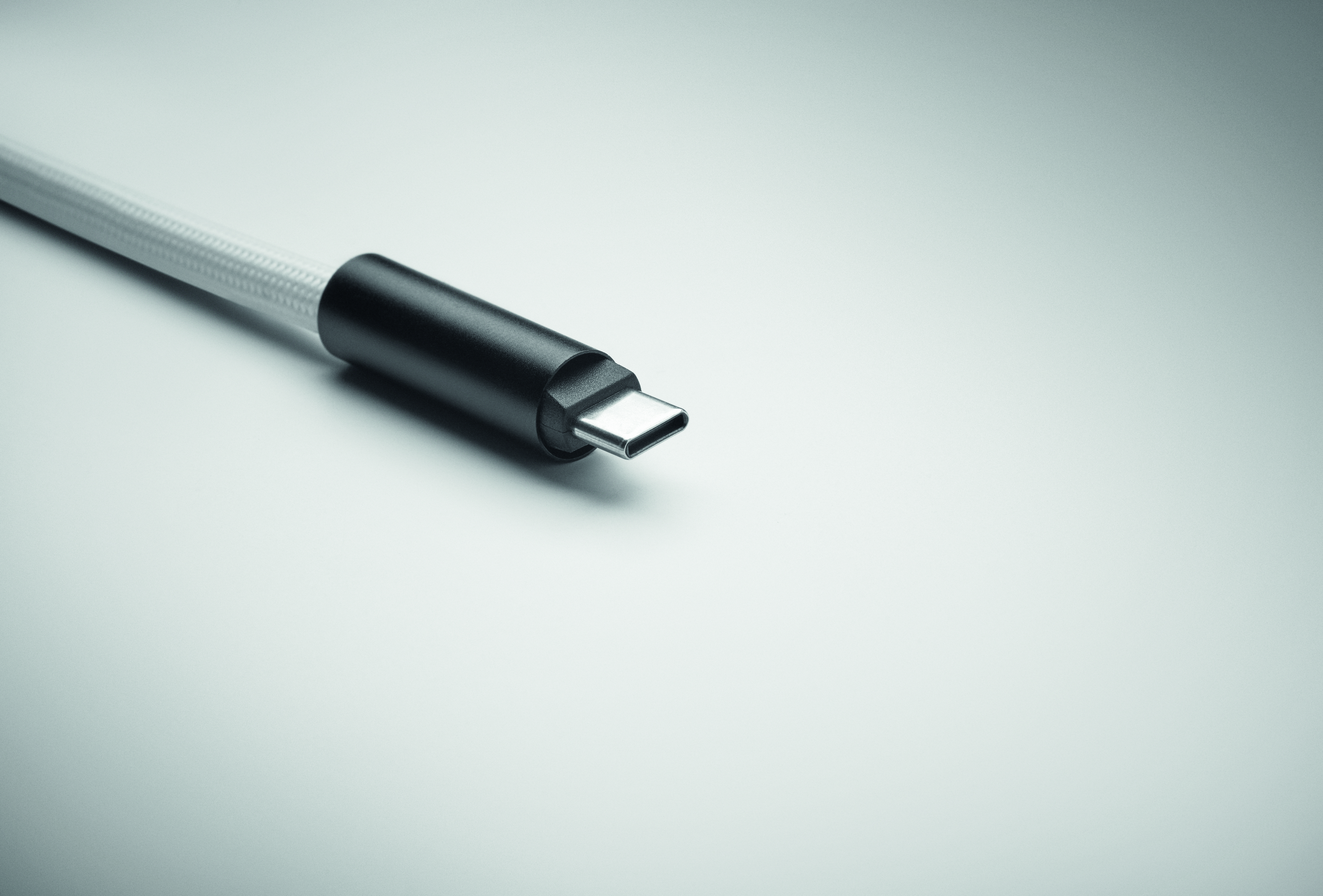 Smycz do telefonu z kablem 60W do ładowania i przesyłania danych typu C do typu C Z RPET z dodatkowym klipsem na klucze.