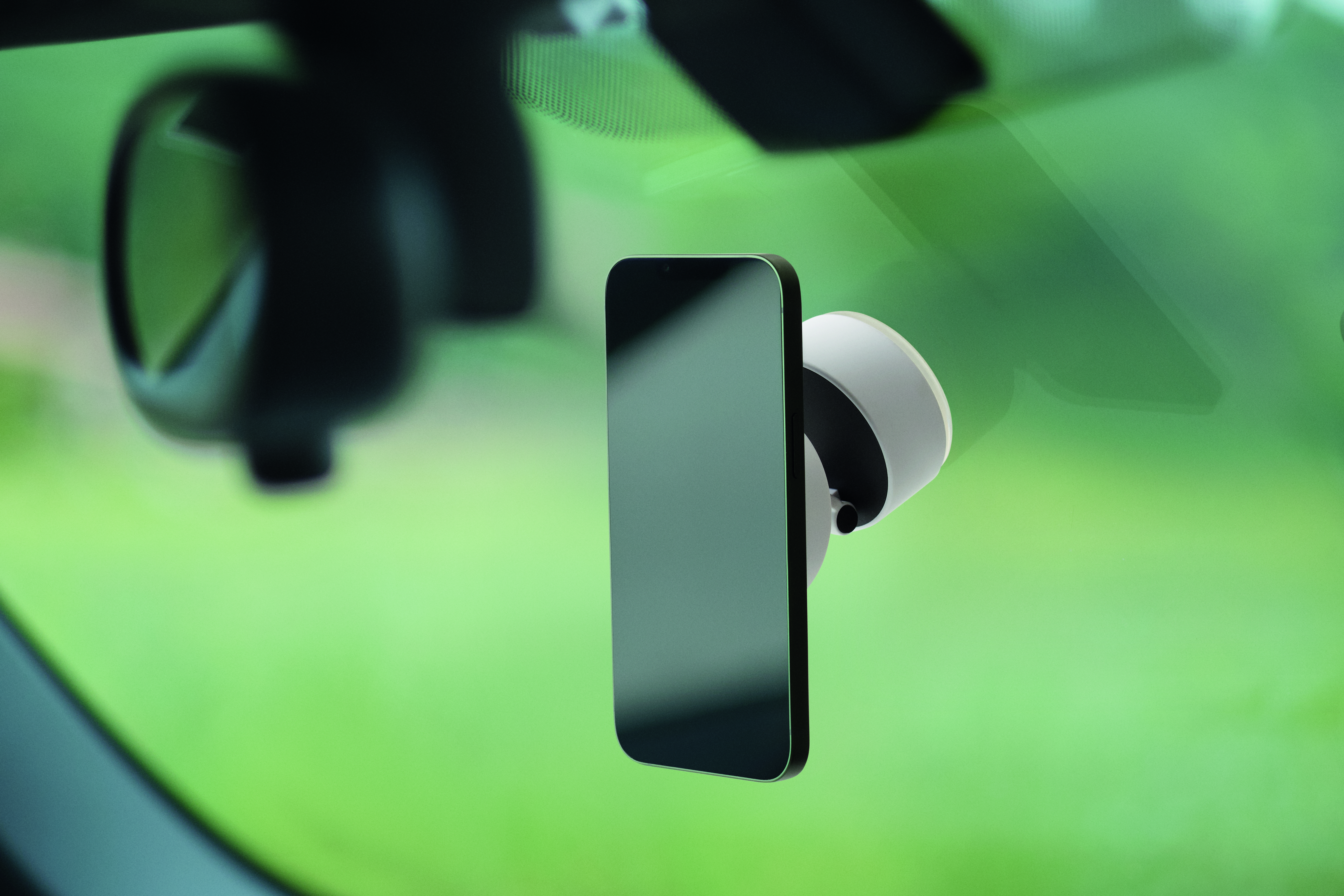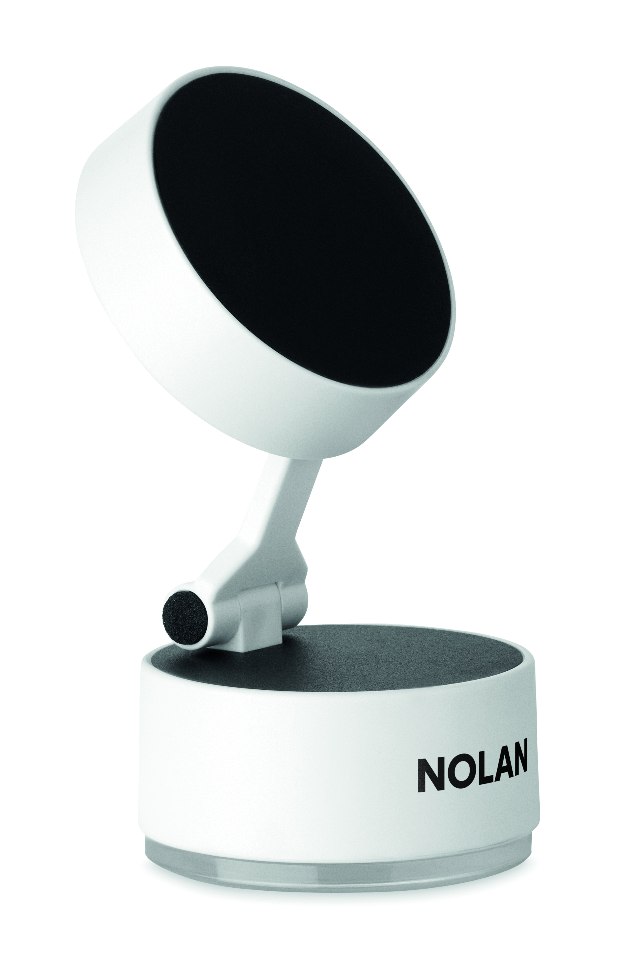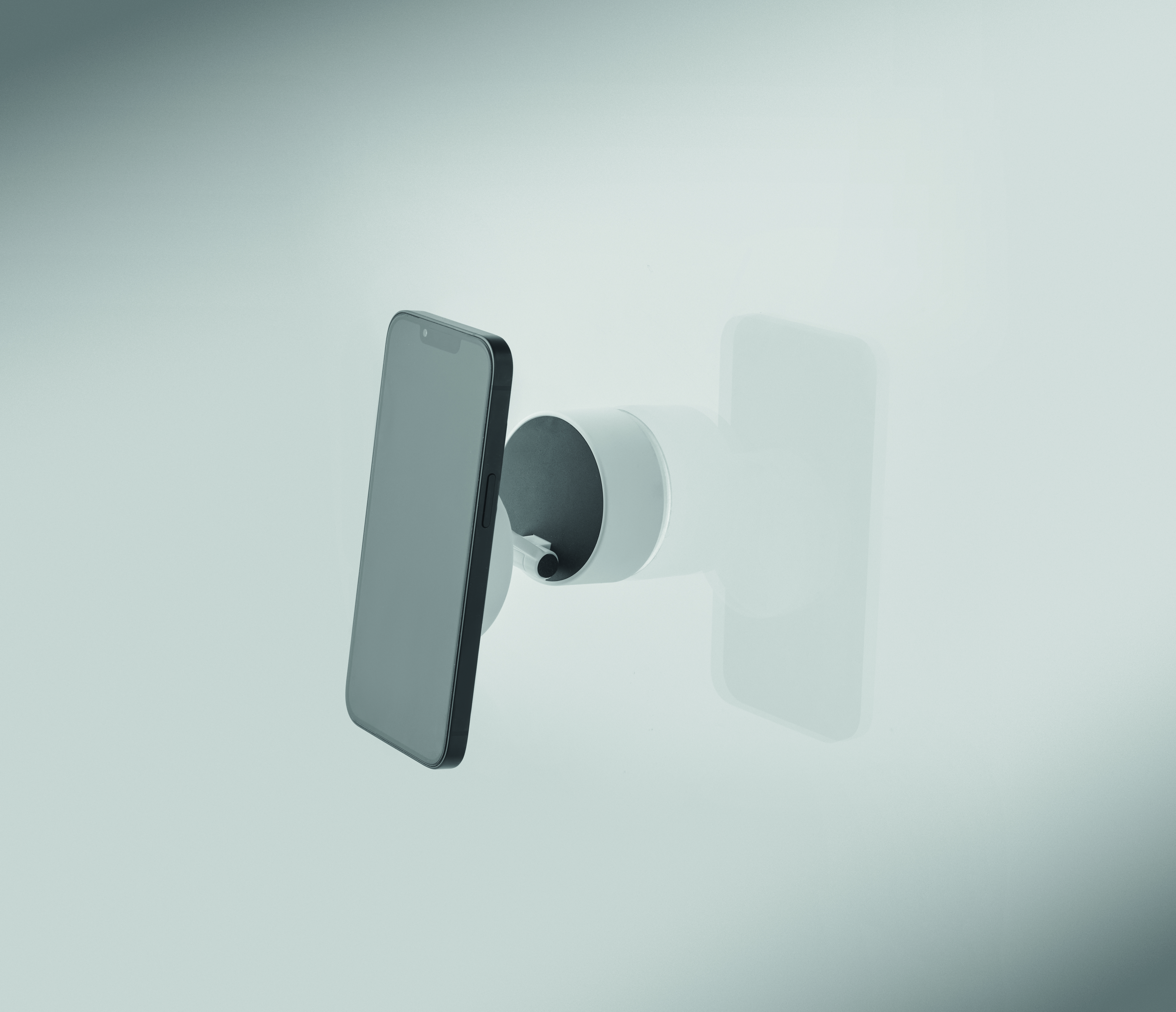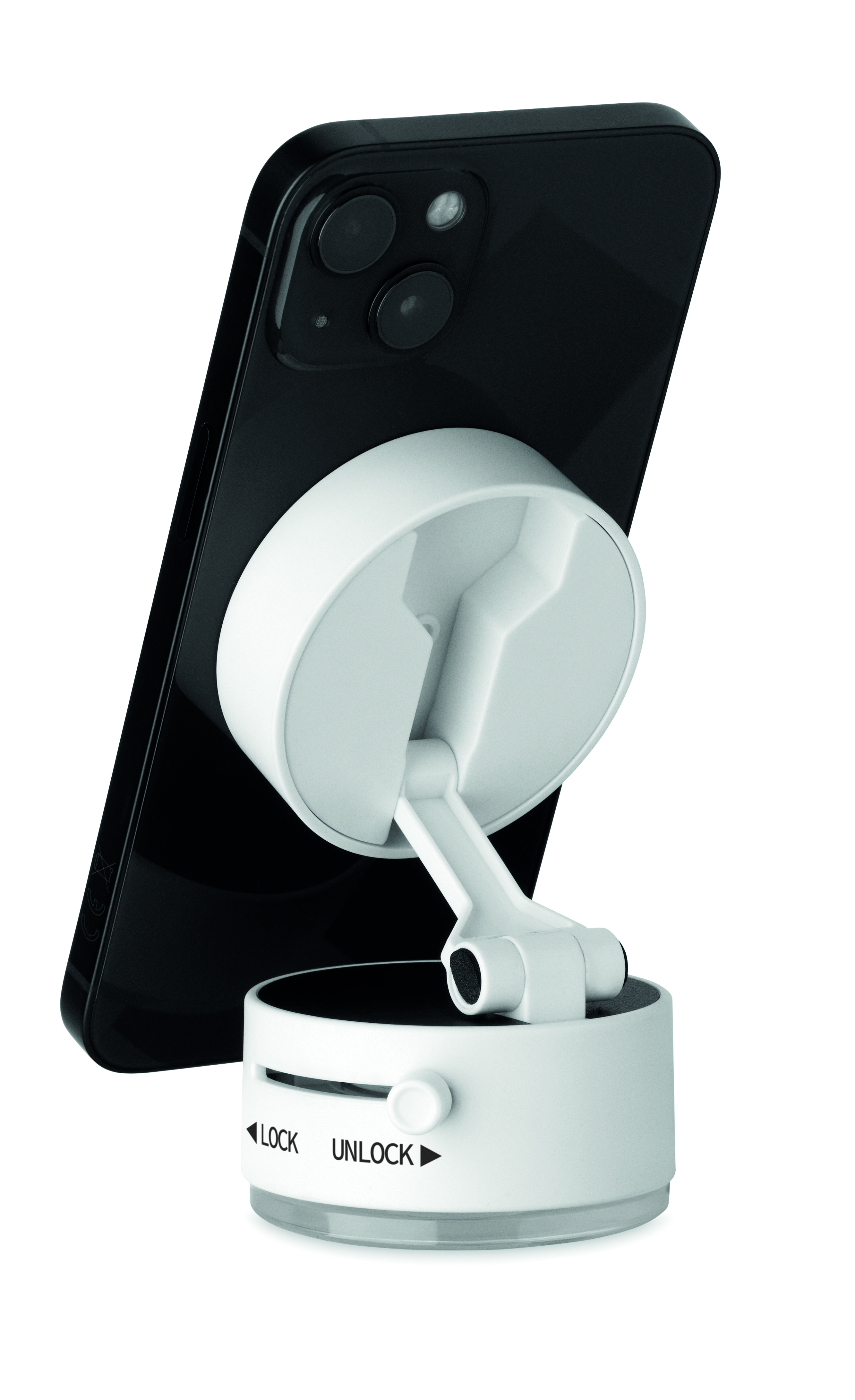 Magnetyczny uchwyt na telefon z ABS. Mocowanie przyssawkowe. Kompatybilny z iPhone® 12 i nowszymi. Zawiera dodatkowy magnetyczny metalowy pierścień do obsługi ładowania innych niemagnetycznych telefonów z możliwością ładowania bezprzewodowego.