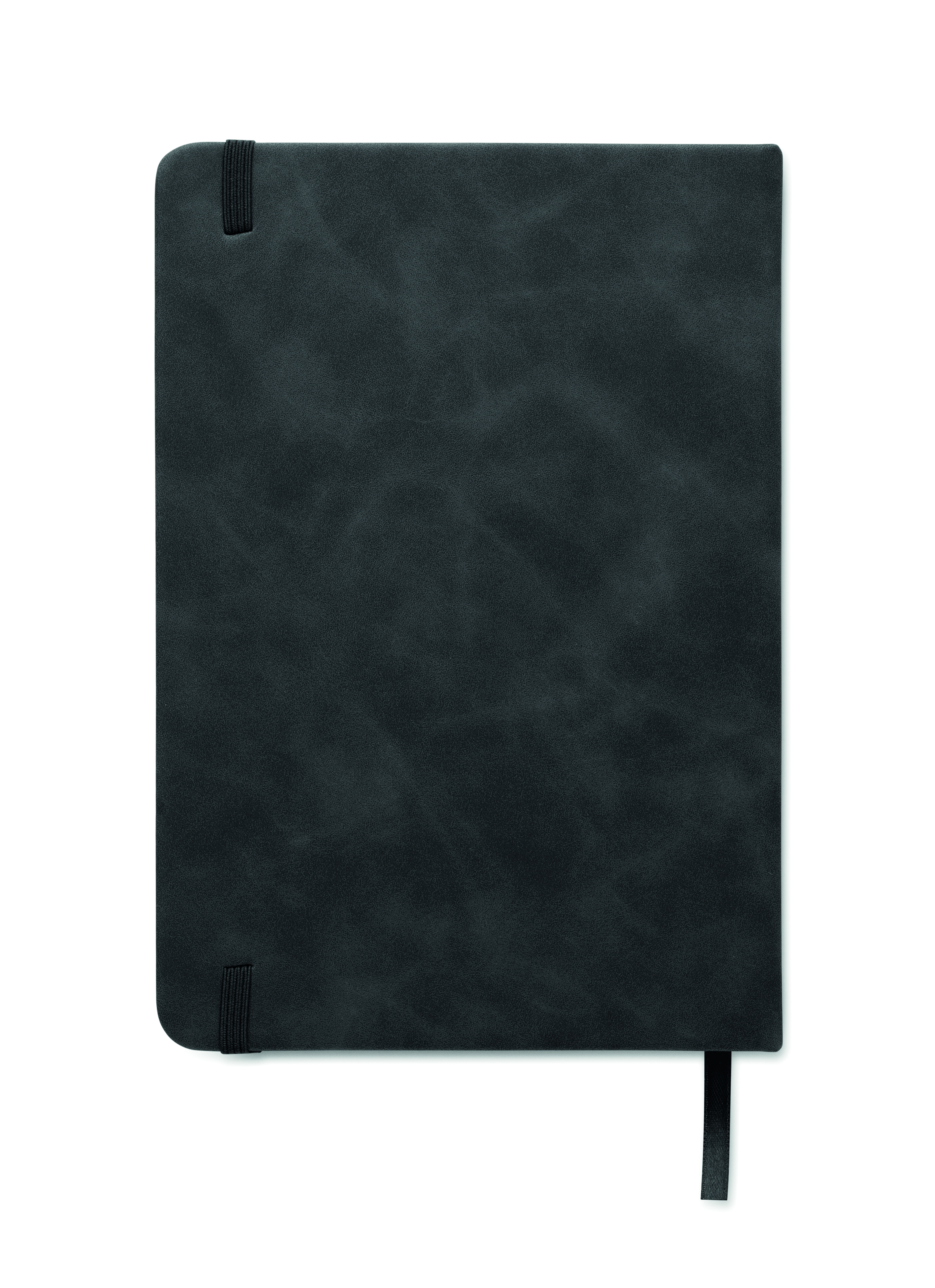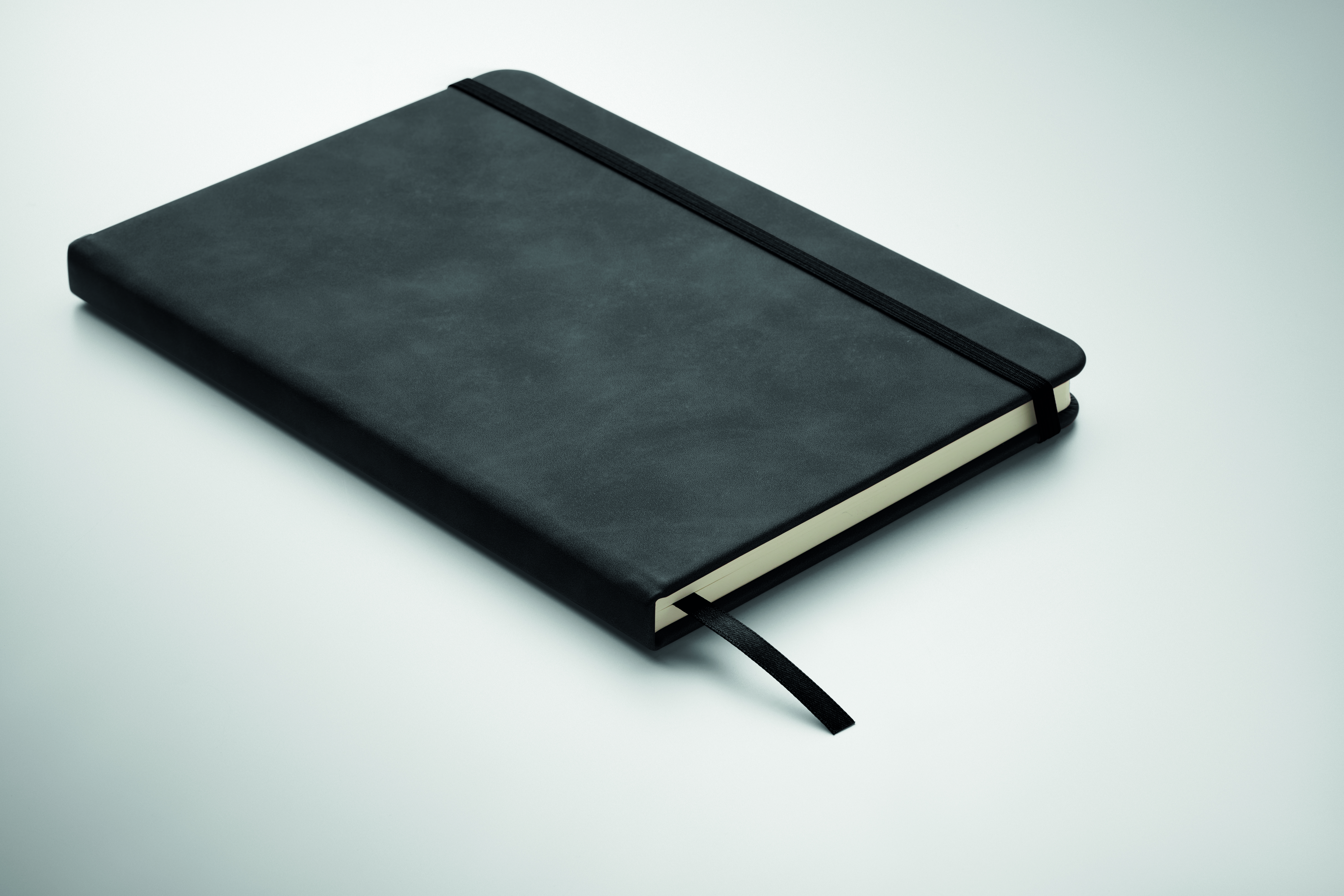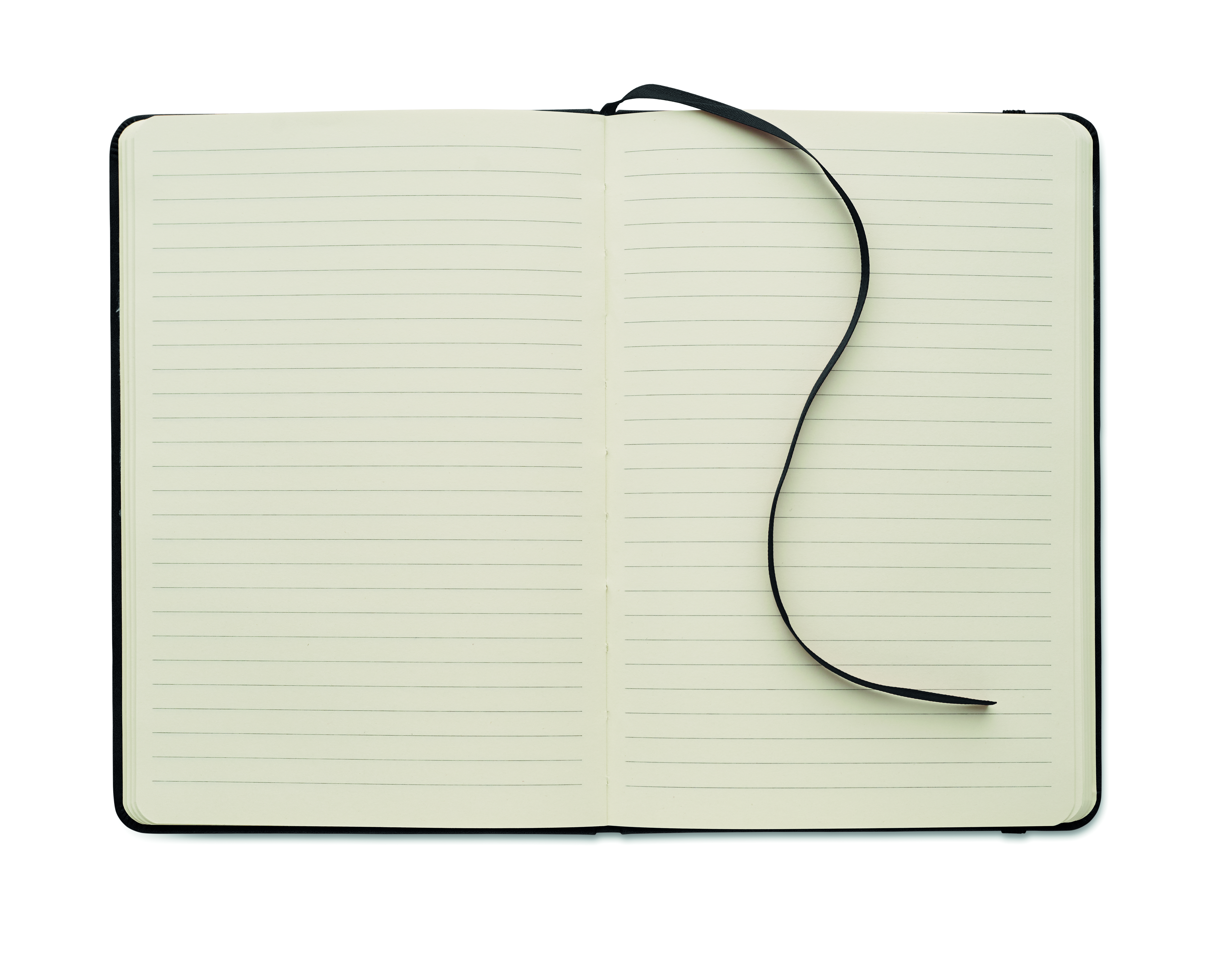 Notes A5 w twardej okładce PU pochodzącej w 40% z recyklingu i w 60% z PU. 160 stron w linie, papier makulaturowy 70 g/m² (80 arkuszy). Pasująca kolorystycznie tasiemka poliestrowa do oznaczania stron.