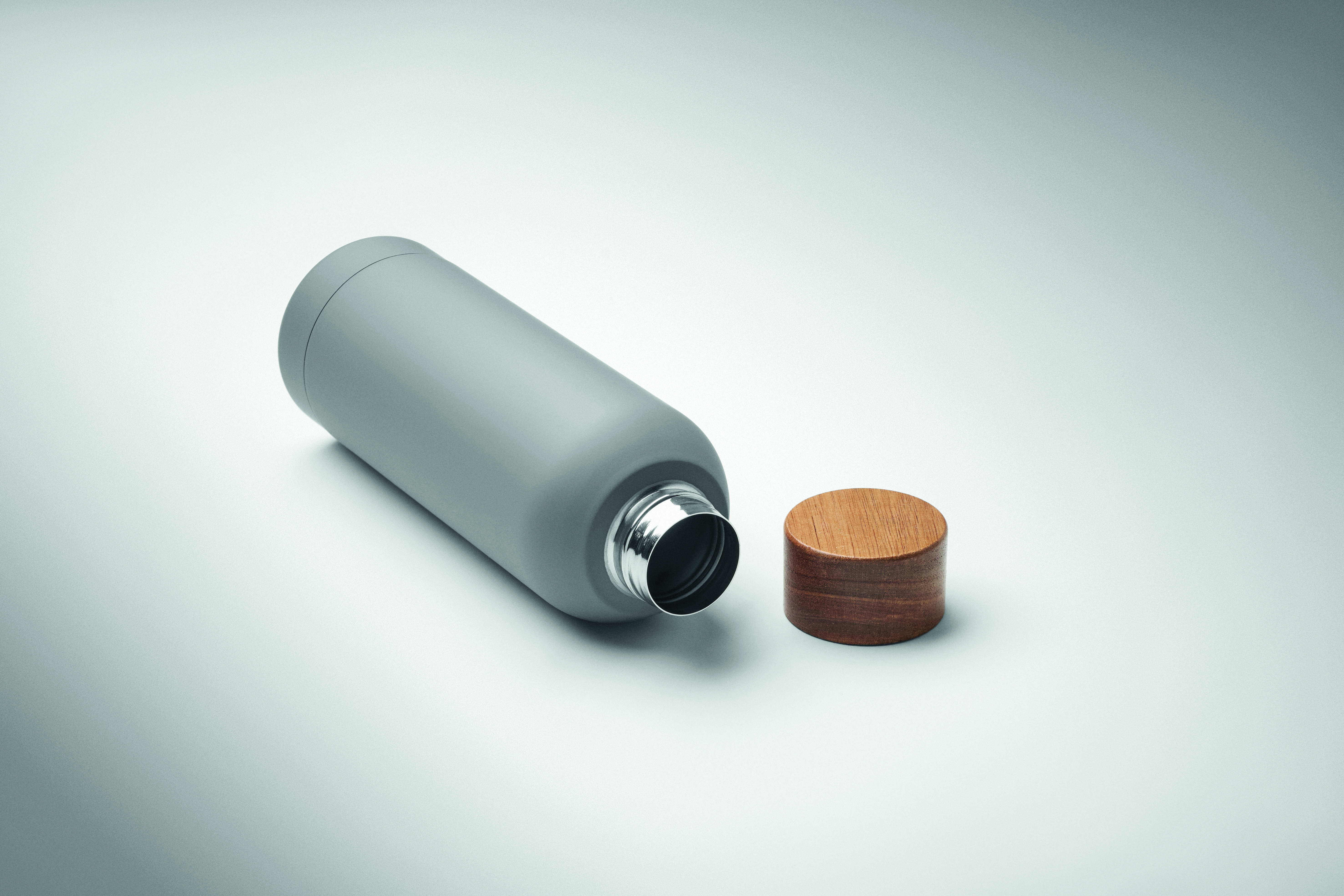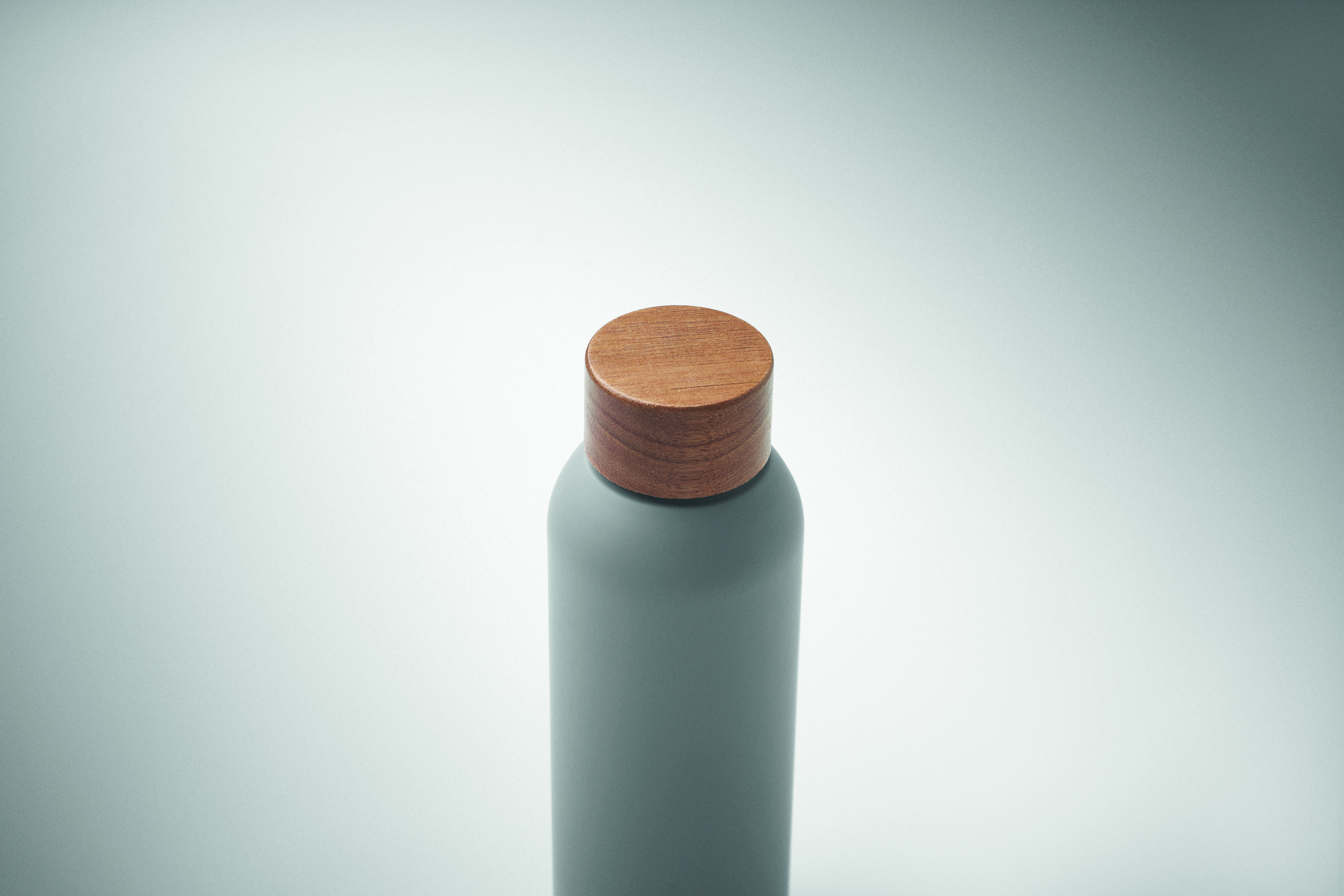 Jednościenna butelka wykonana w 90% ze stali nierdzewnej pochodzącej z recyklingu i w 10% ze stali nierdzewnej z gumowym wykończeniem i pokrywką z drewna akacjowego. Nie przecieka. Pojemność: 700 ml. Ponieważ jest to butelka jednościenna, produkt może się nagrzewać.