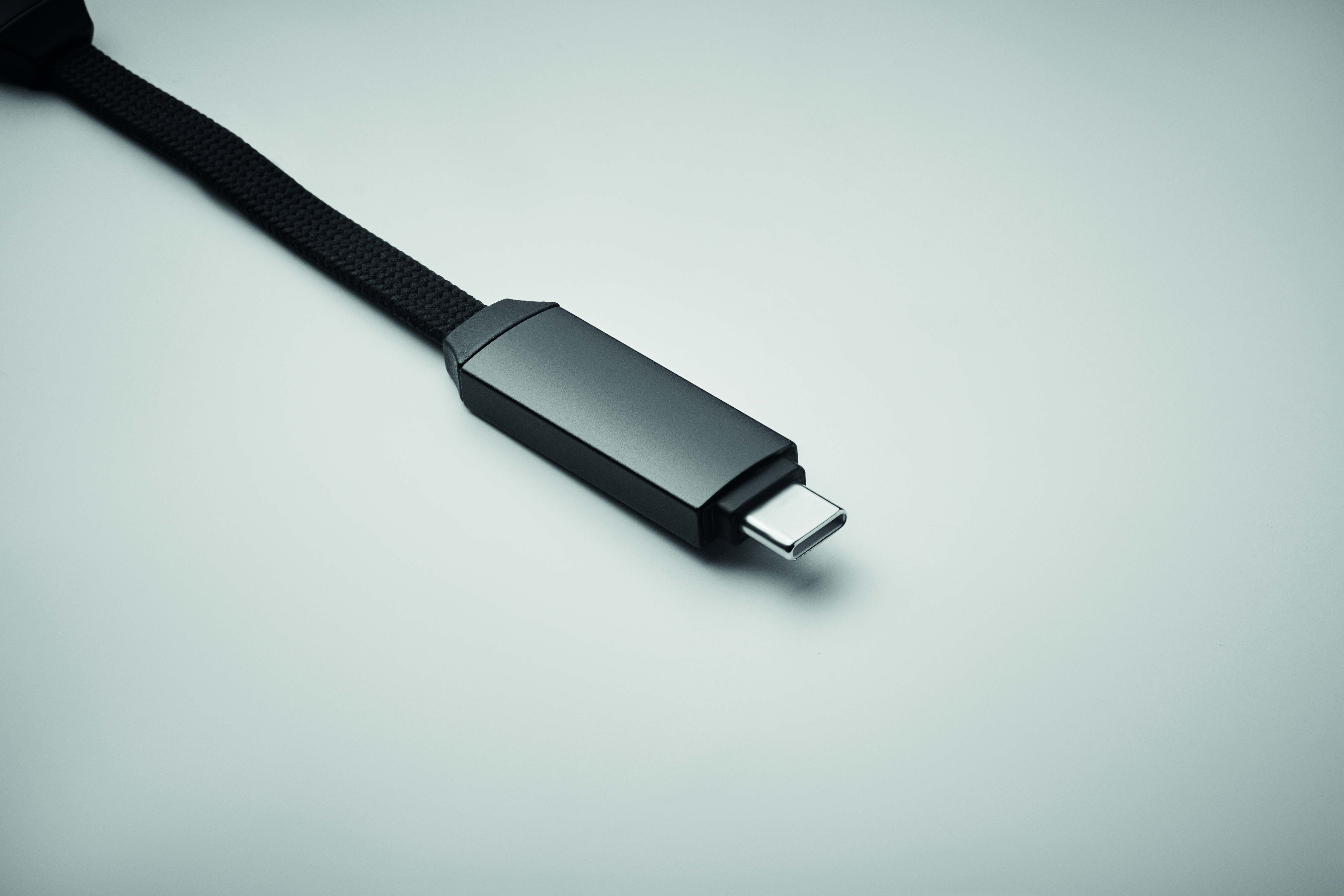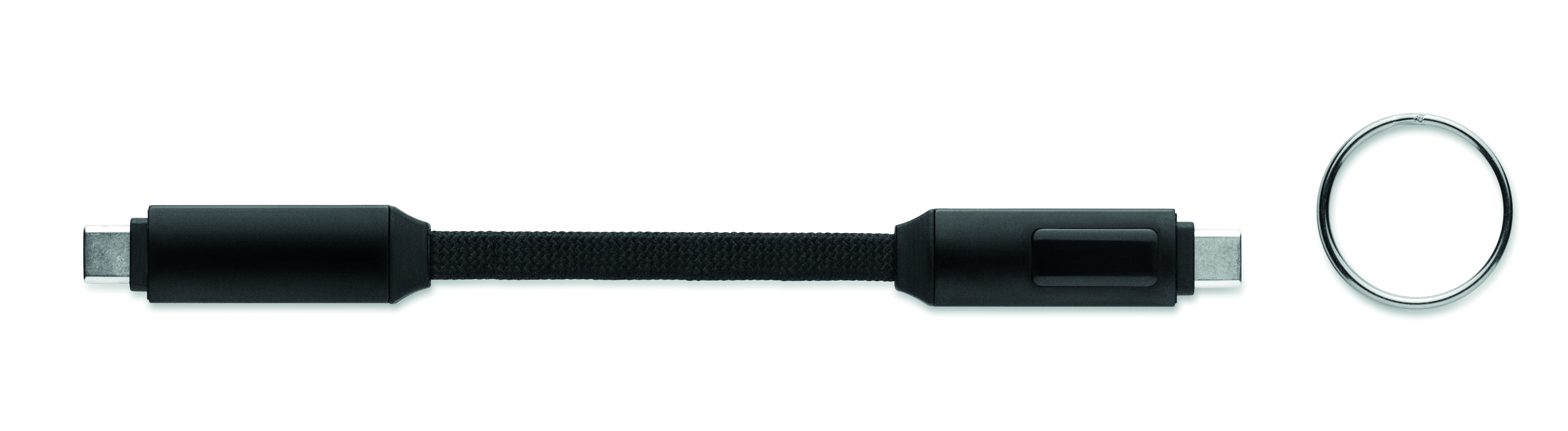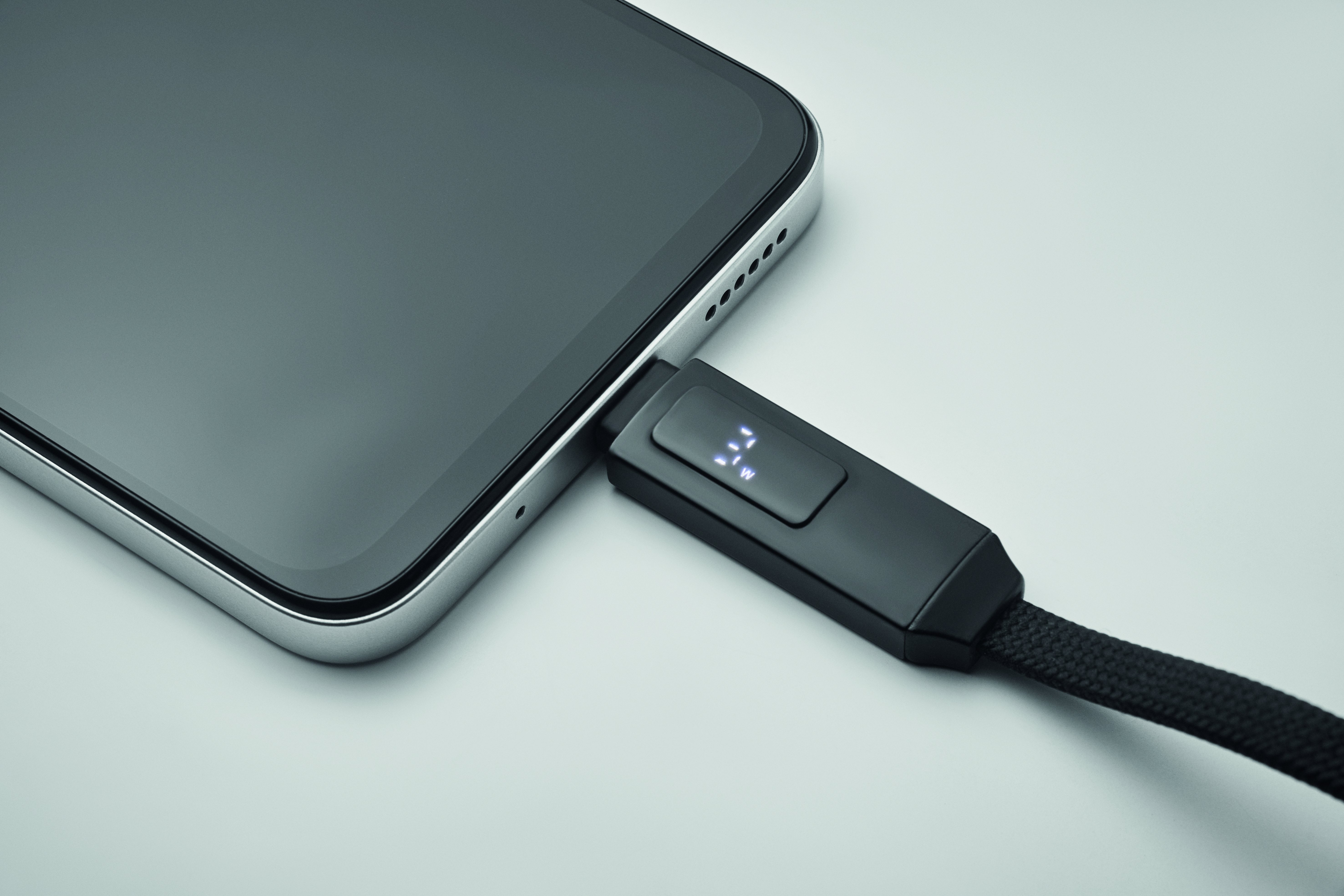Brelok z kablem do ładowania i transmisji danych o mocy 60 W. Złącze typu C do typu C z ekranem LED z funkcją wyświetlania mocy ładowania. Zapięcie na magnes.