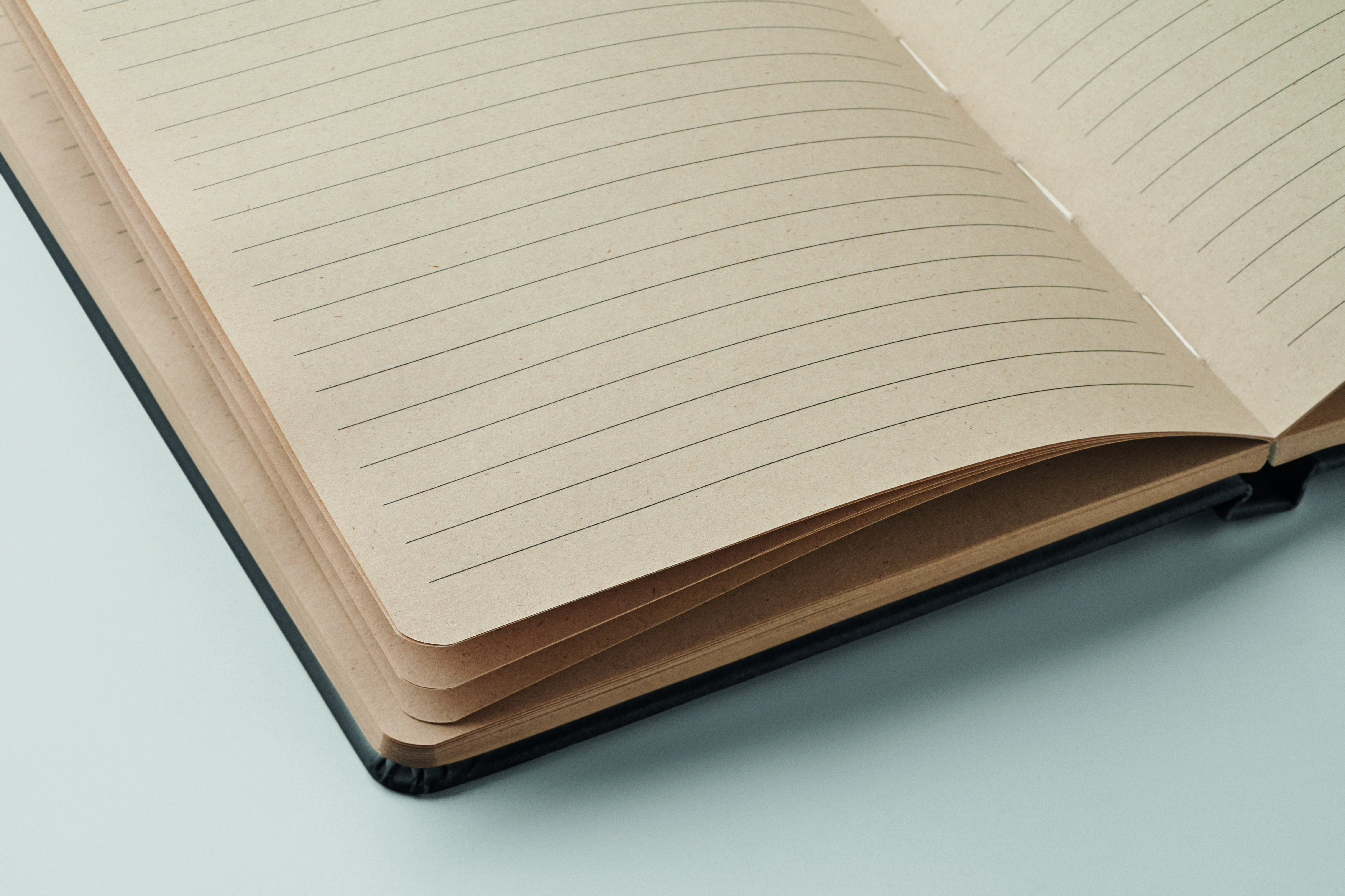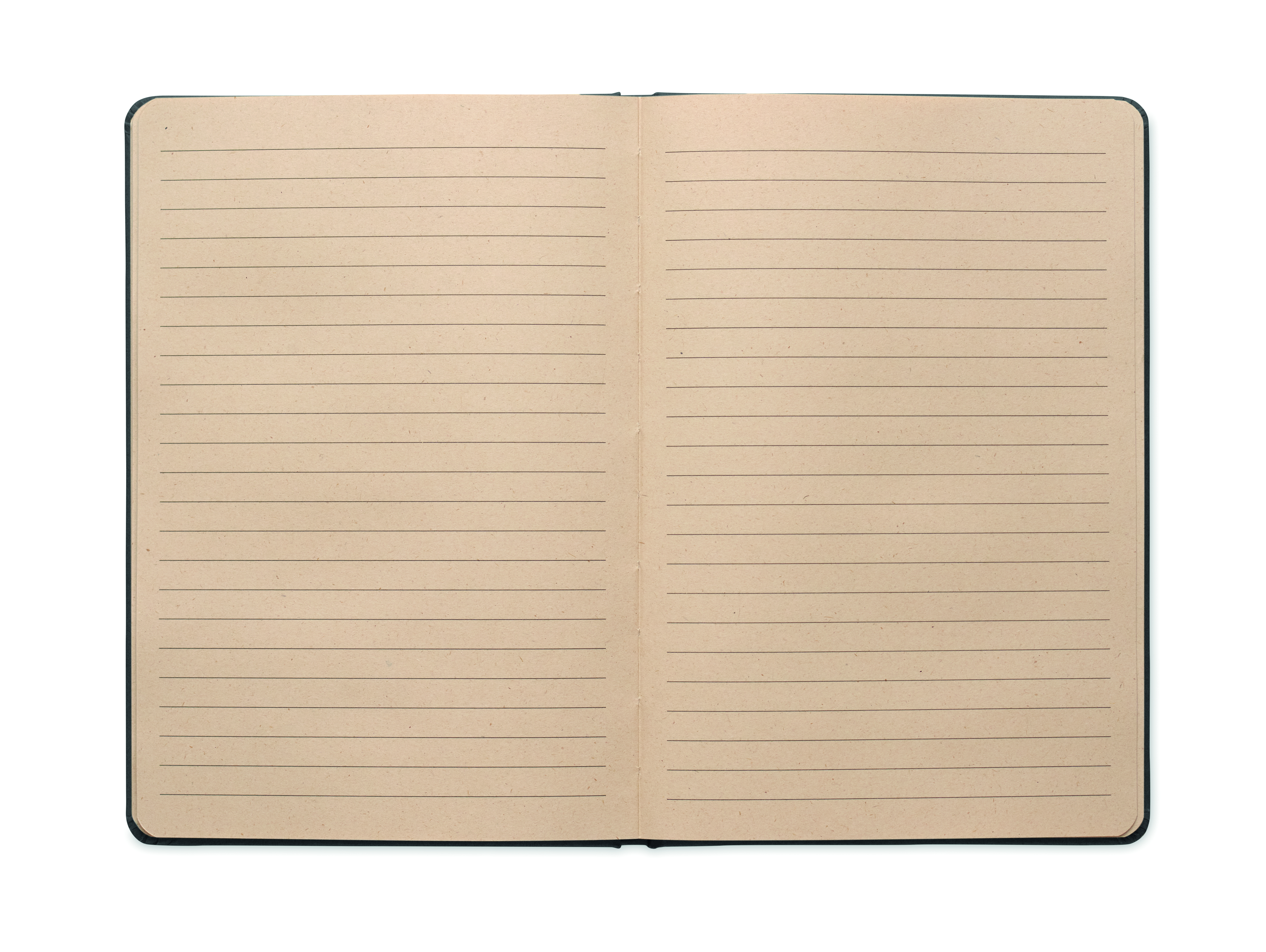 Notatnik A5 z twardą okładką i 160 stronami w linie (80 kartek) z trzciny cukrowej PLA (65% włókna trzciny cukrowej/35% papieru).