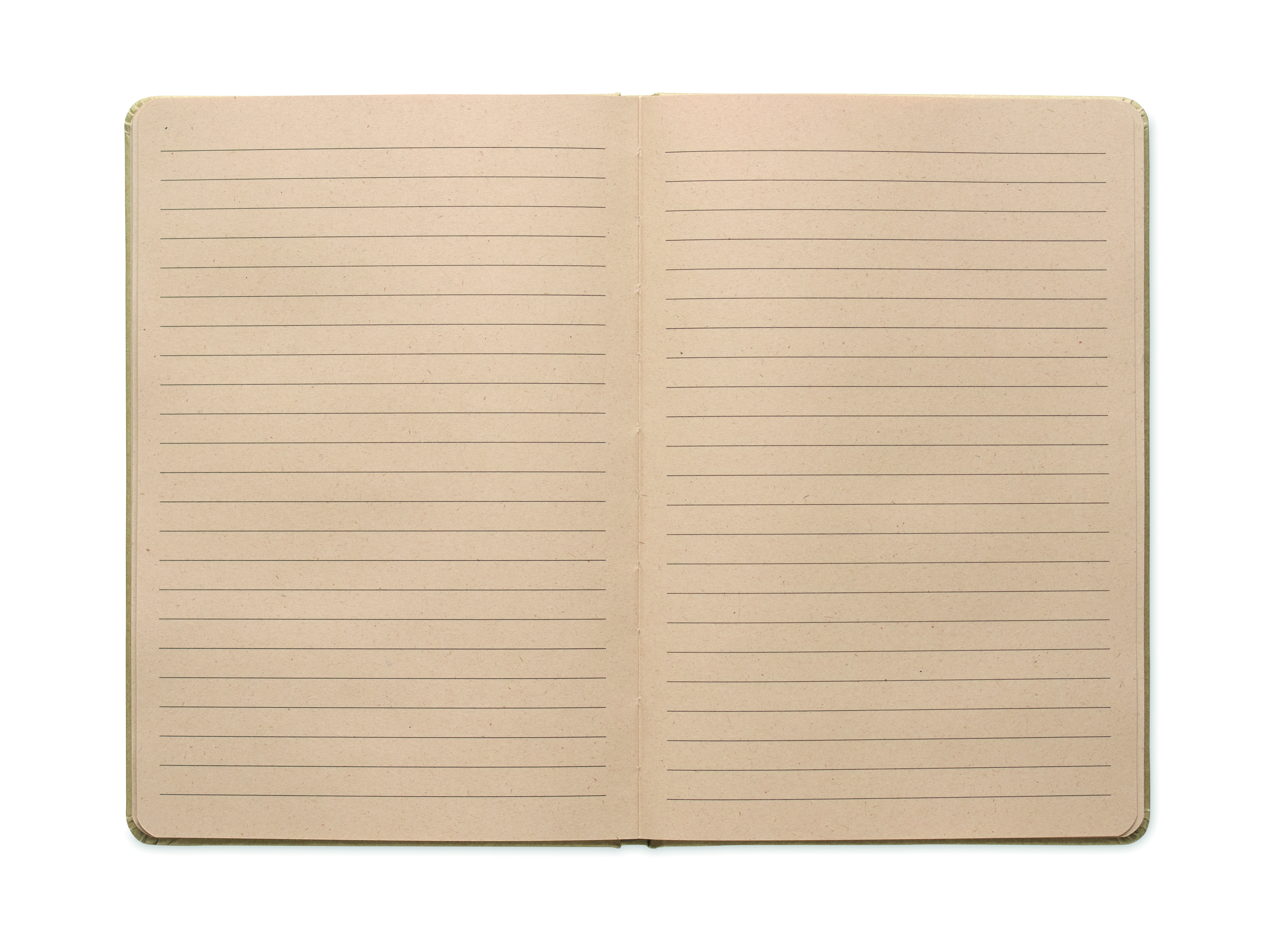 Notatnik A5 z twardą okładką i 160 stronami w linie (80 kartek) z trzciny cukrowej PLA (65% włókna trzciny cukrowej/35% papieru).