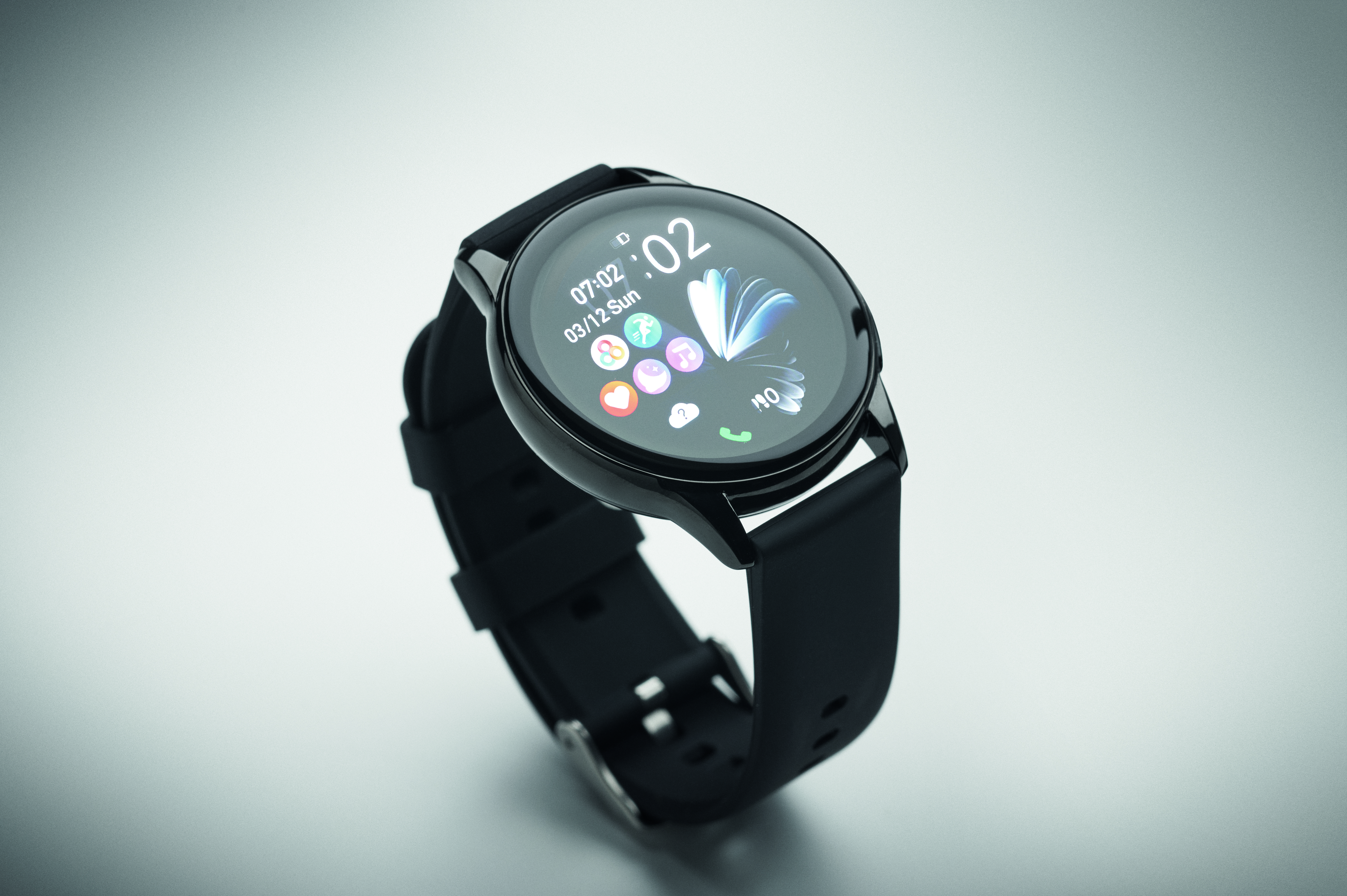 Wodoodporny bezprzewodowy smartwatch IP67 ze stopu cynku z silikonowym paskiem. 1.32-calowy ekran dotykowy AMOLED. Akumulator Li-Pol 300 mAh. Wymaga bezpłatnej aplikacji (FitCloudPro dostępnej w systemach iOS i Android).
