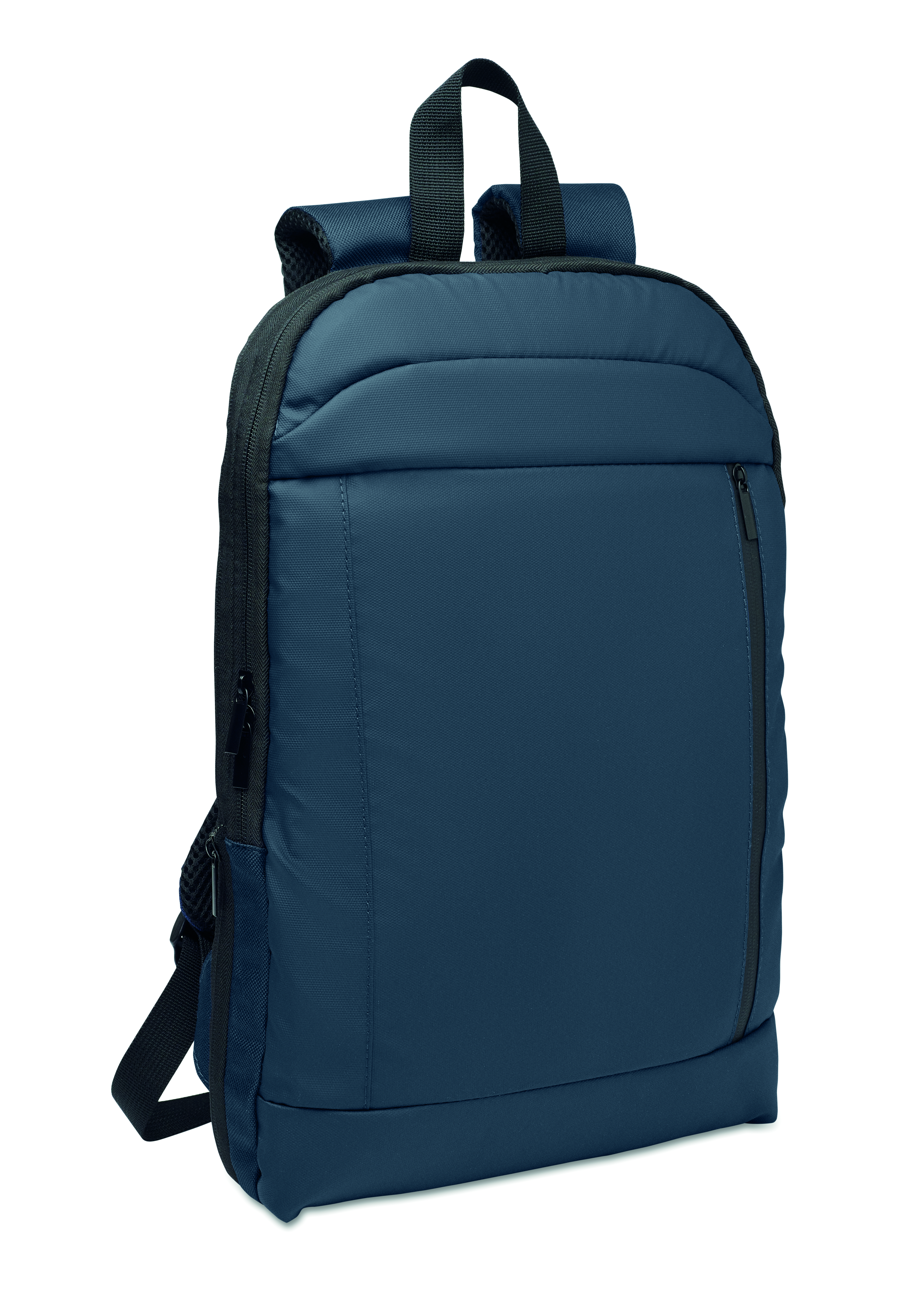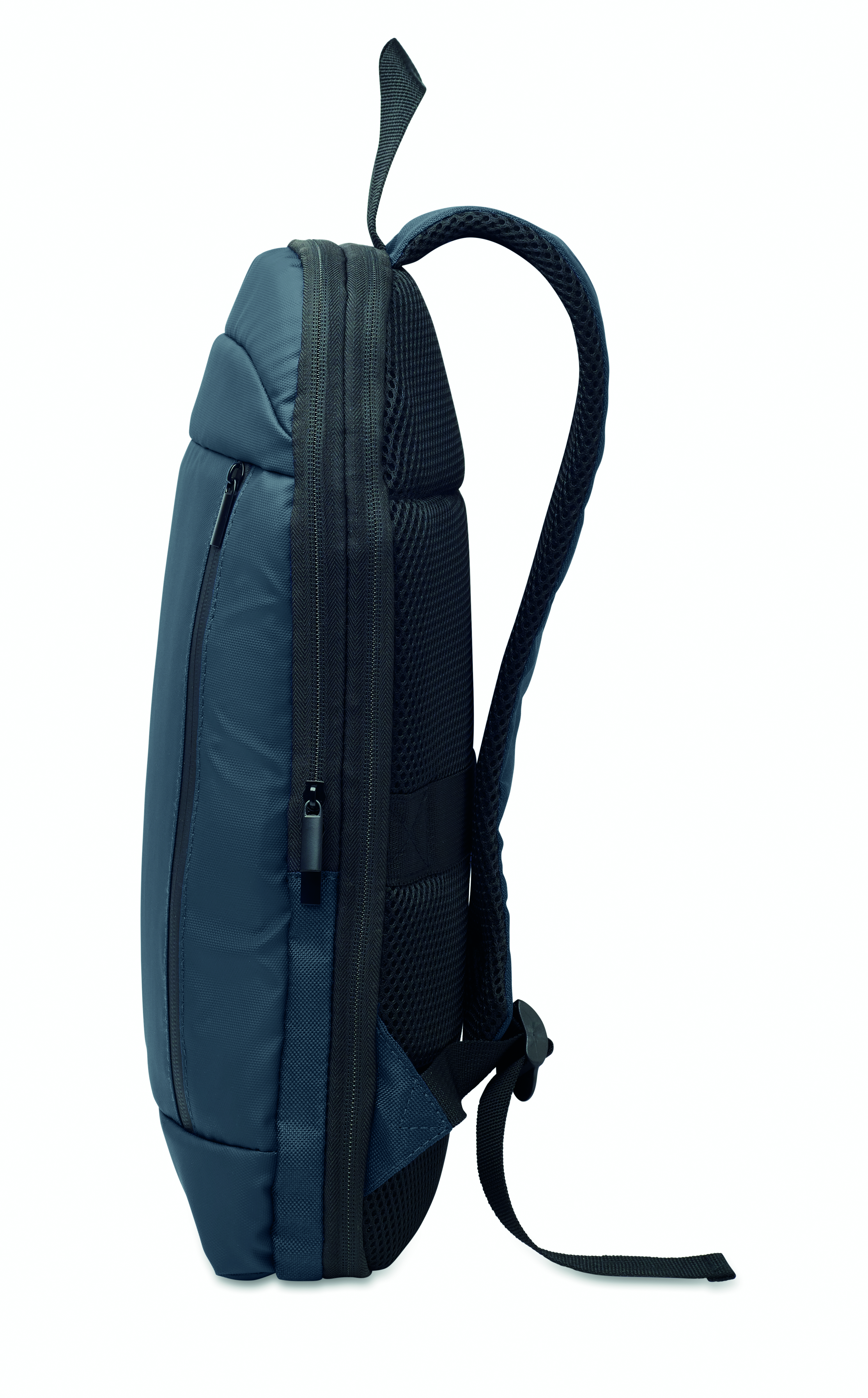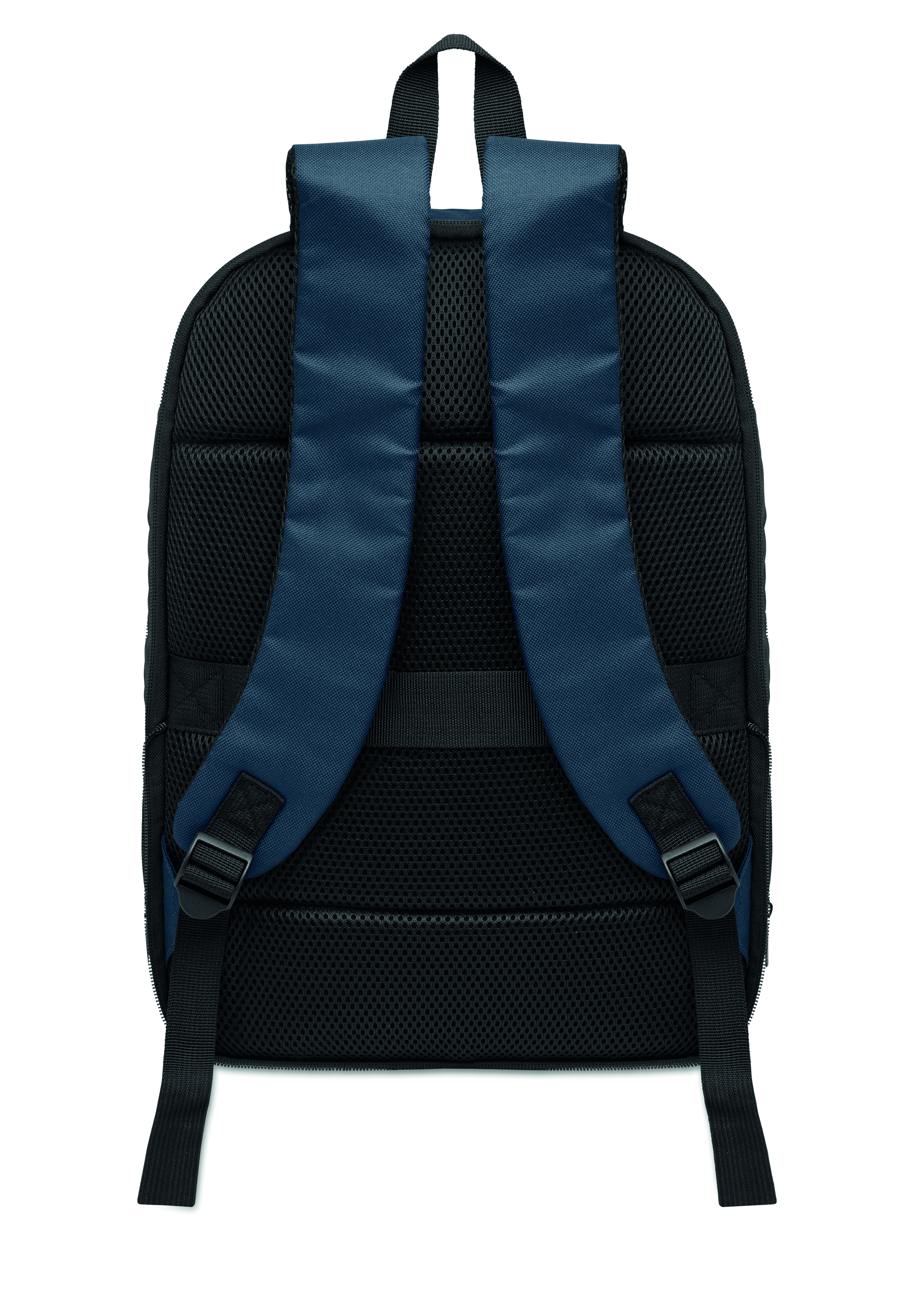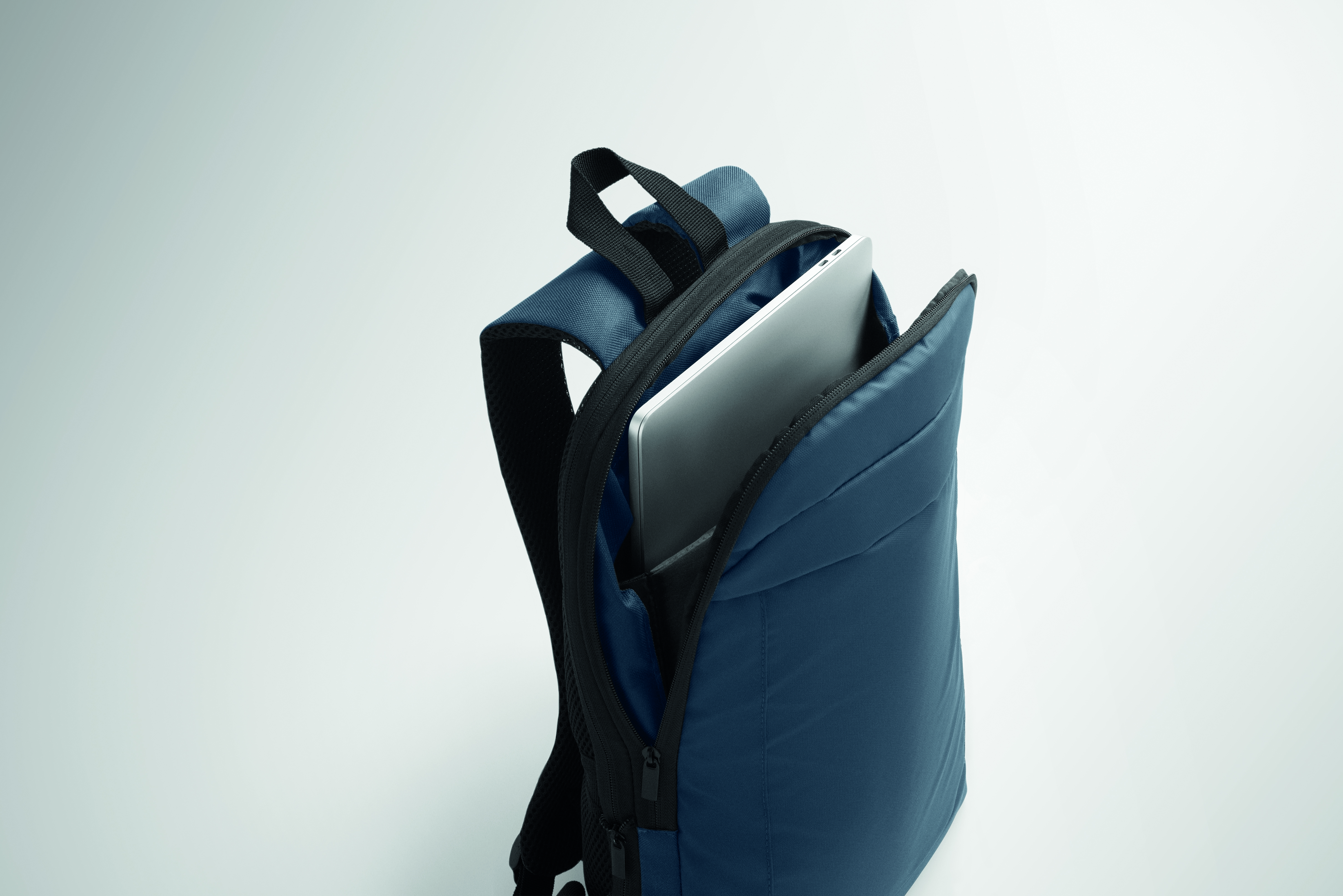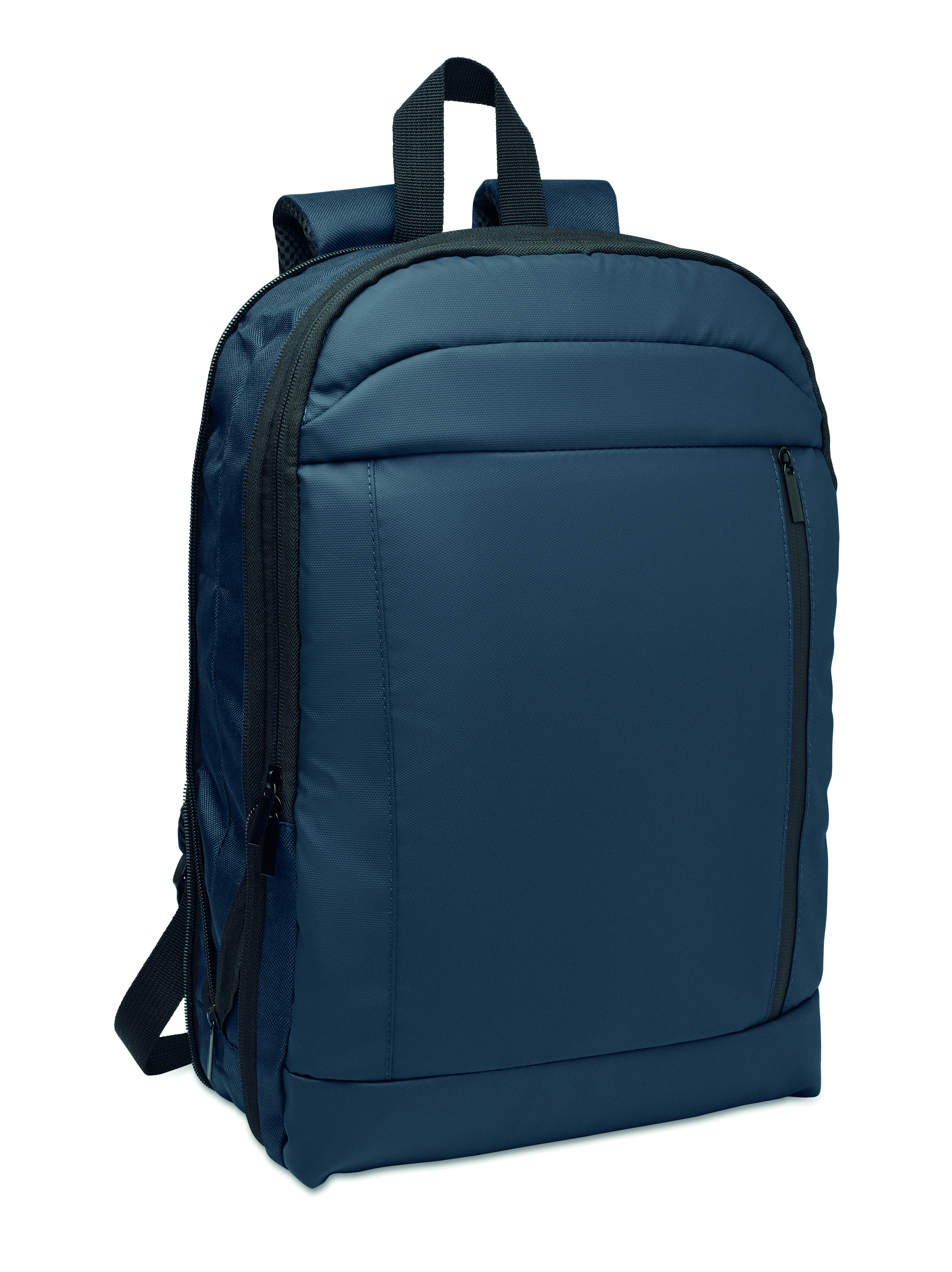 Rozszerzany plecak komputerowy 16'' z poliestru 600D RPET z powłoką PU z przodu i podszewką z poliestru RPET. Ukryta kieszeń zapinana na zamek i wyściełana przegroda na laptopa, przednia przegroda, siatkowy tył i pasek na walizkę.