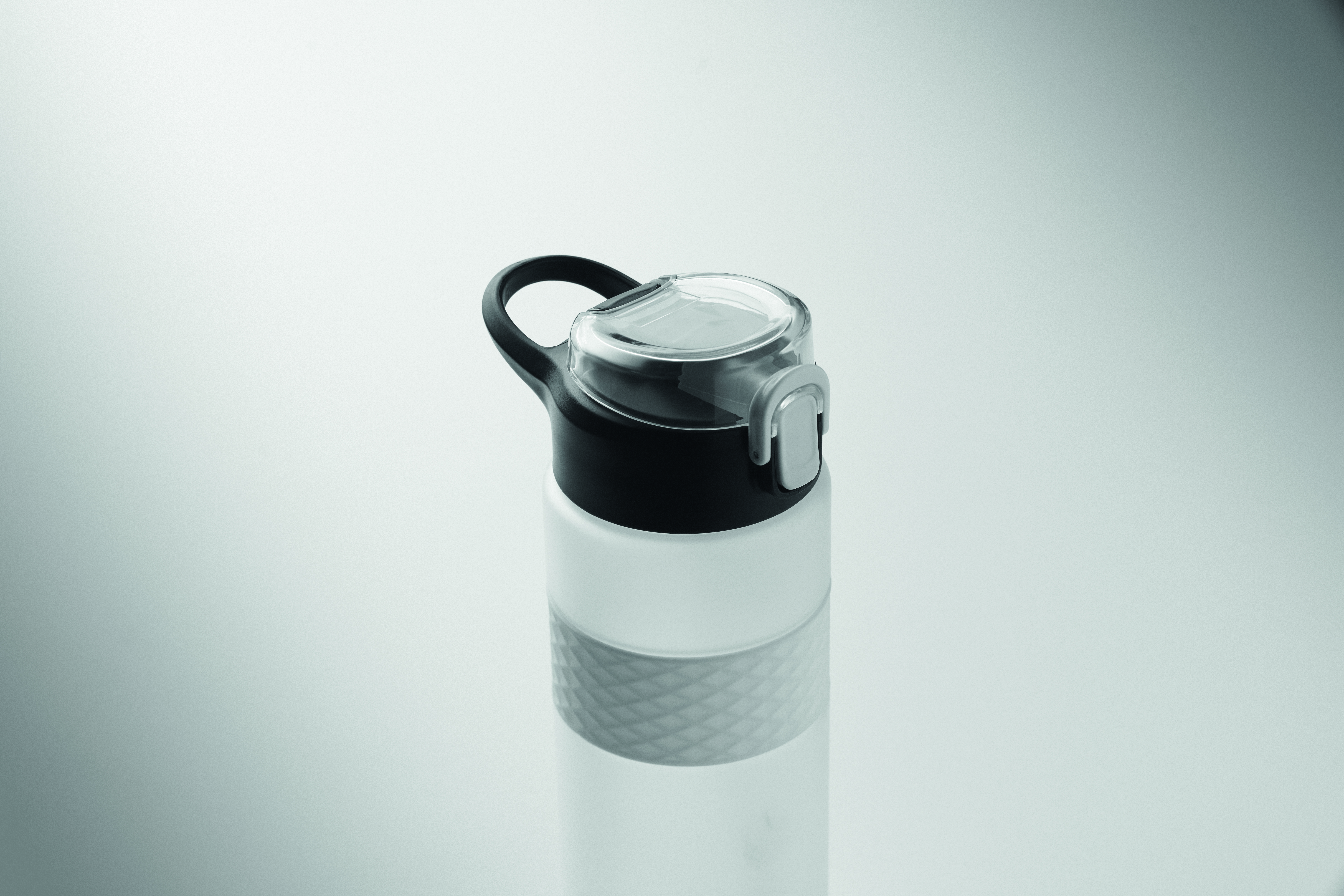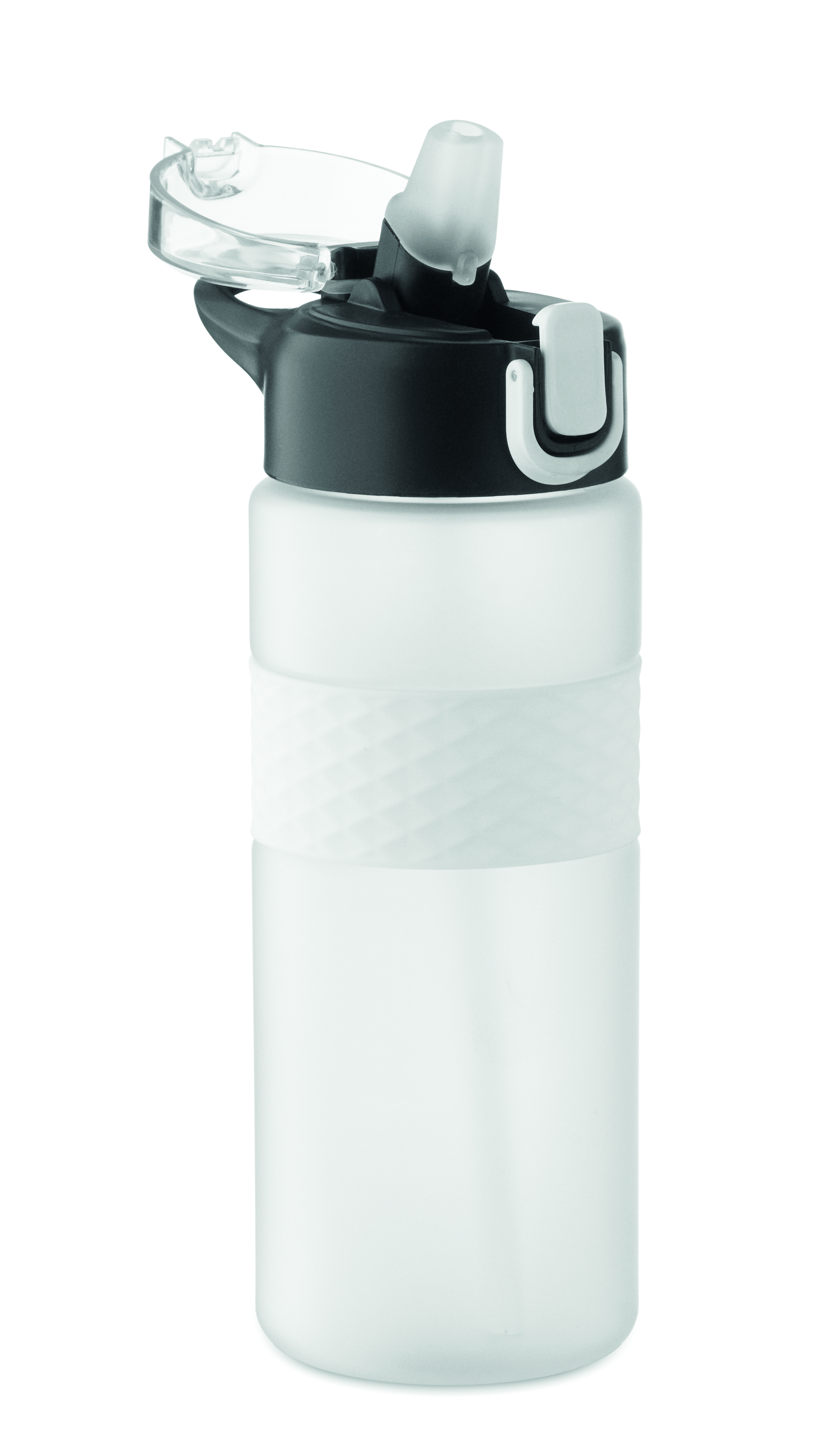 Butelka do picia wykonana z RPET z silikonowym uchwytem, pokrywką z PP i bezpiecznym zamknięciem. Zawiera zintegrowaną słomkę. Nie przecieka. Pojemność: 700 ml.