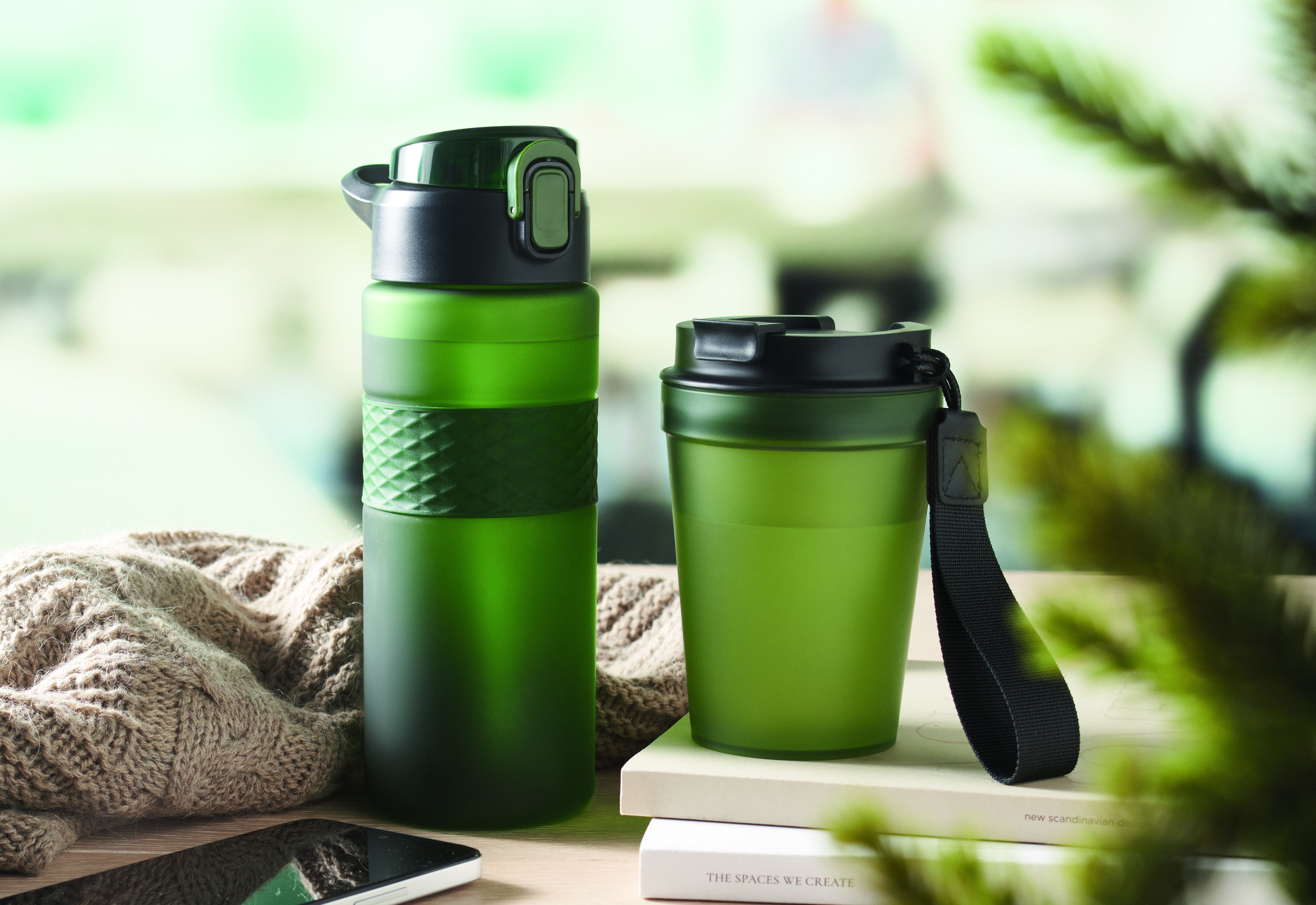 Butelka do picia wykonana z RPET z silikonowym uchwytem, pokrywką z PP i bezpiecznym zamknięciem. Zawiera zintegrowaną słomkę. Nie przecieka. Pojemność: 700 ml.