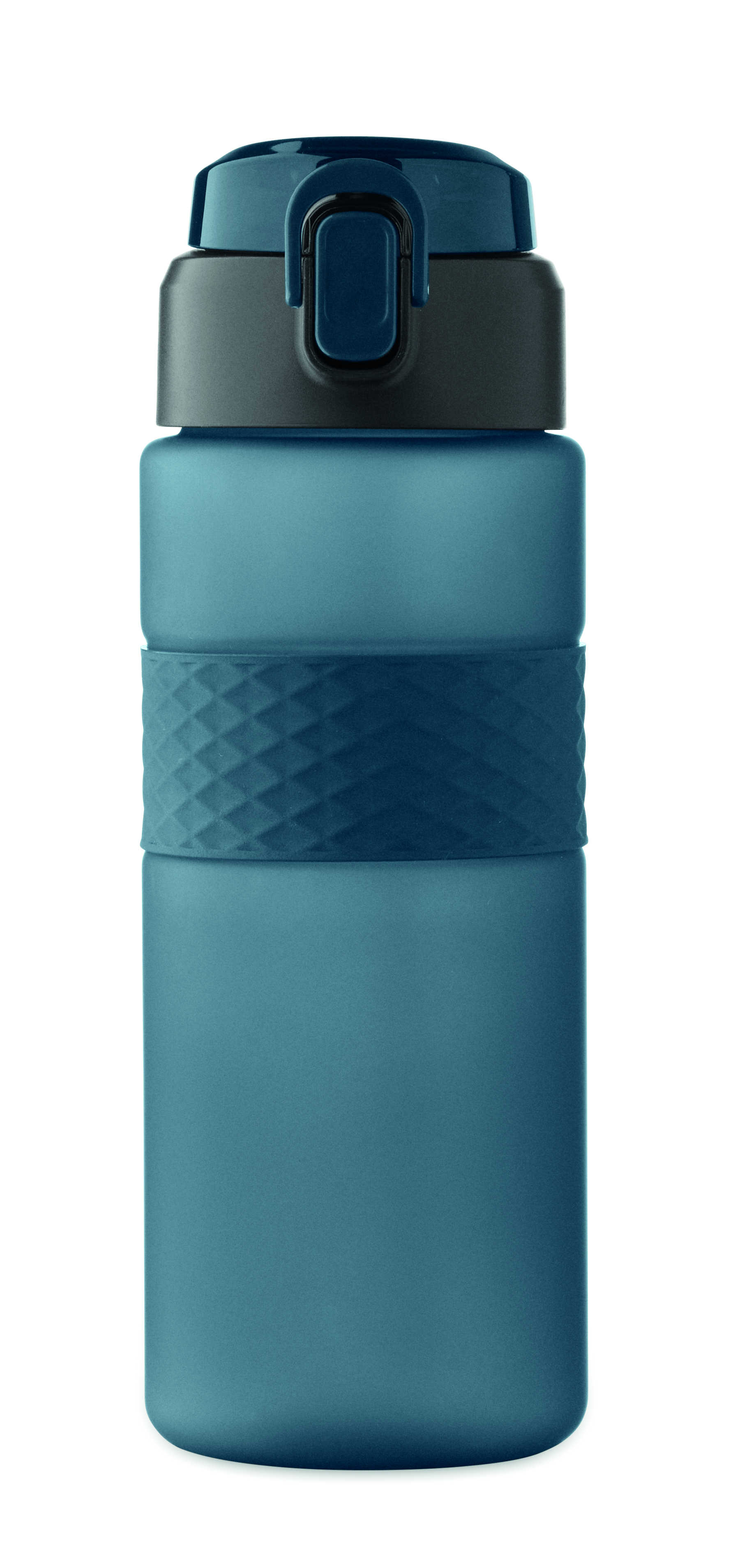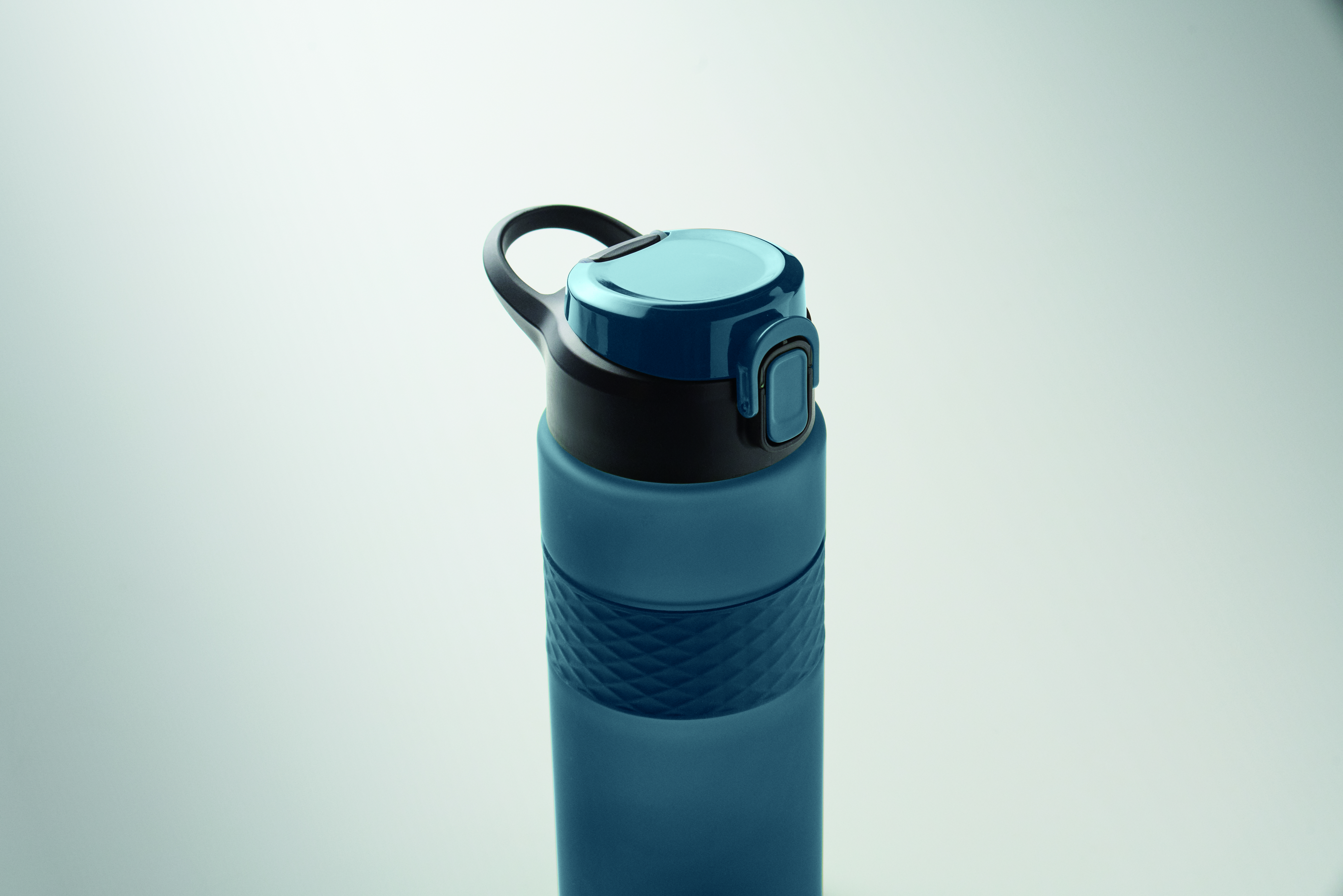Butelka do picia wykonana z RPET z silikonowym uchwytem, pokrywką z PP i bezpiecznym zamknięciem. Zawiera zintegrowaną słomkę. Nie przecieka. Pojemność: 700 ml.