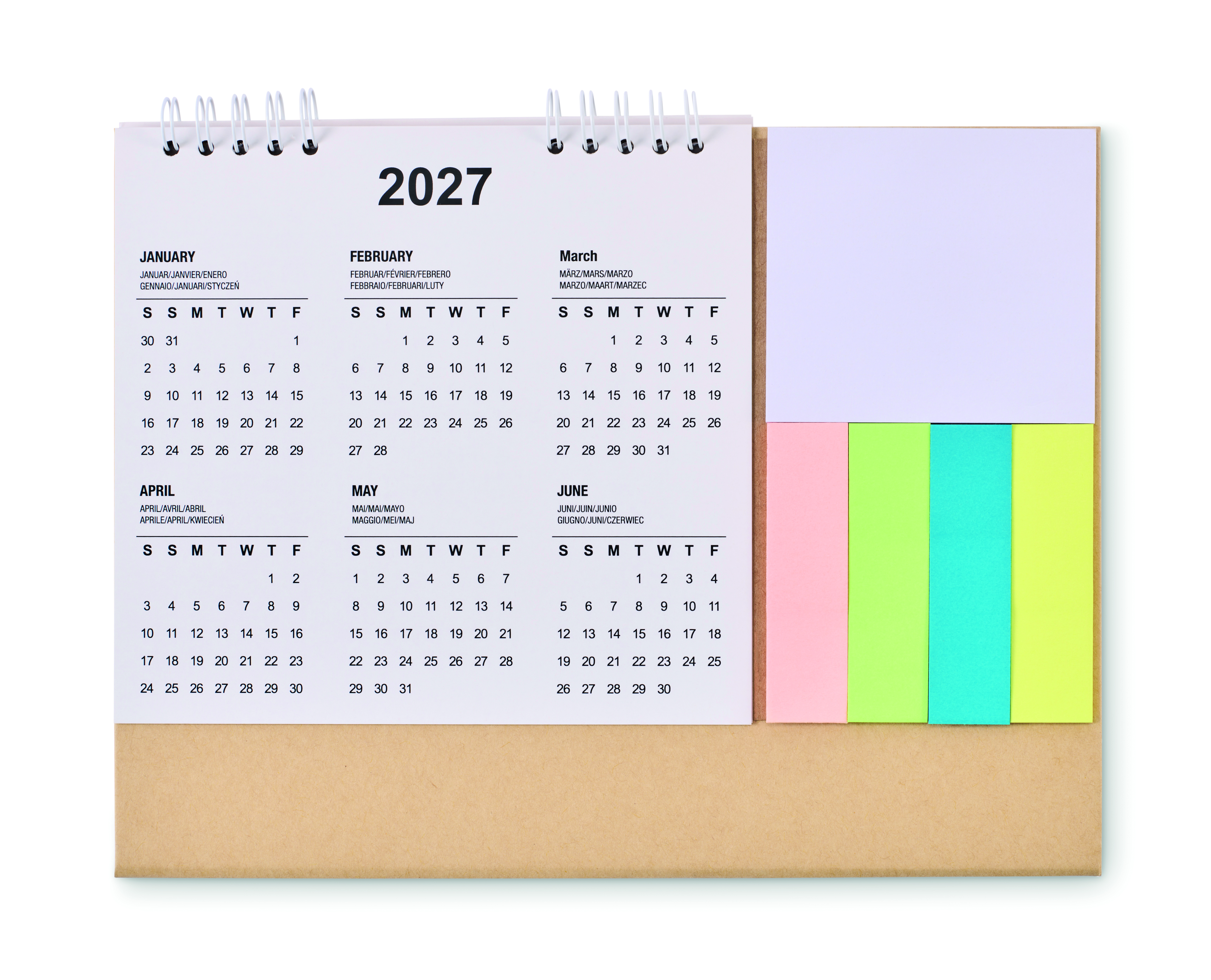 4-letni kalendarz biurkowy z 3 karteczkami samoprzylepnymi i notatnikiem w tekturowej oprawie. FSC®-certified | FSC MIX, P8.6, FSC-C213206