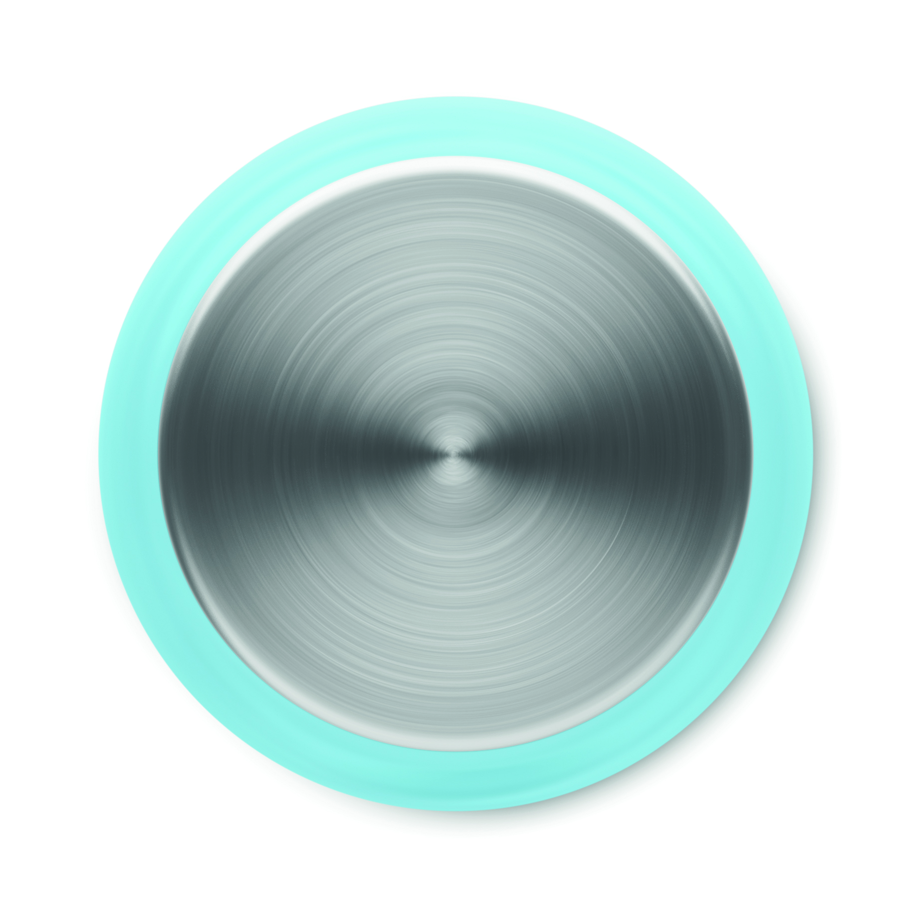 Butelka z RPET z gumowanym wykończeniem, zakrętka ze stali nierdzewnej z silikonowym pierścieniem. Bez BPA. Szczelna. Pojemność: 600 ml. Nie nadaje się do napojów gazowanych.