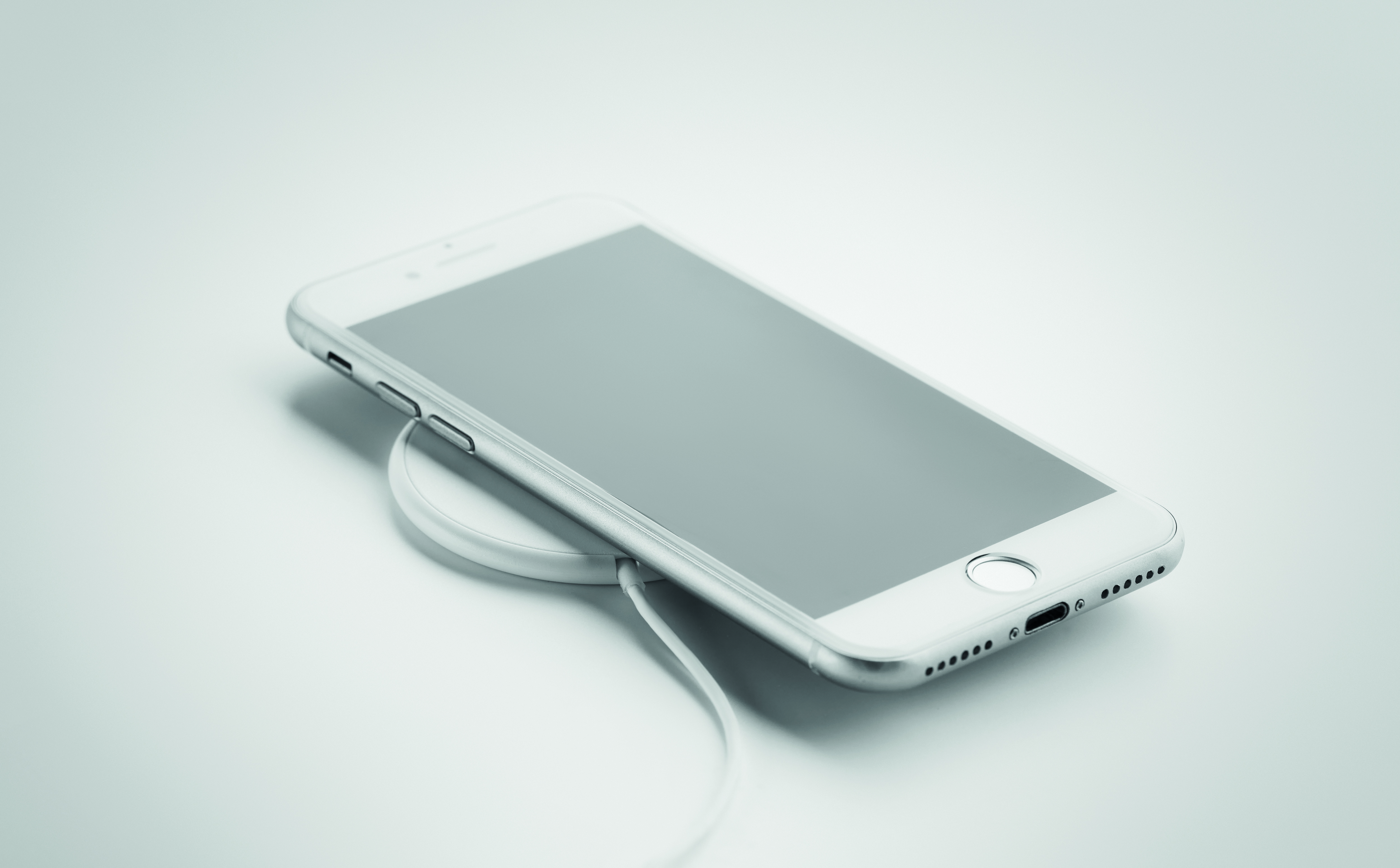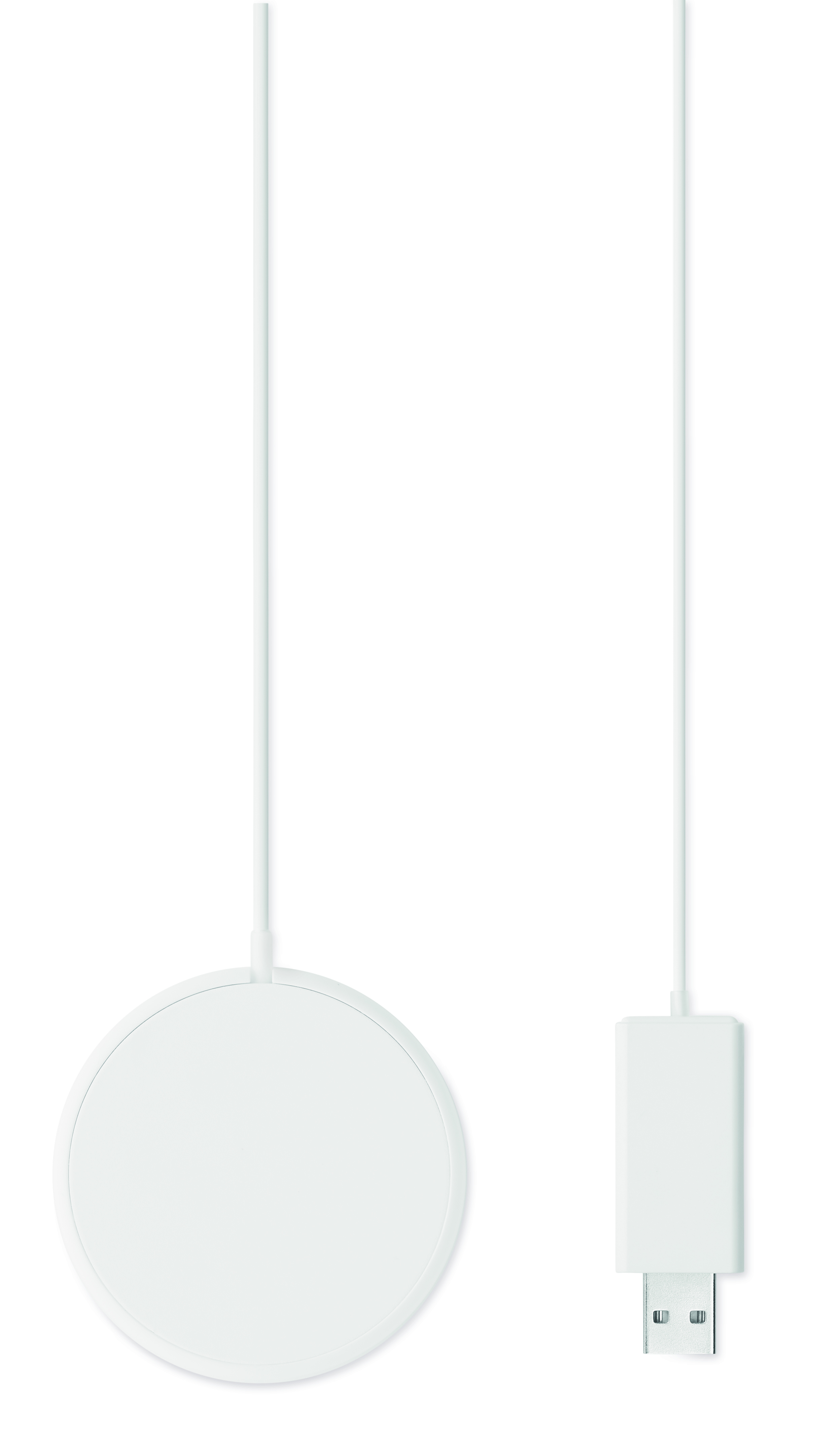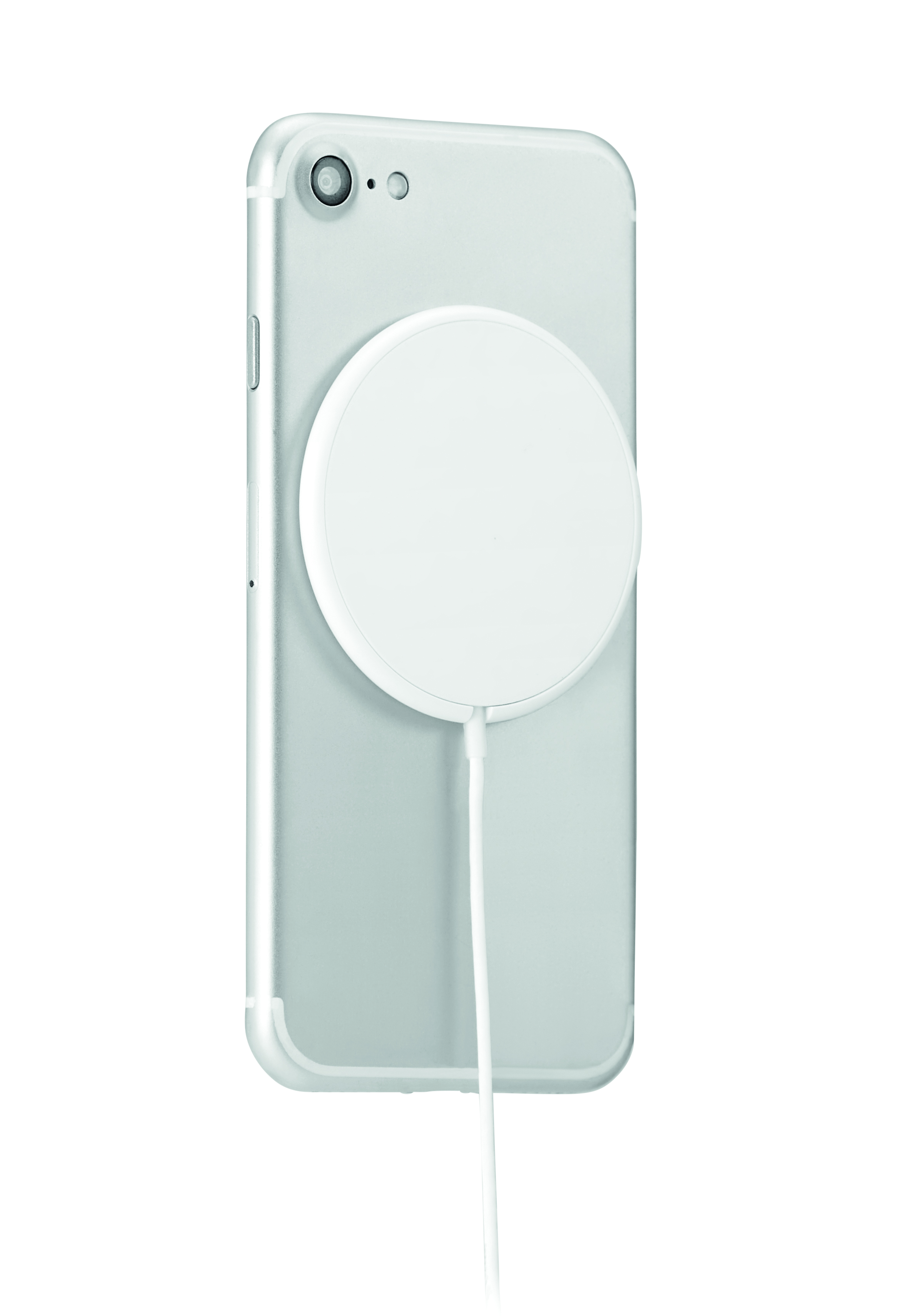 Magnetyczna ładowarka bezprzewodowa z ABS. Wyjście: DC 9V/1.1A (10W) do szybkiego ładowania. W tym dodatkowo magnetyczny metalowy pierścień do ładowania innych niemagnetycznych telefonów z możliwością bezprzewodowego ładowania.
