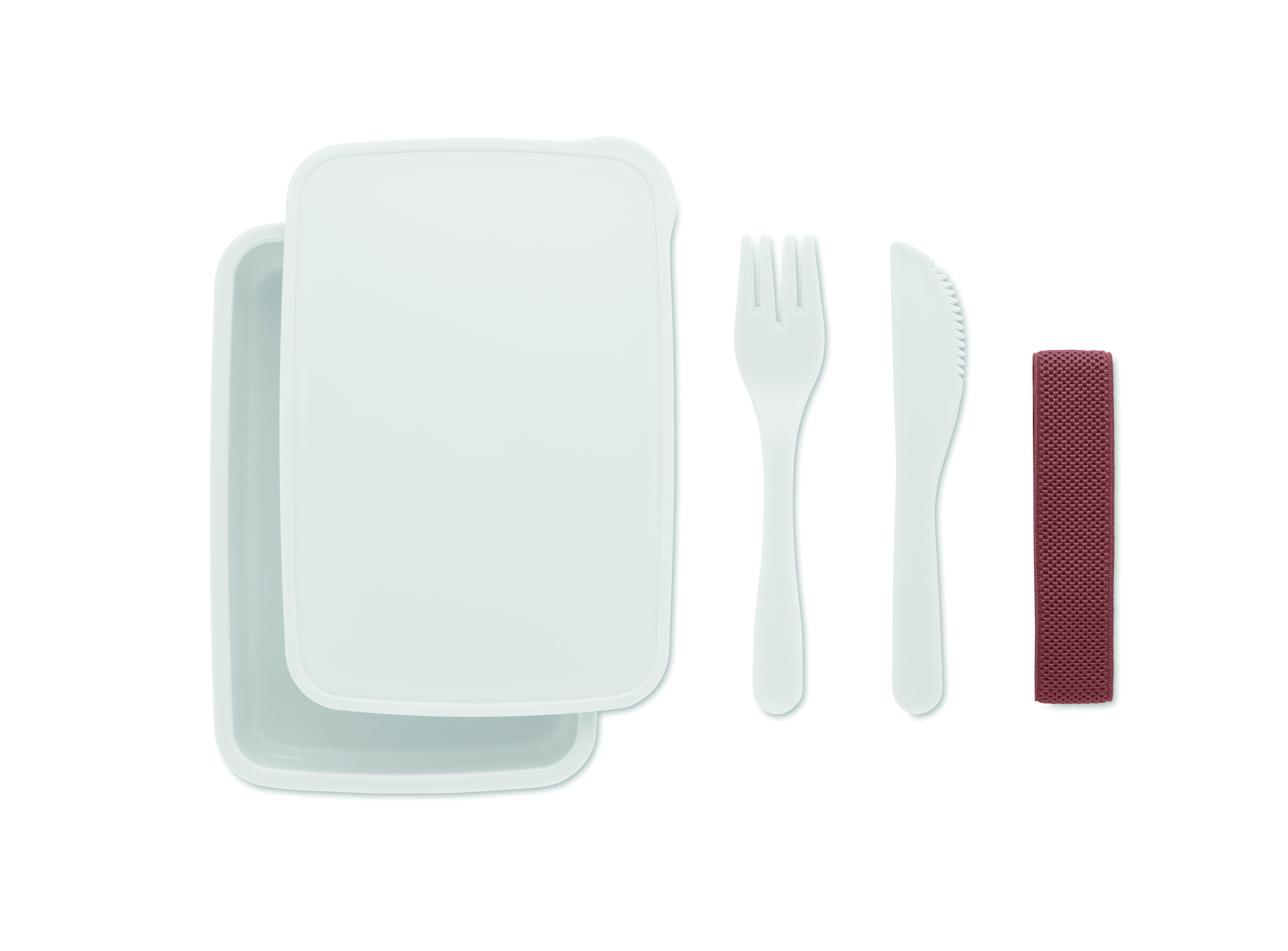 Lunchbox z 1 komorą, zawiera sztućce. Wykonany z PP.