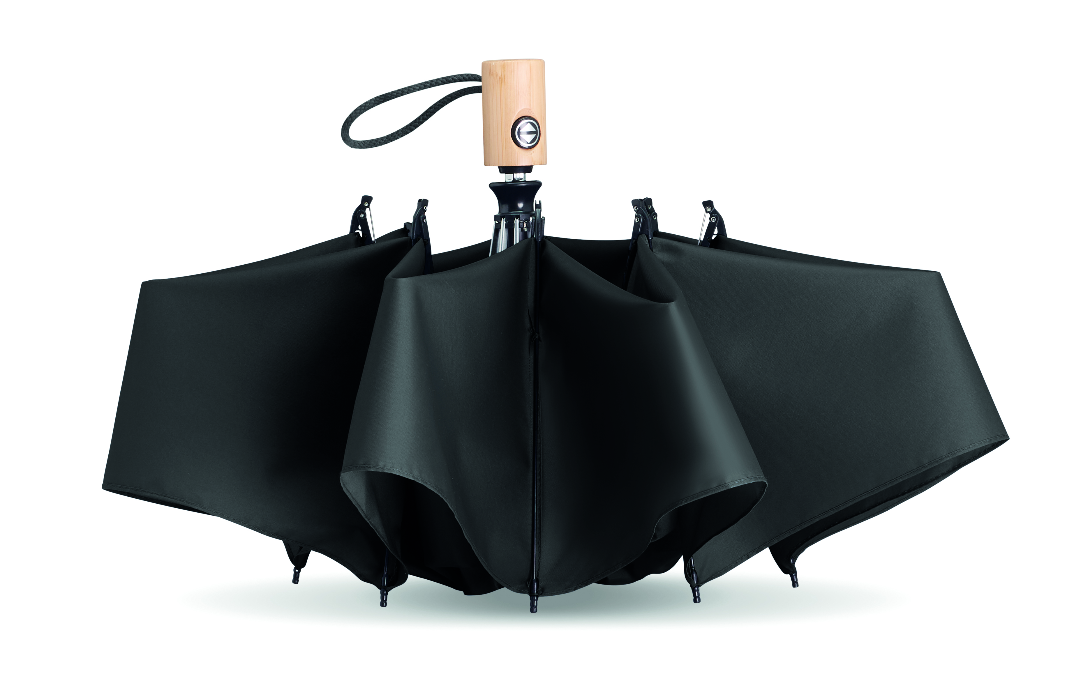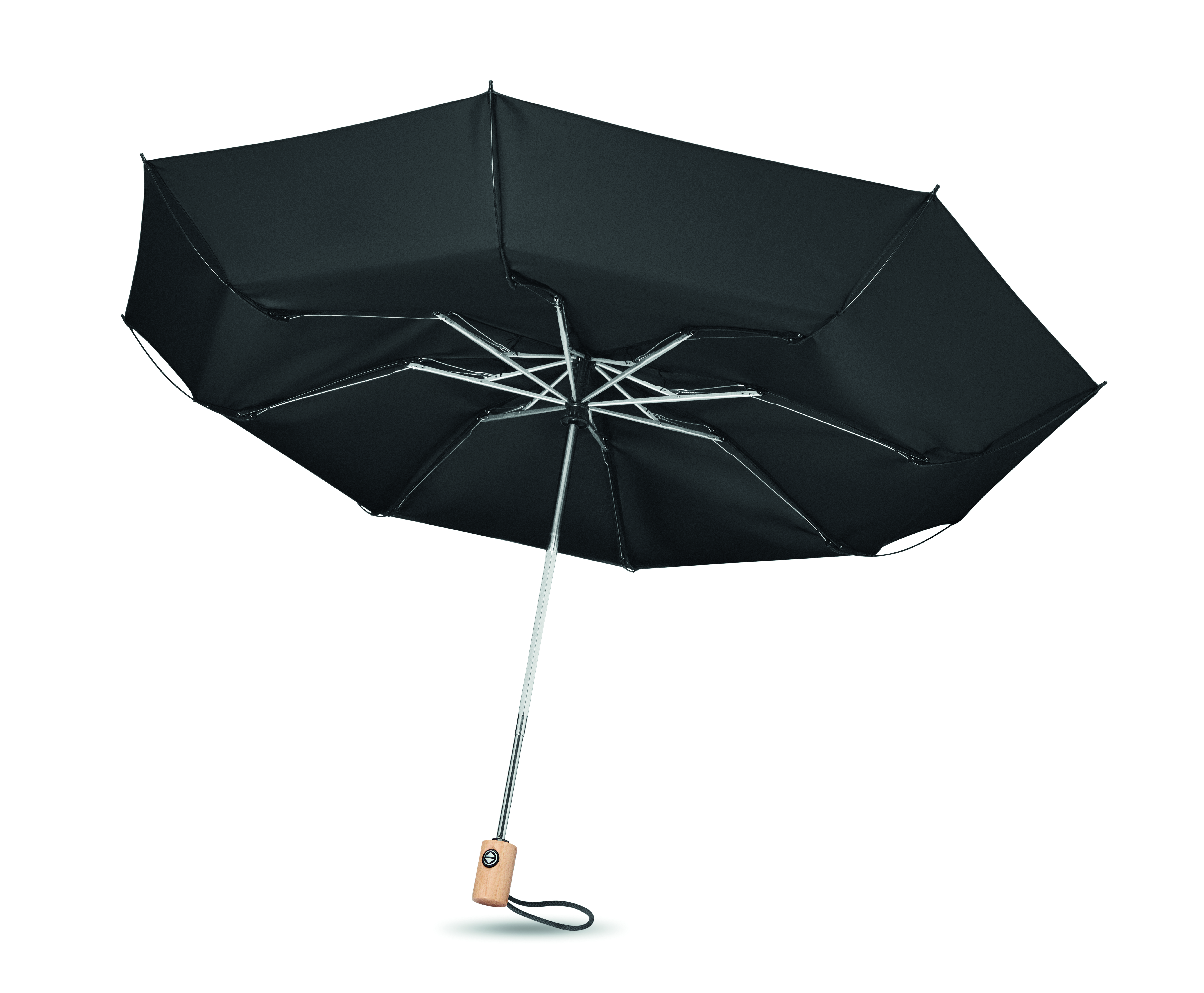 23-calowy, 3-krotnie składany, automatycznie otwierany i zamykany parasol z 190T pongee RPET. Żebra z włókna szklanego. Bambusowa rączka z bawełnianym paskiem na nadgarstek. W komplecie pasujący pokrowiec RPET. Bambus jest produktem naturalnym, dlatego mogą wystąpić nieznaczne różnice w kolorze, wzorze i rozmiarze.