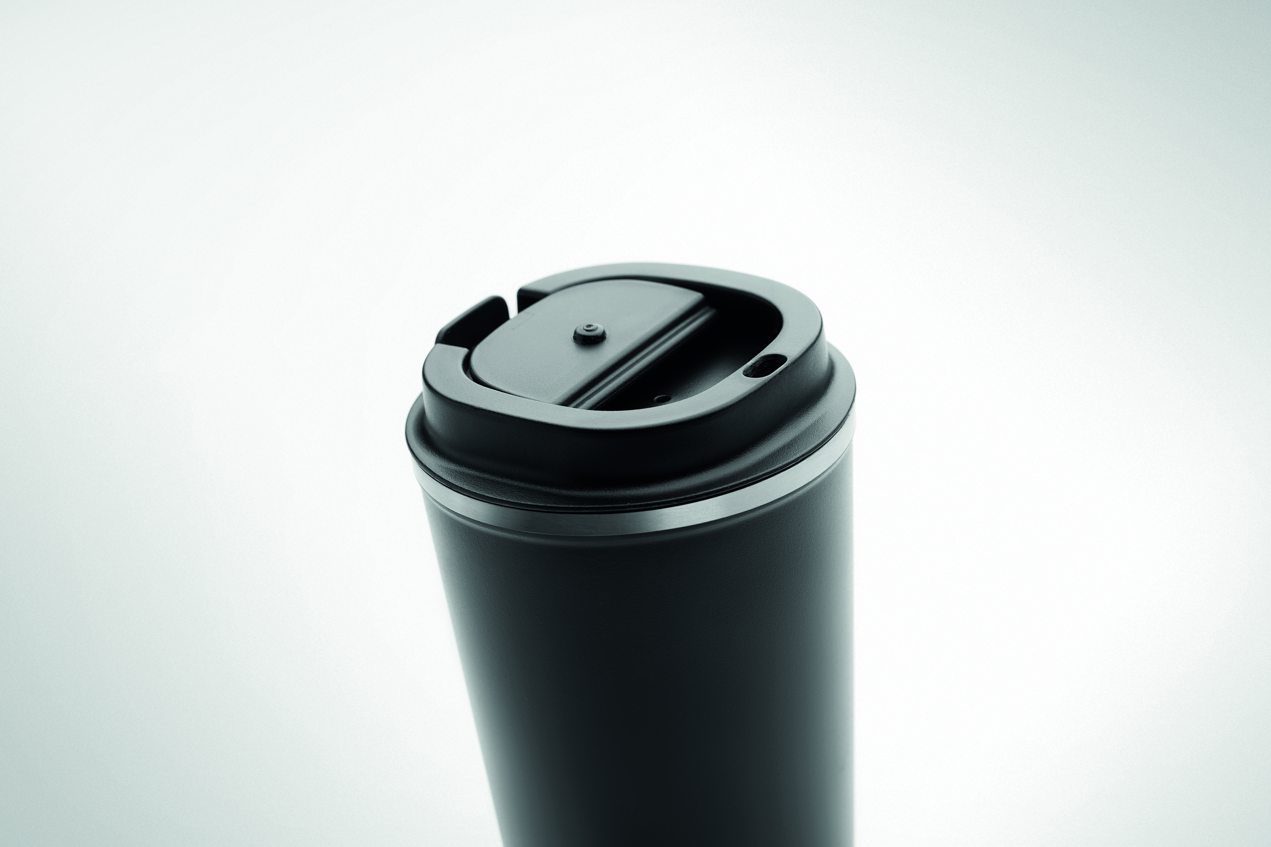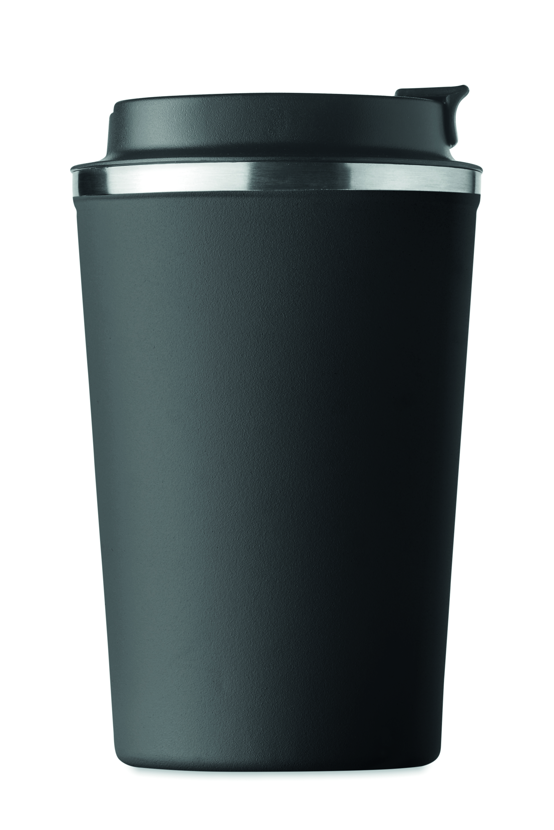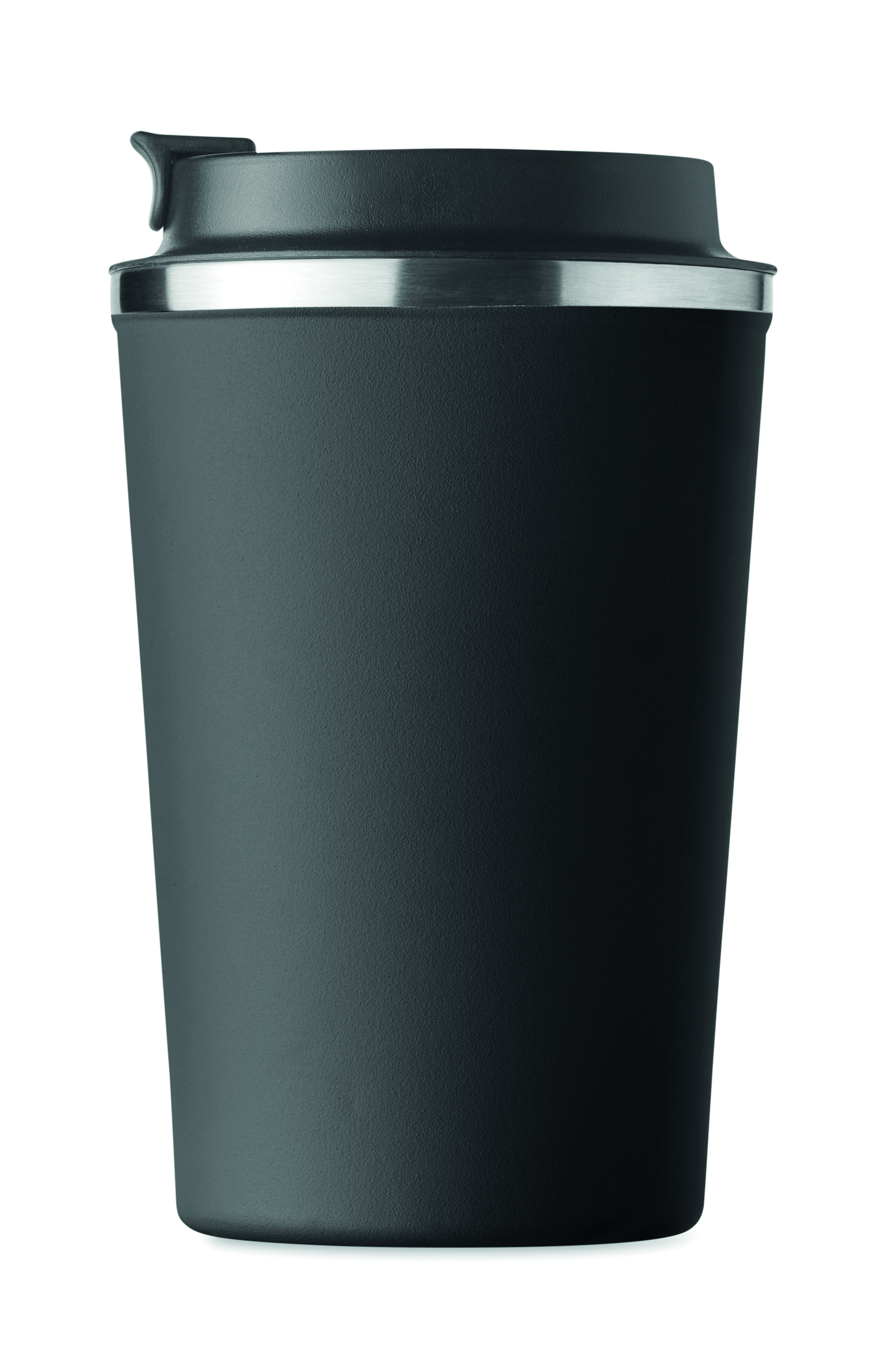Dwuścienny kubek ze stali nierdzewnej z pokrywką z PP. Pojemność: 350 ml. Szczelny.