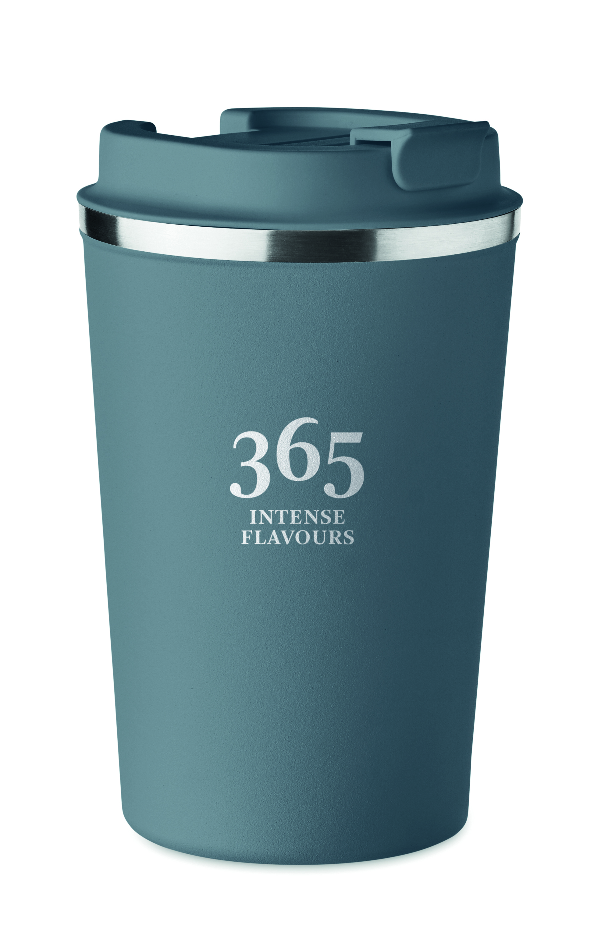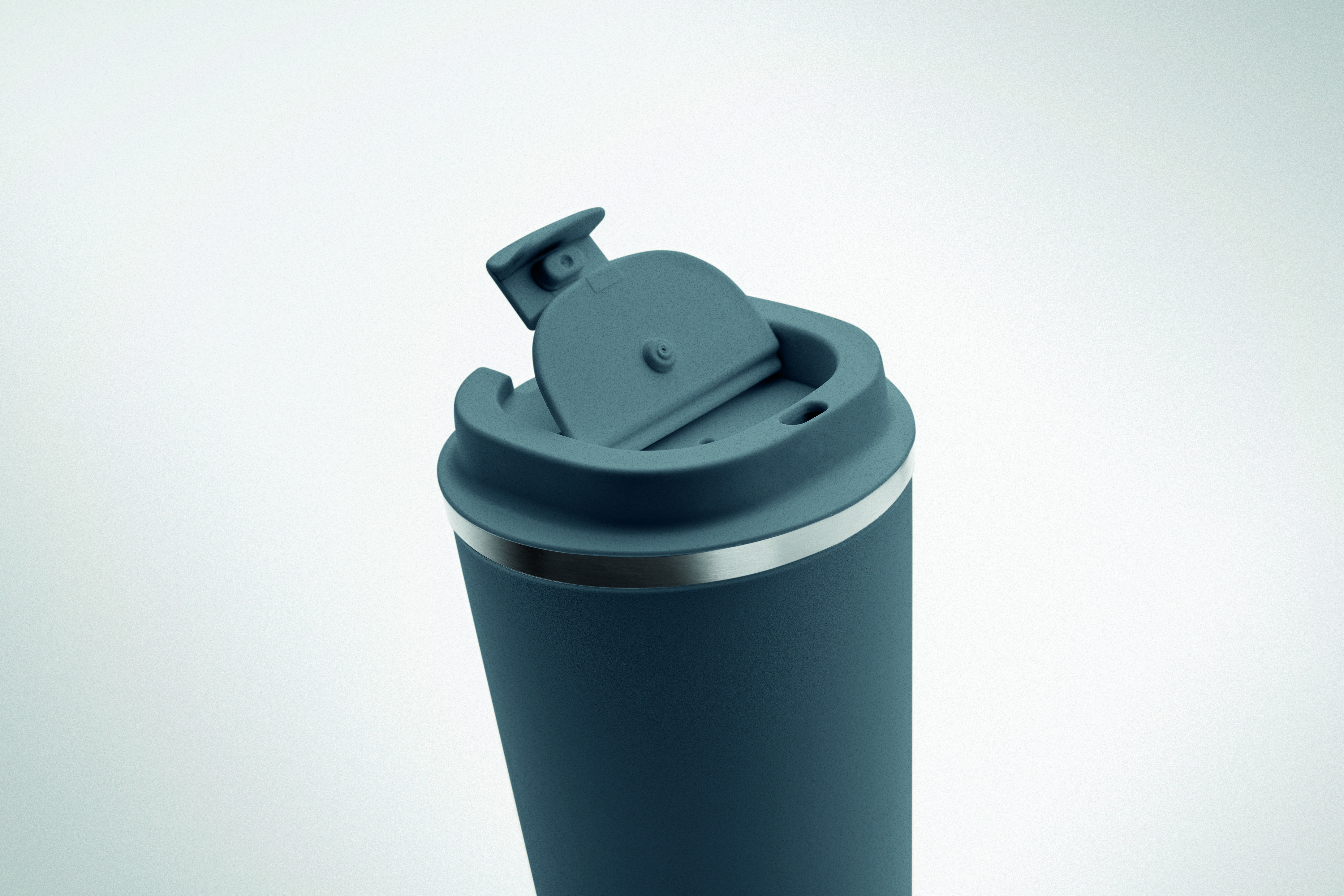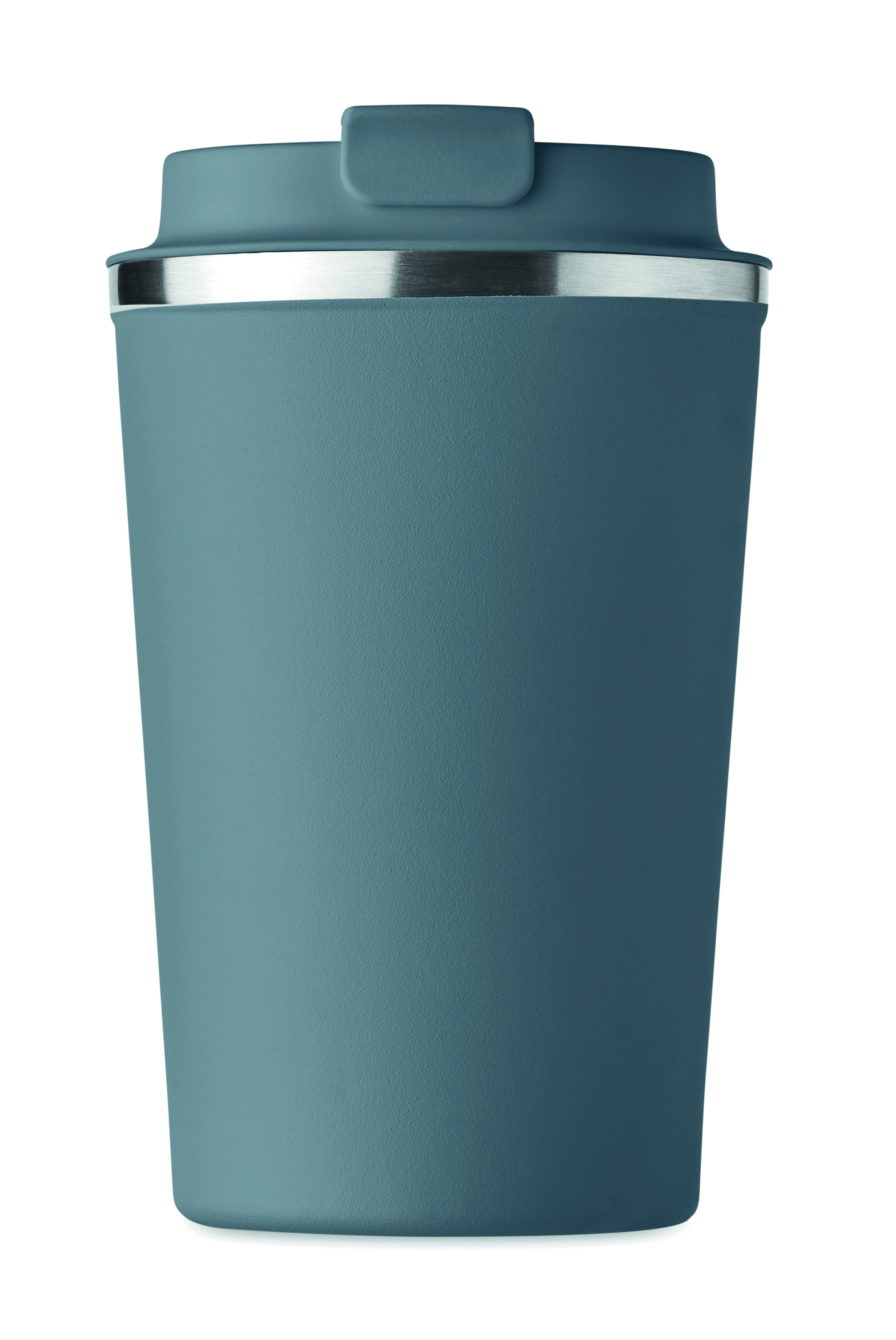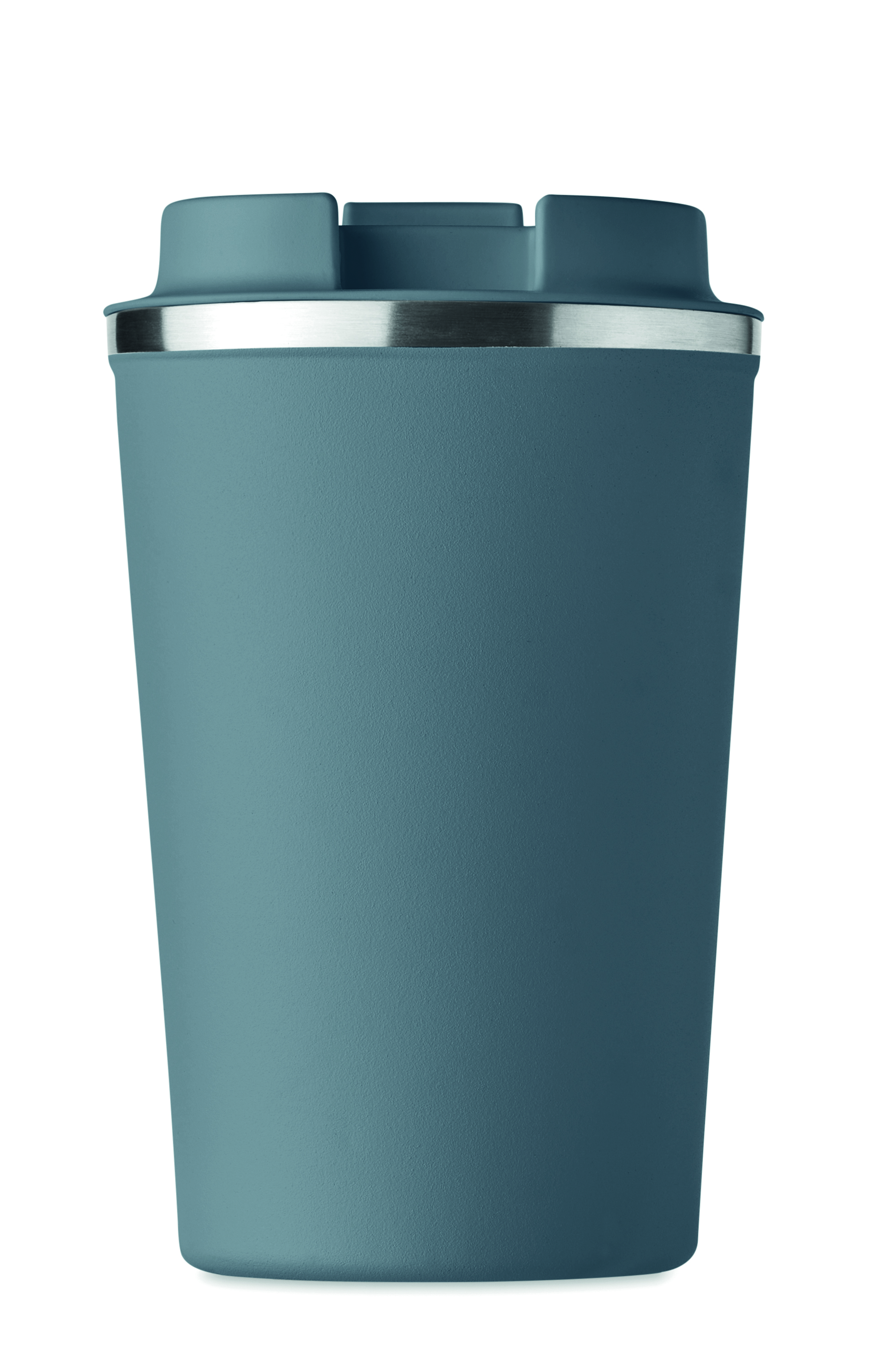 Dwuścienny kubek ze stali nierdzewnej z pokrywką z PP. Pojemność: 350 ml. Szczelny.