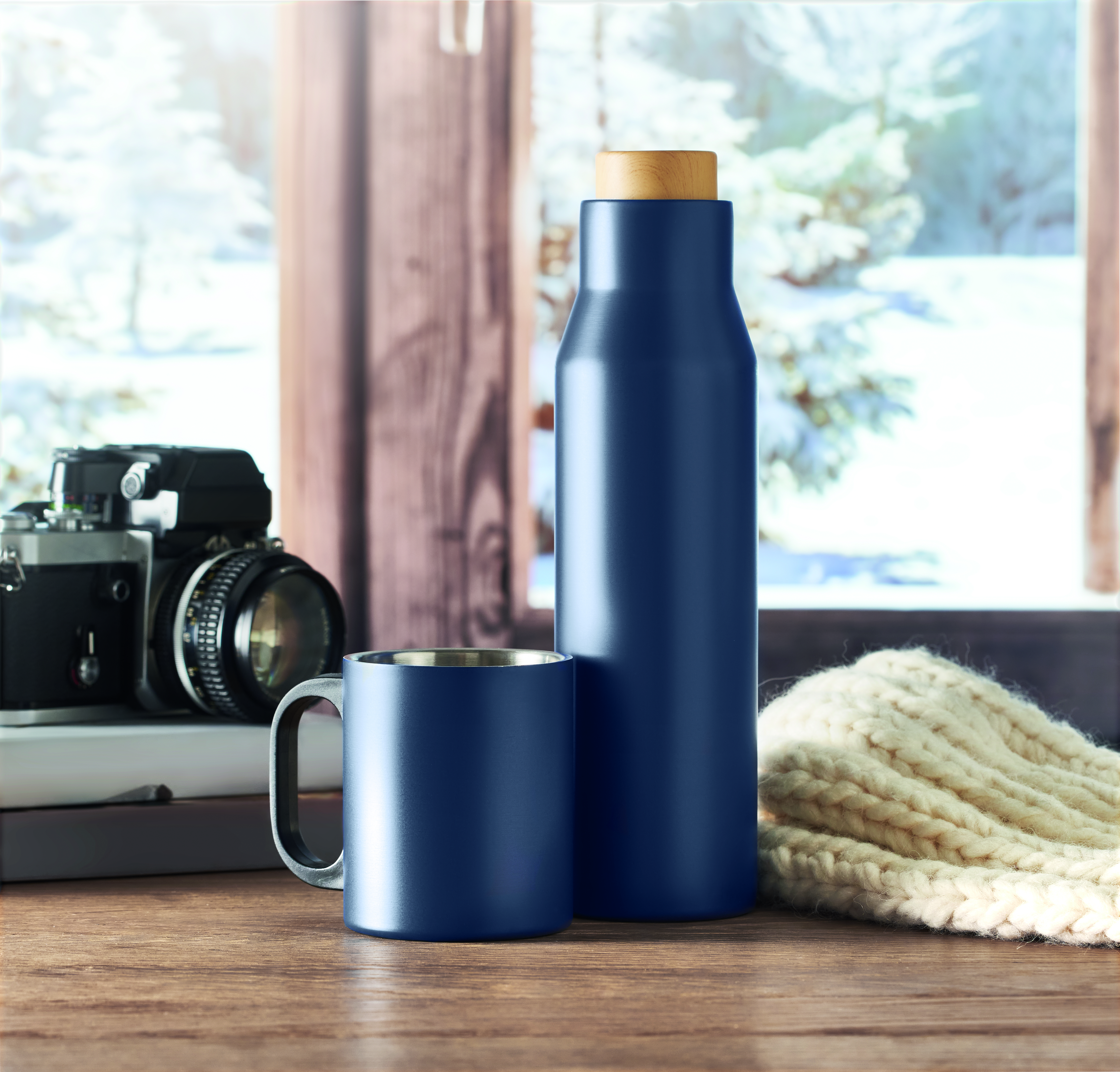 Termos próżniowy o podwójnych ściankach z izolacją ze stali nierdzewnej. Pojemność: 500 ml. Szczelny.