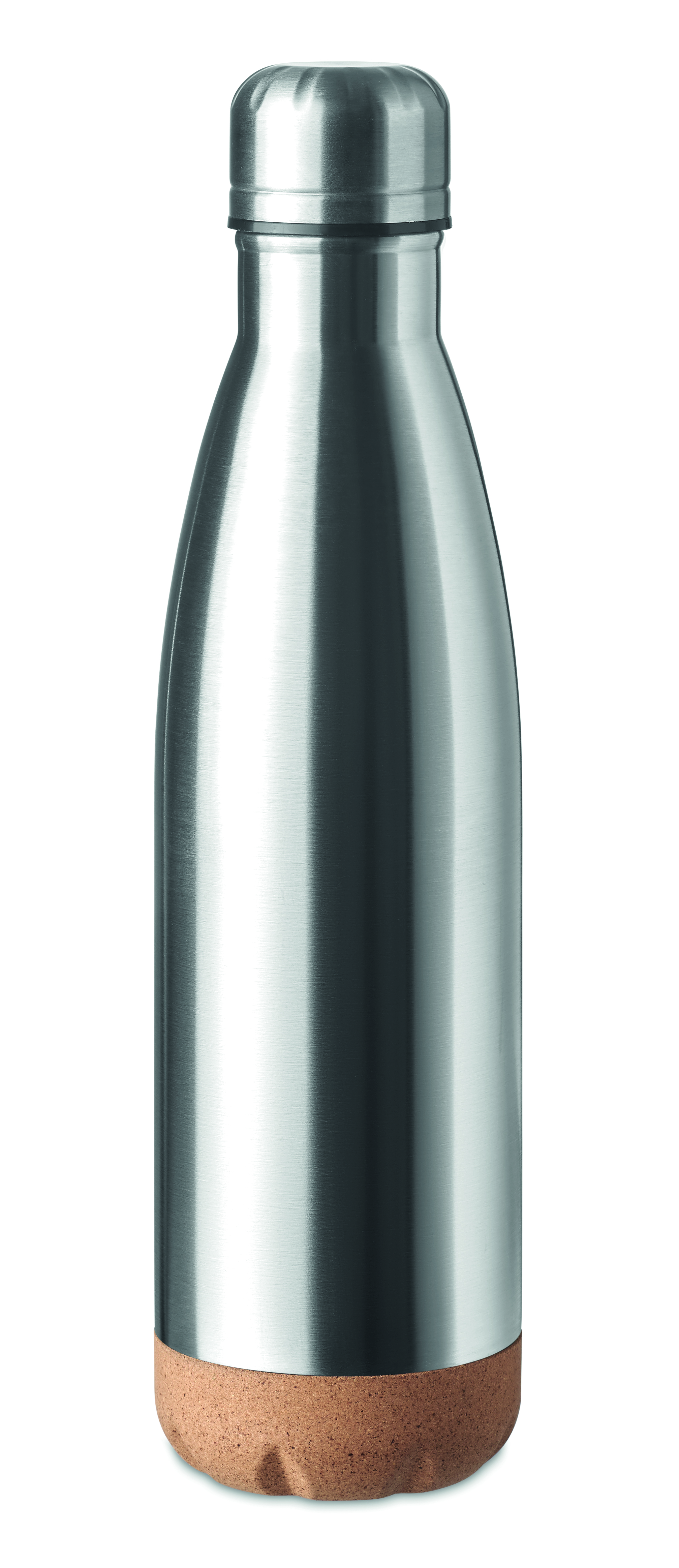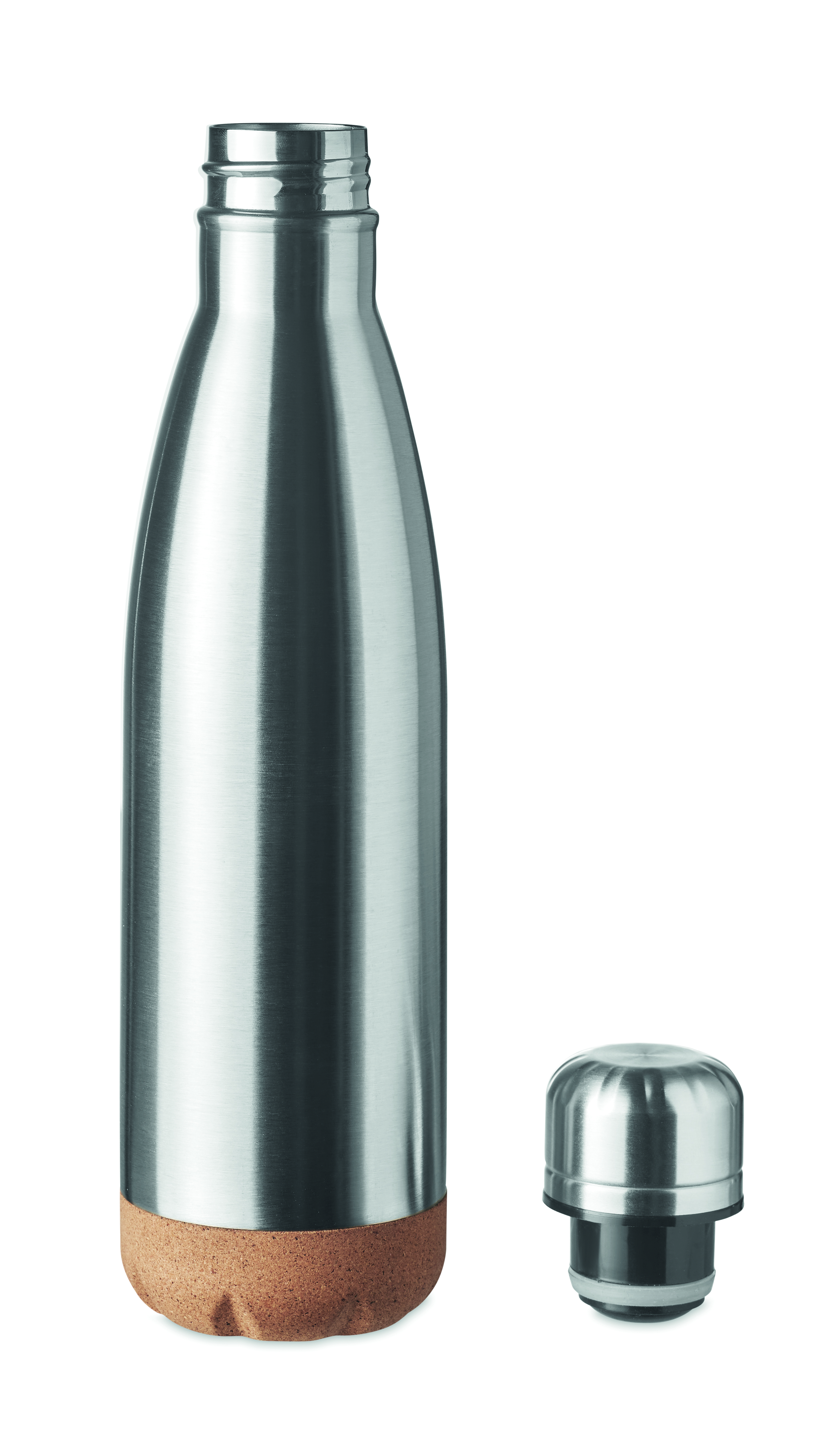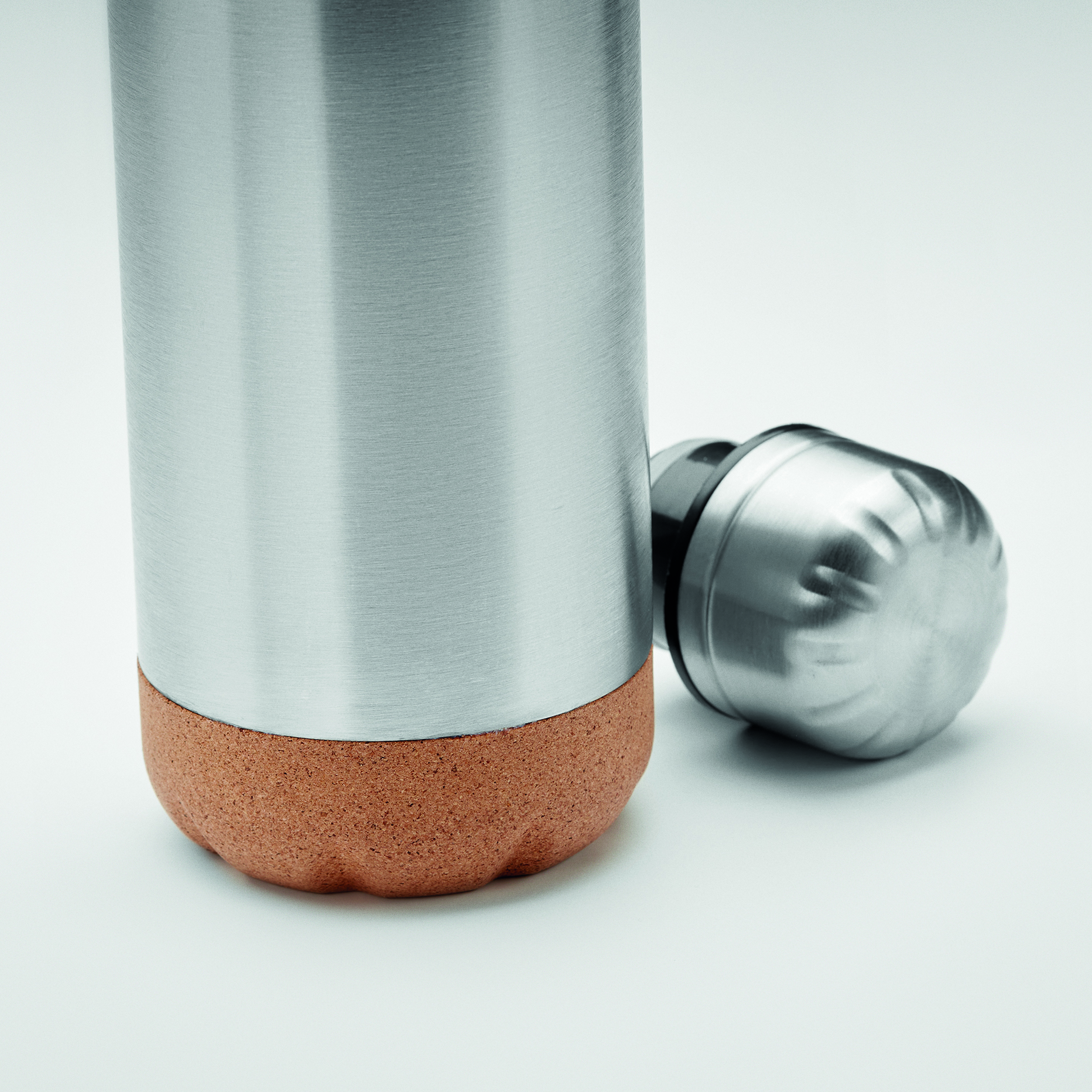 Butelka próżniowa z podwójną ścianką ze stali nierdzewnej z korkową podstawą. Pojemność: 500 ml. Szczelna. Korek jest materiałem w 100% naturalnym. Ze względu na jego strukturę i porowatość powierzchni ostateczny wygląd nadruku na każdym artykule może się różnić.